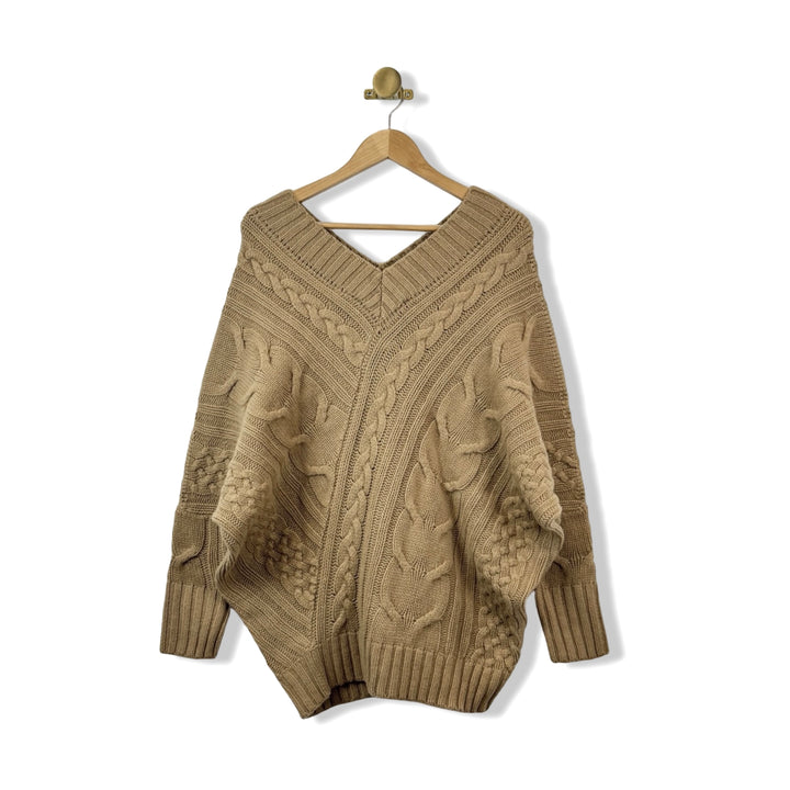 Nouveux Cable Knit Striped V Neck Sweater - $15.00