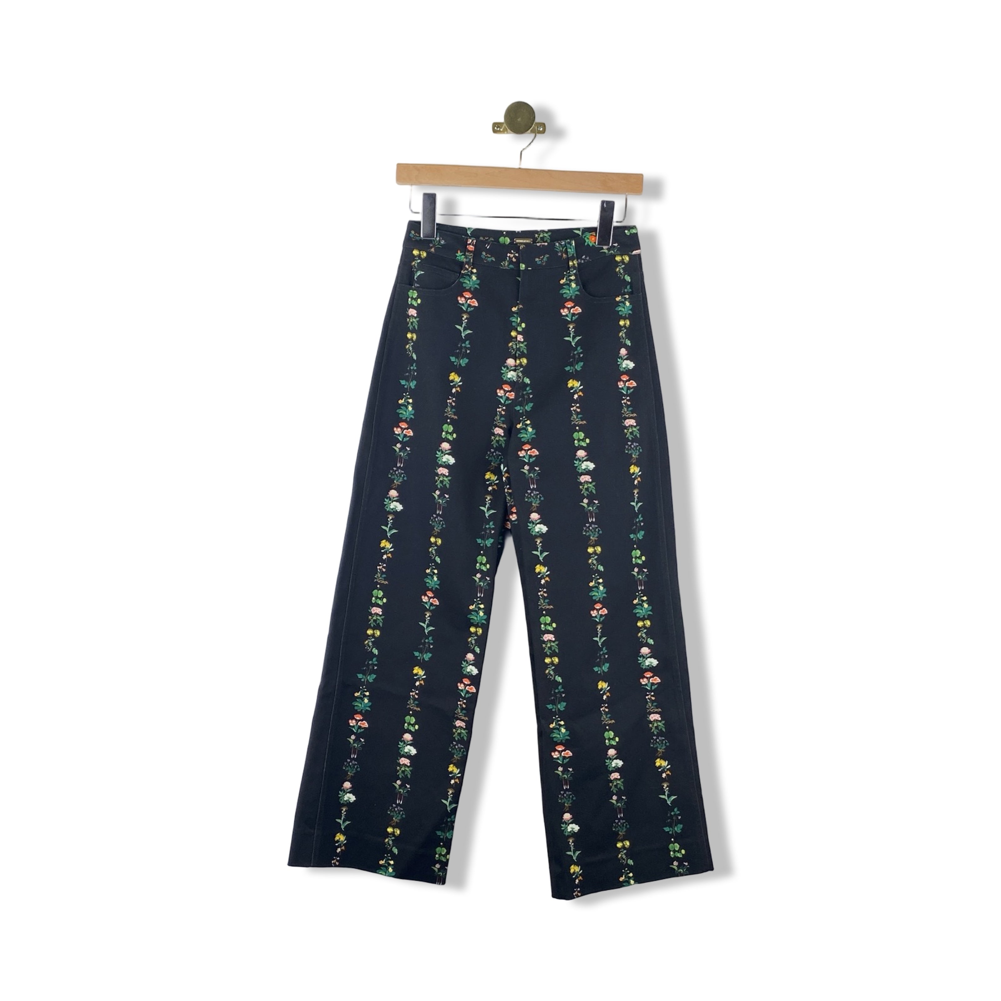 - Floral print pants with front/back pockets, zip fly with a button closure. Missing size label, looks like a size x-small. Please check measurements for reference.