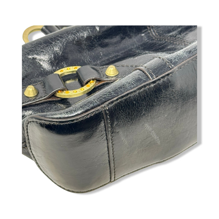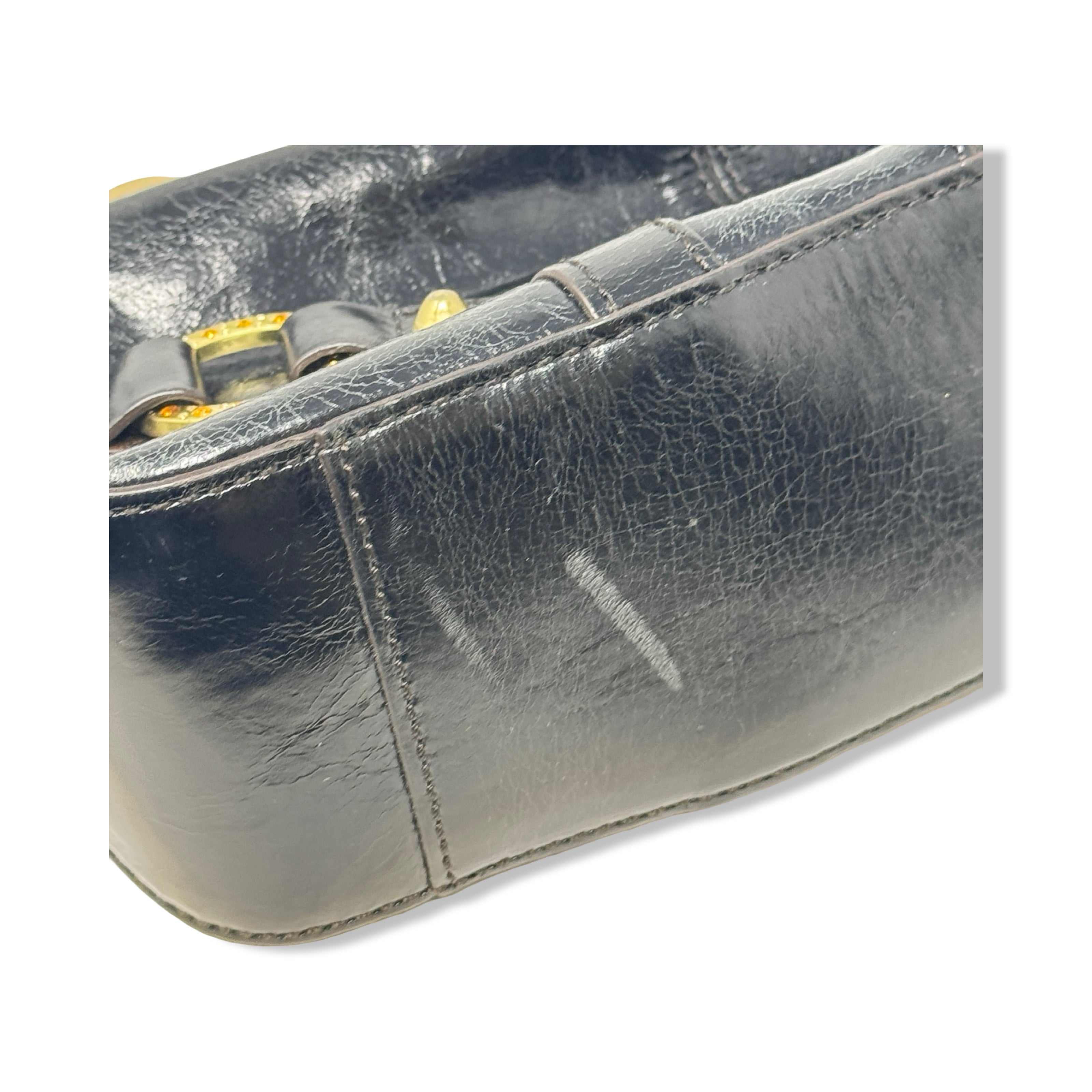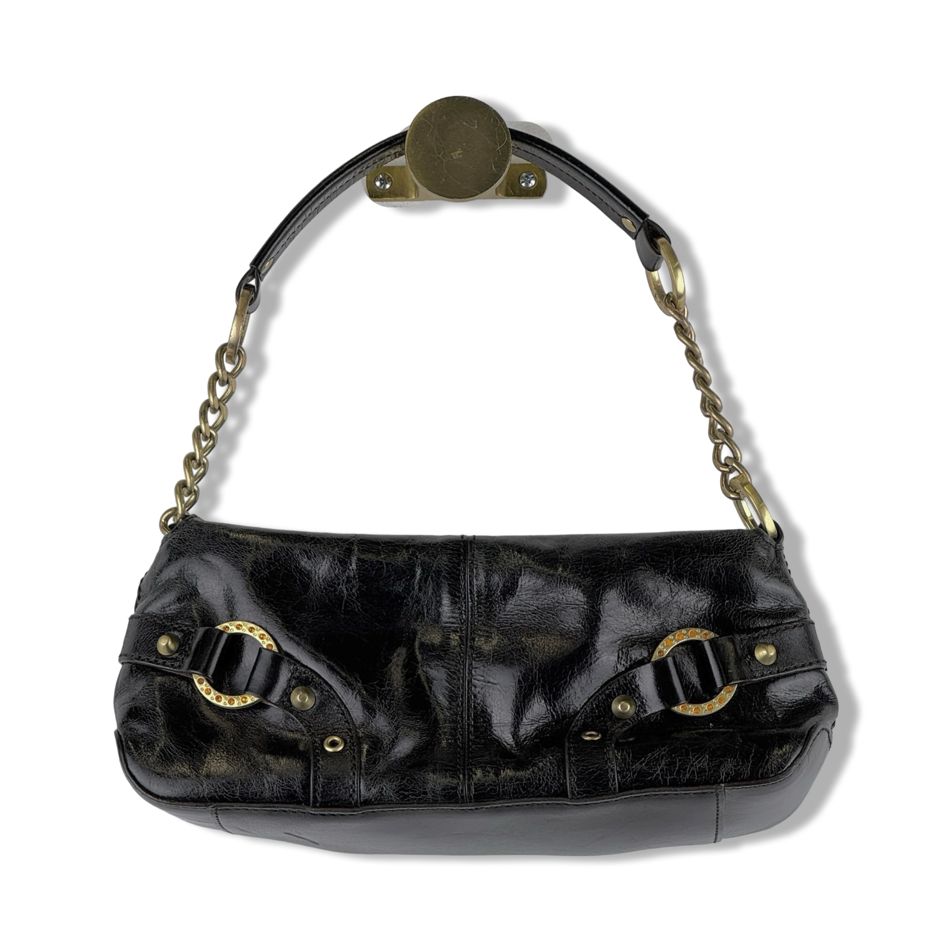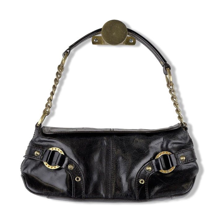 - Magnetic closure handbag with gold hardware and zip closure on interior. Some signs of wear (pictured)