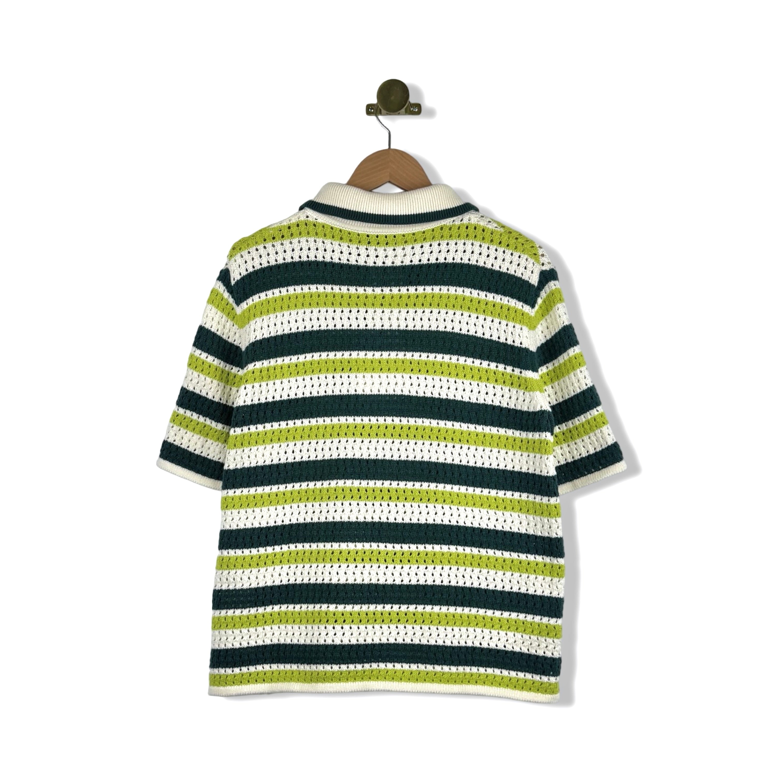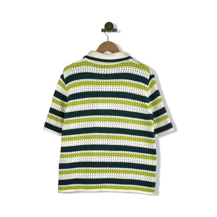 - Striped crochet top with a relaxed boxy fit, polo-neck collar with contrast detailing and tipping on the collar
