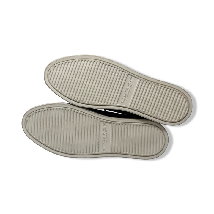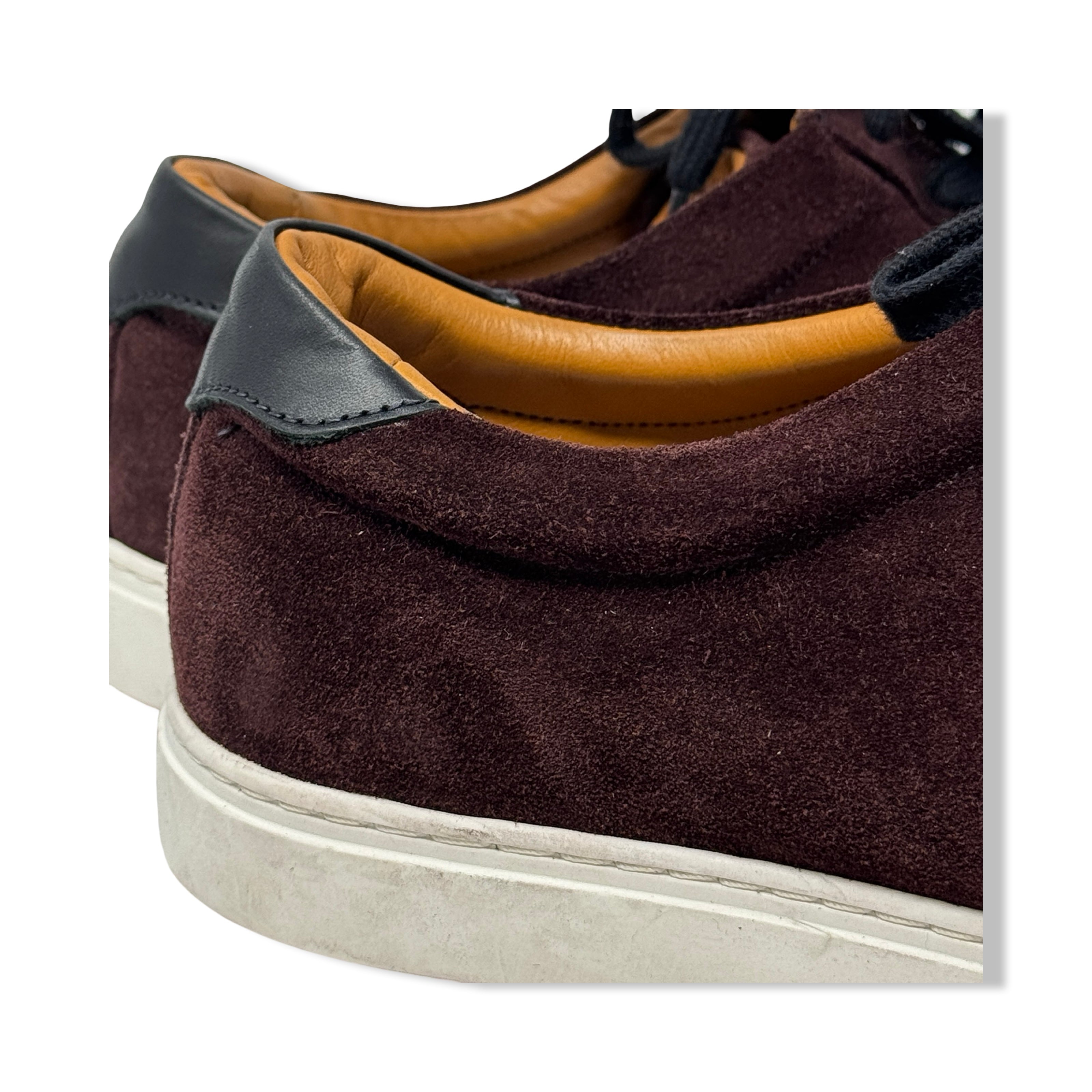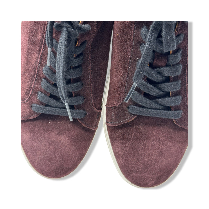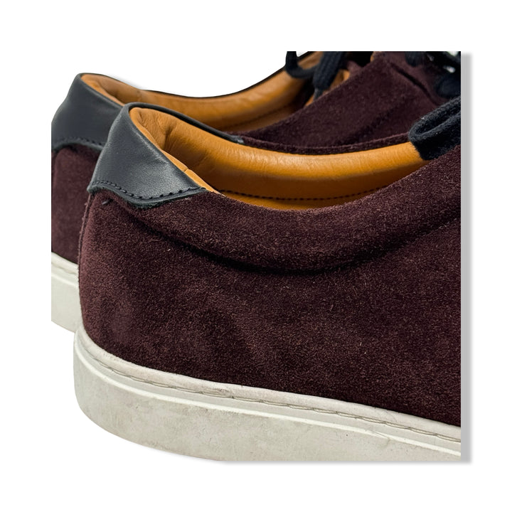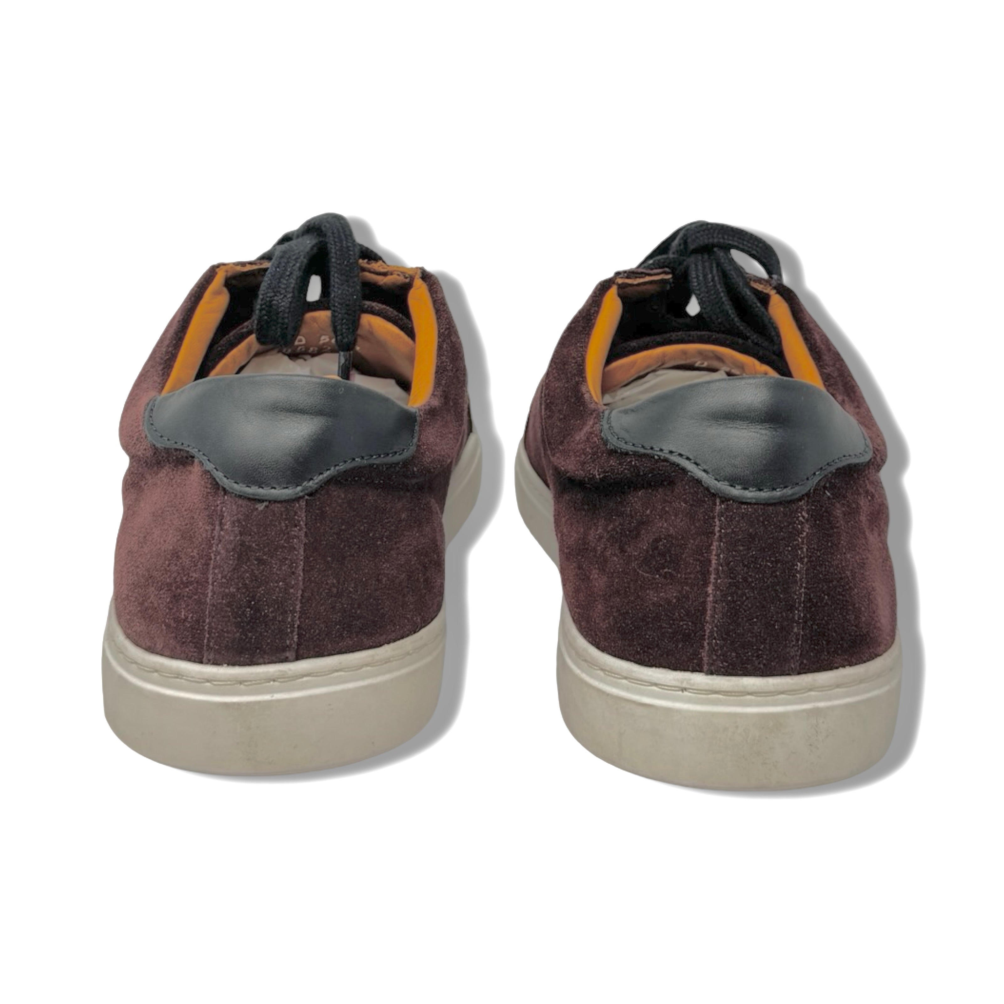 - Lace up sneakers with contrast leather panel on back. Some signs of wear