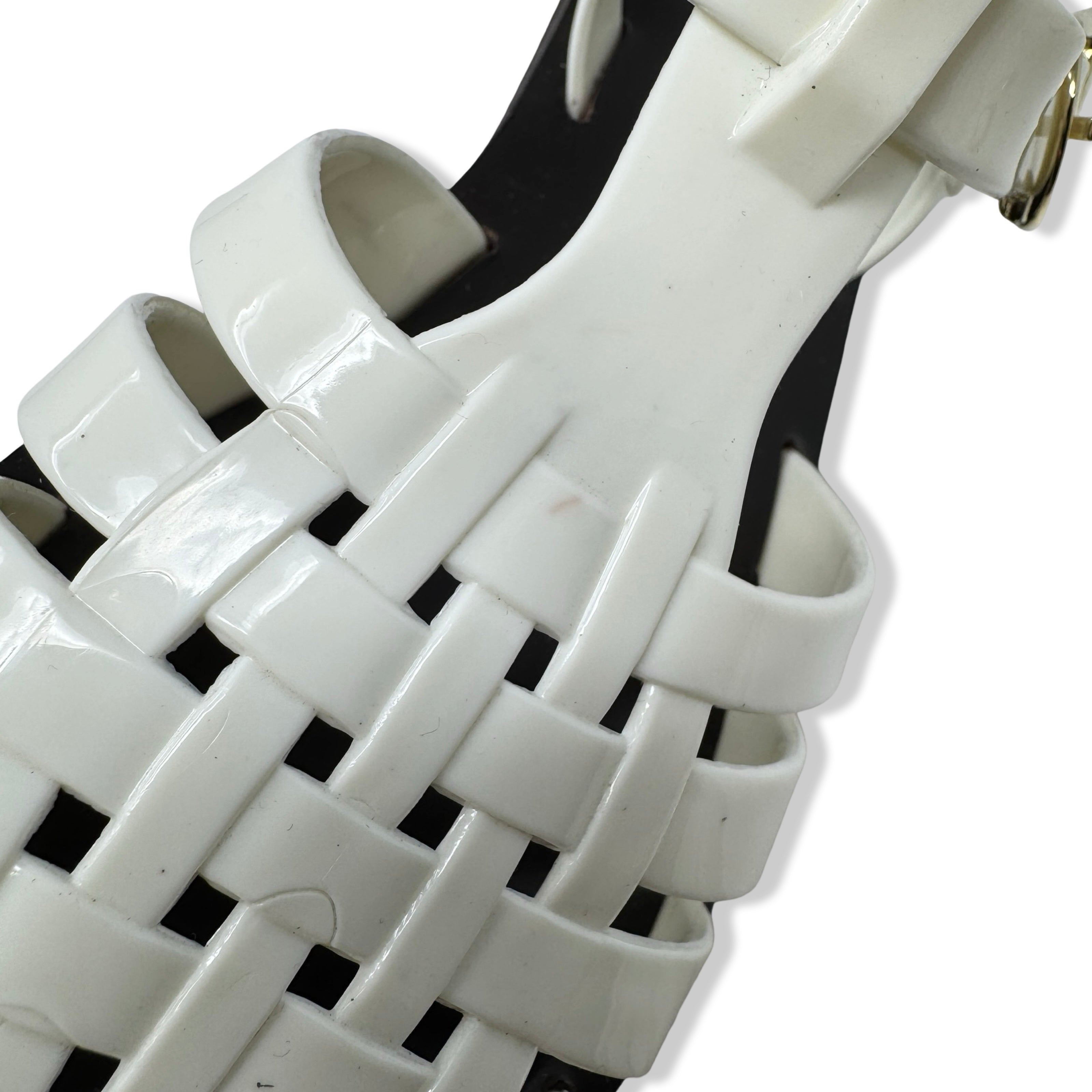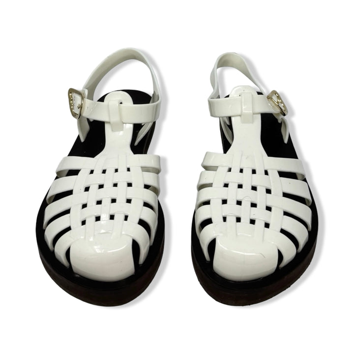 - Jelly sandals with buckle strap. Size label missing, looks like a US Women 5.5