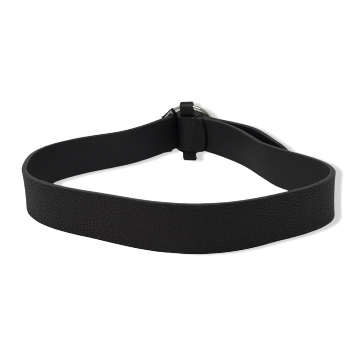 - This leather belt features a textured design and a silver ring buckle for a stylish touch. Labeled size 80; approx. size US 6