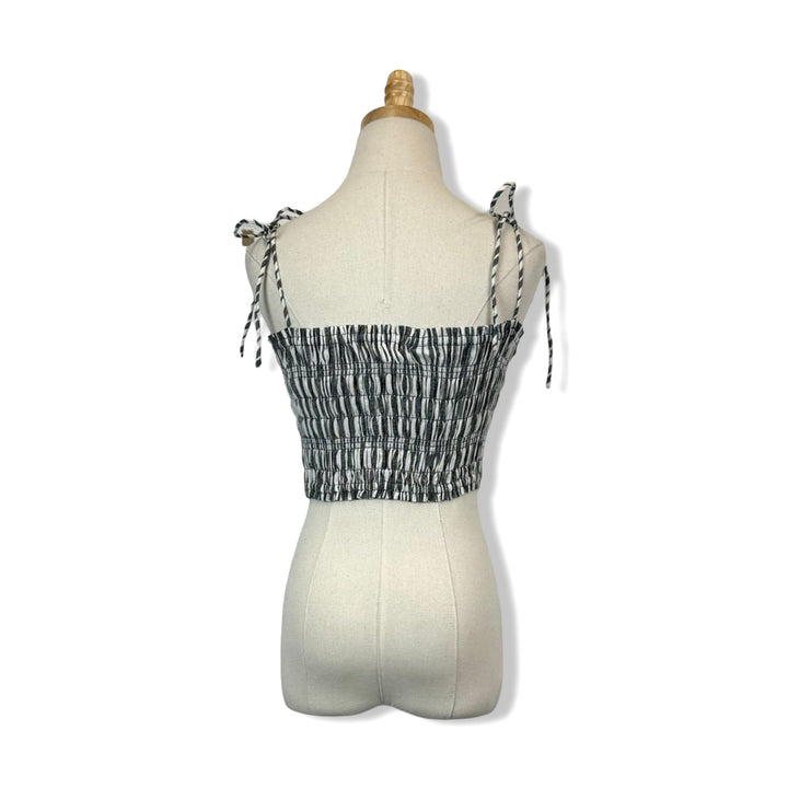 - Effortlessly elevate your warm weather wardrobe with this cropped tank that features a flattering smocked chest and self tie straps, ensuring a comfortable and adjustable fit. Perfect for any occasion, dress it up or down for a versatile and stylish look!