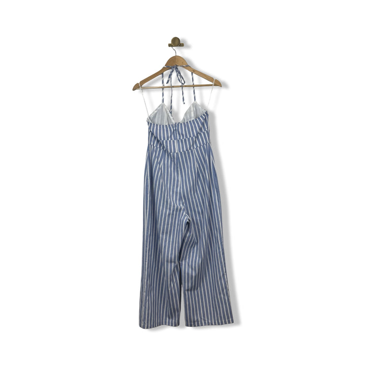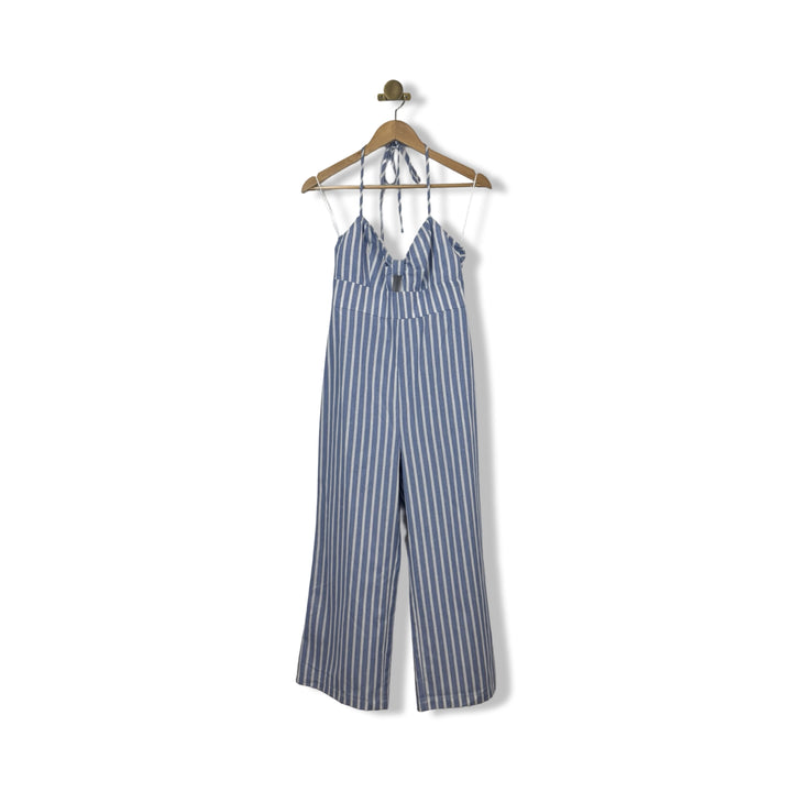 - Get knotty with this halter neck jumpsuit featuring a wide-legged design!