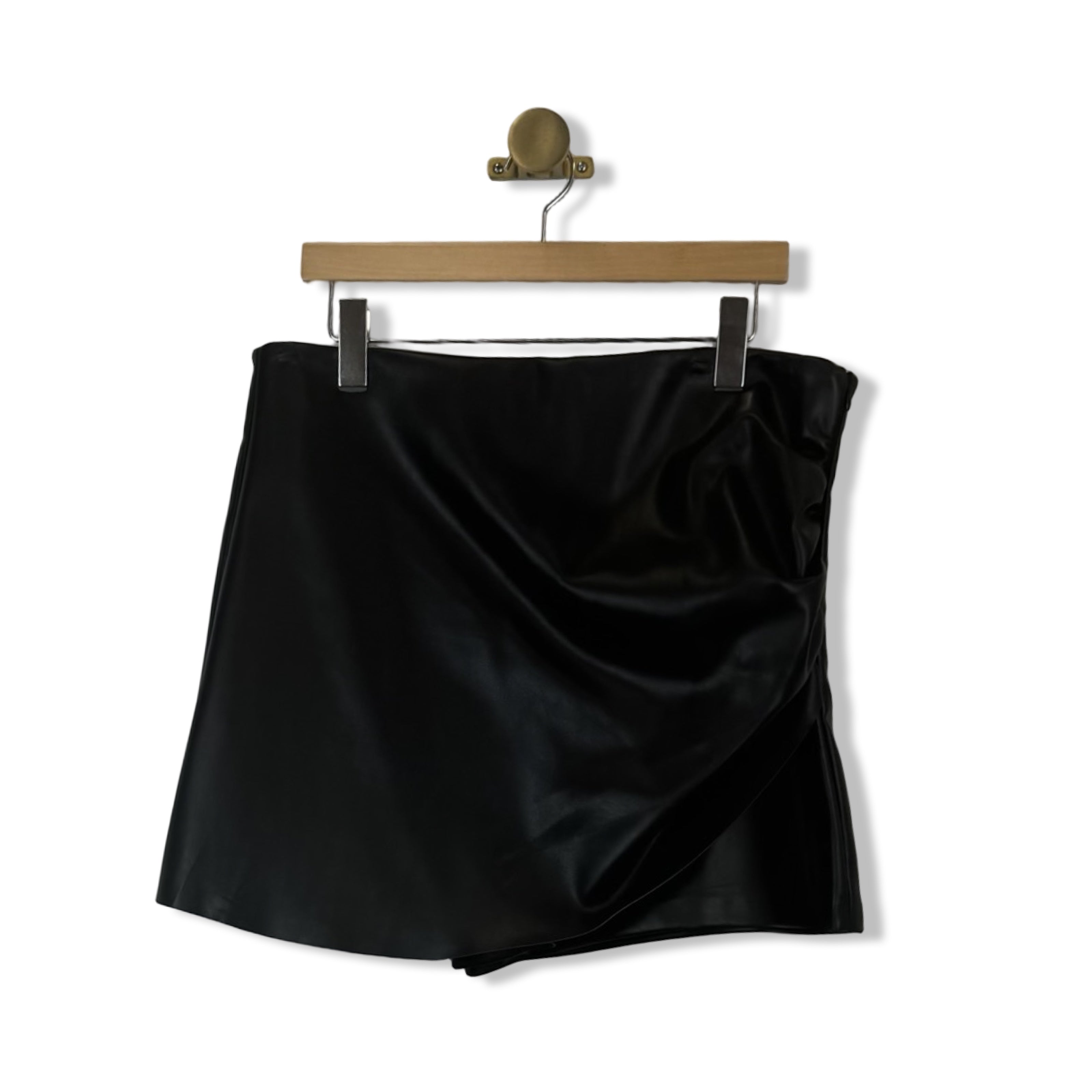 - Introducing the faux leather mini skort - perfect for fashion-forward ladies who love a bit of edge in their wardrobe!