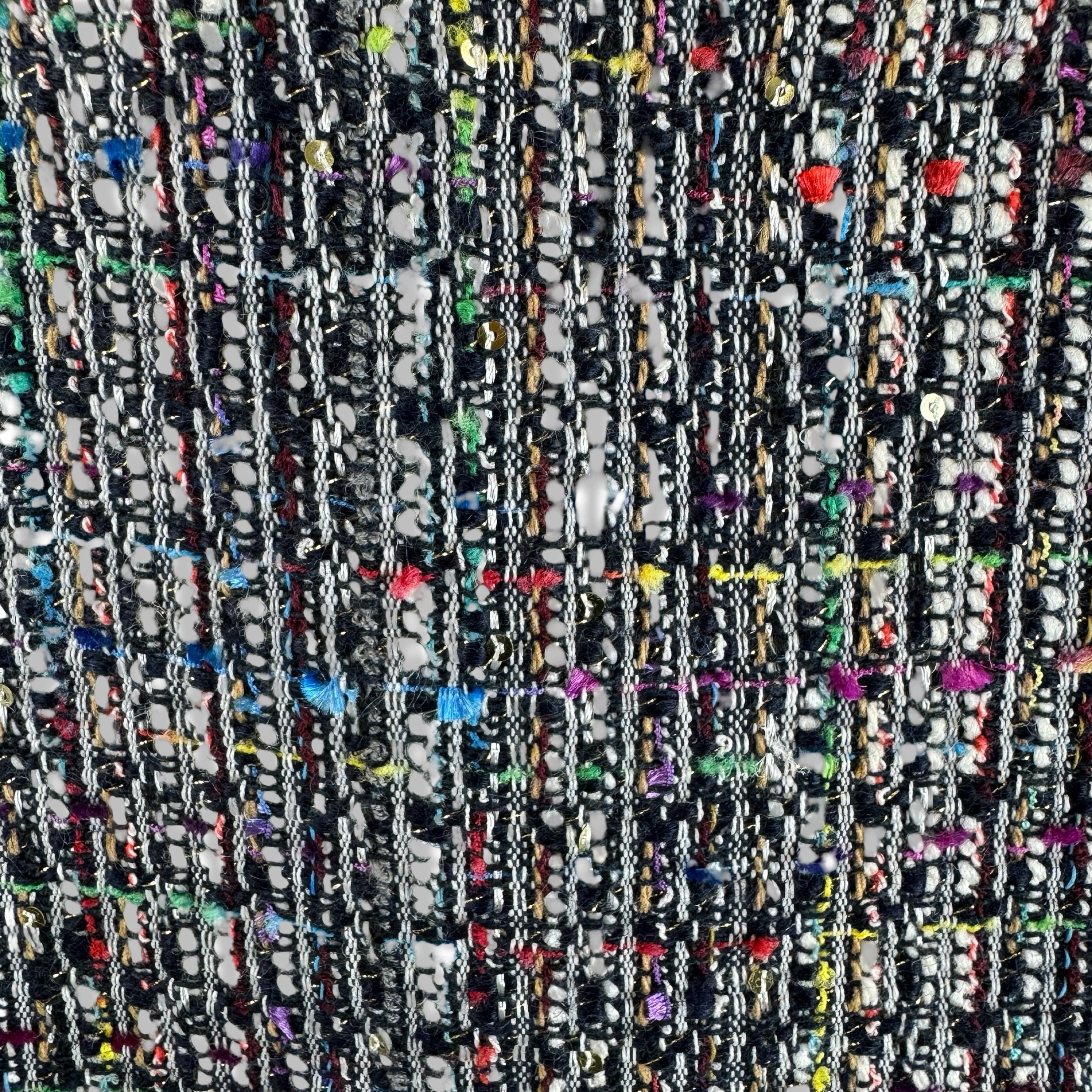 - Sequin tweed mini skirt with faux pearl details and side zip closure. Size label missing, looks like an X-Small