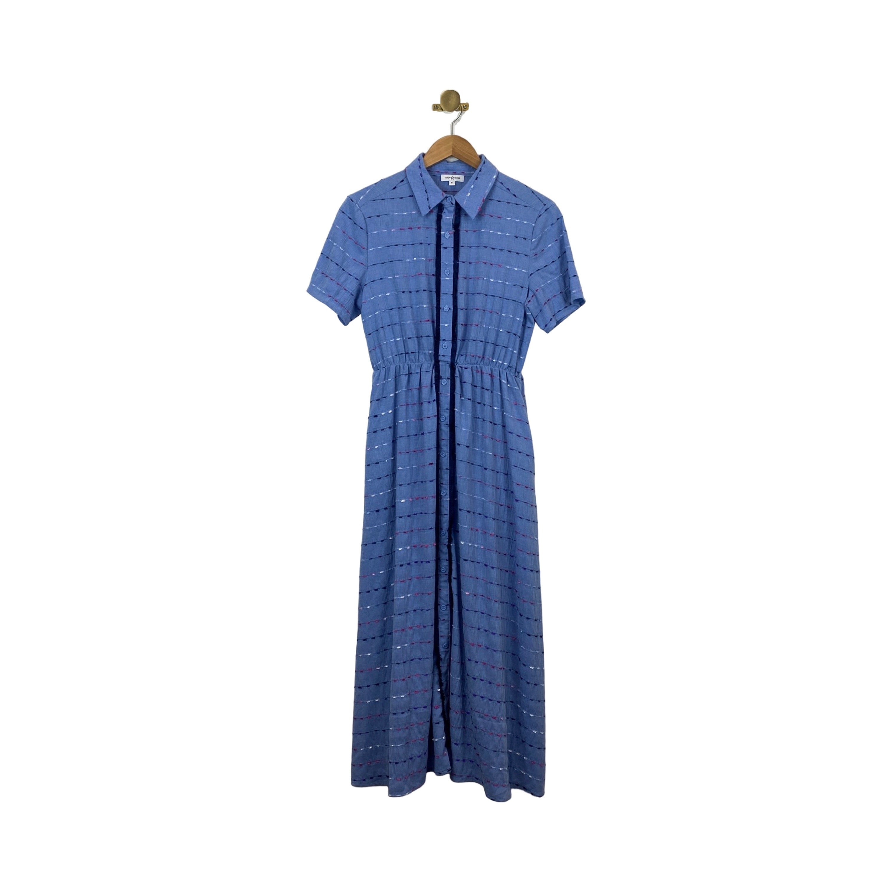 - Look fab in this button down dress with a playful fringe at the placket and an elastic waist. It's the perfect amount of quirk for your wardrobe!
