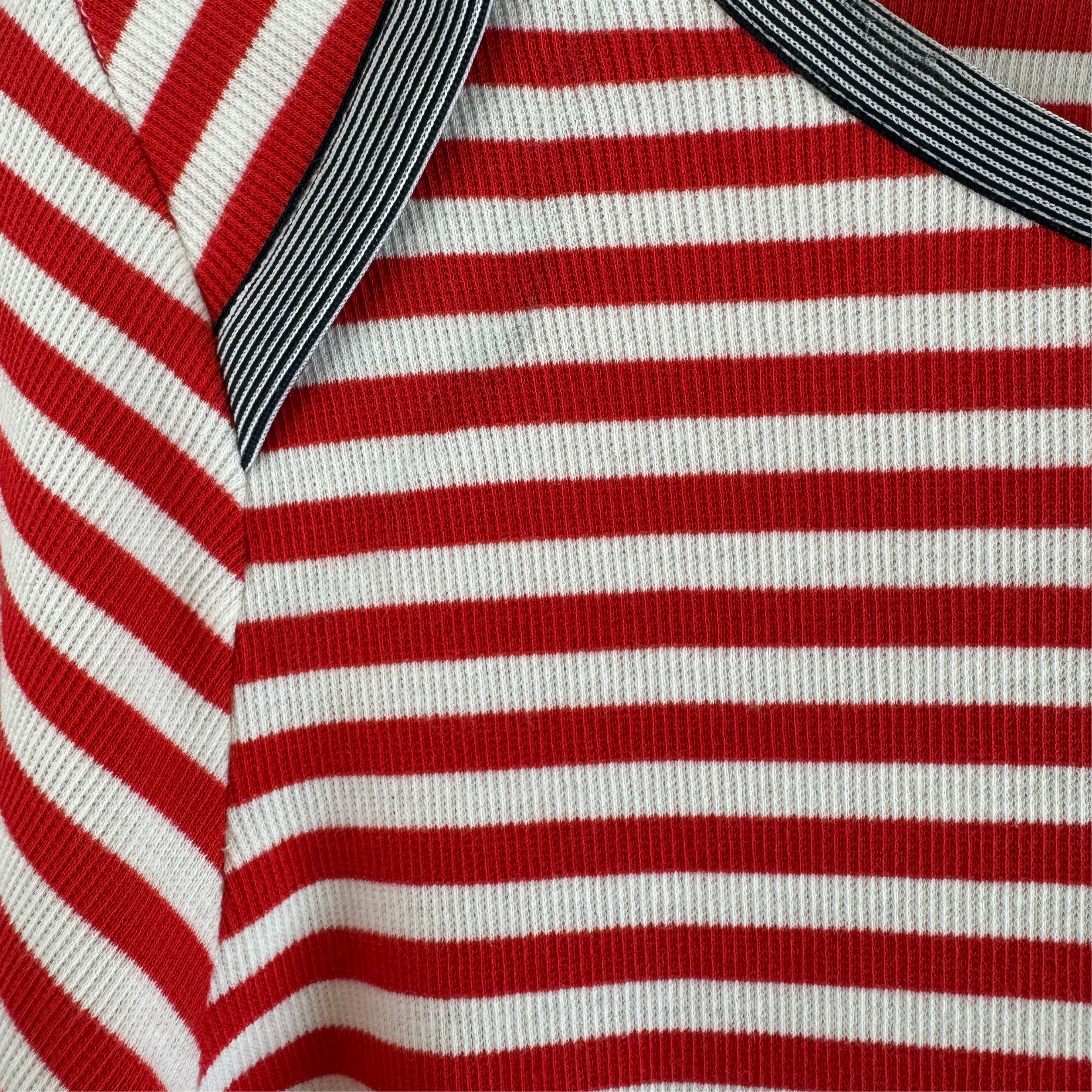 - Striped long sleeve shirt. Signs of wear (pictured). Labeled size 1; approx. size small, according to brand.