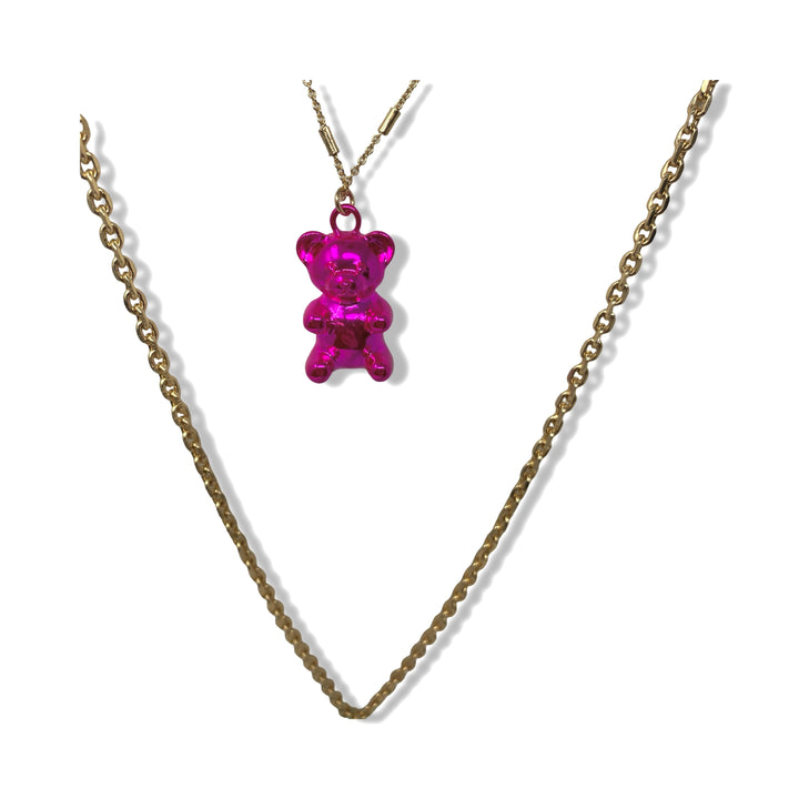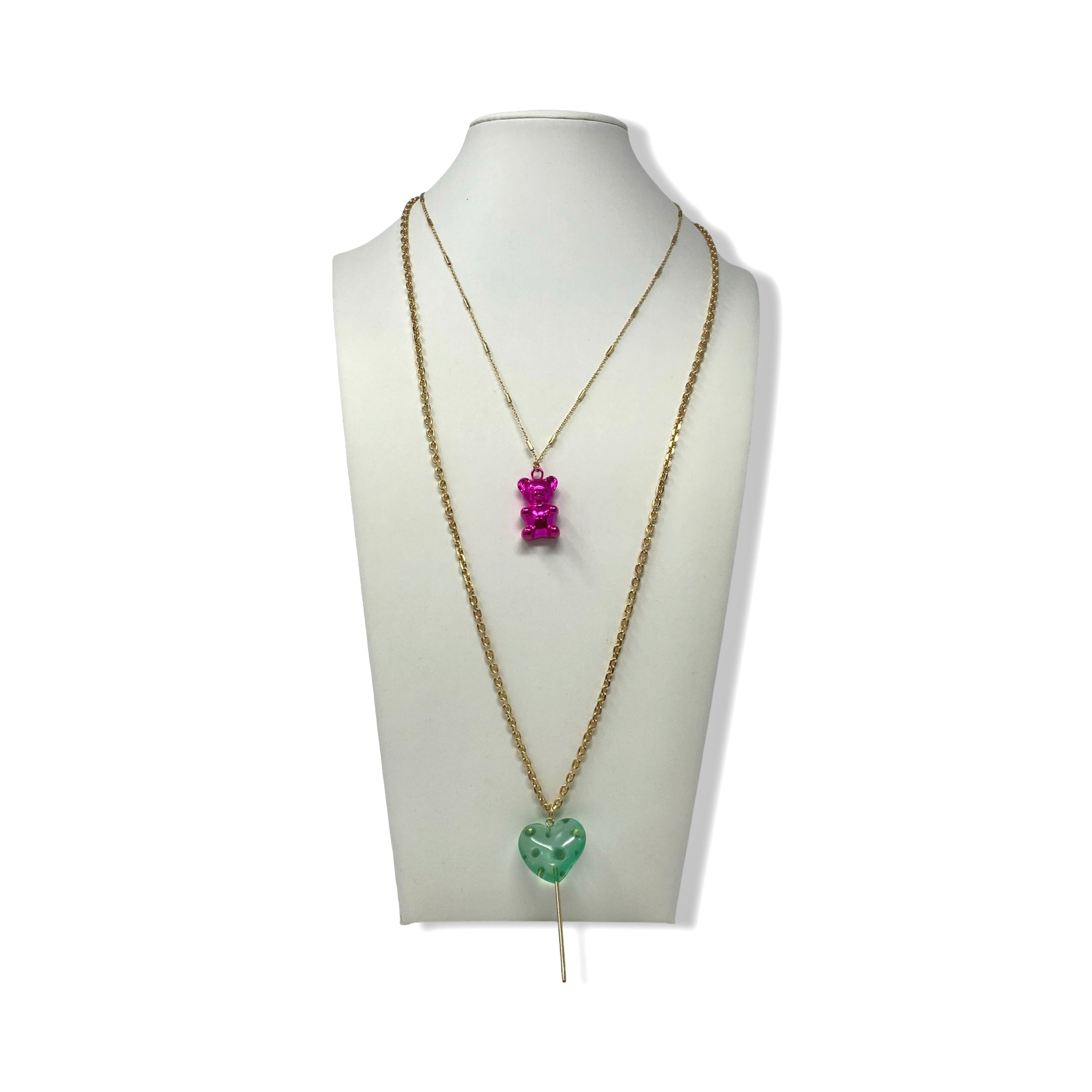 - Link chain necklace with teddy bear and lollipop pendant