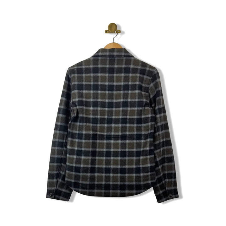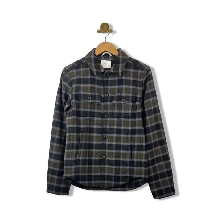 - Get cozy with this plaid jacket featuring a 4-pocket front and curved hem. Button it up for a stylish look!