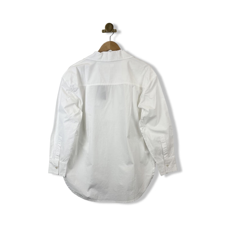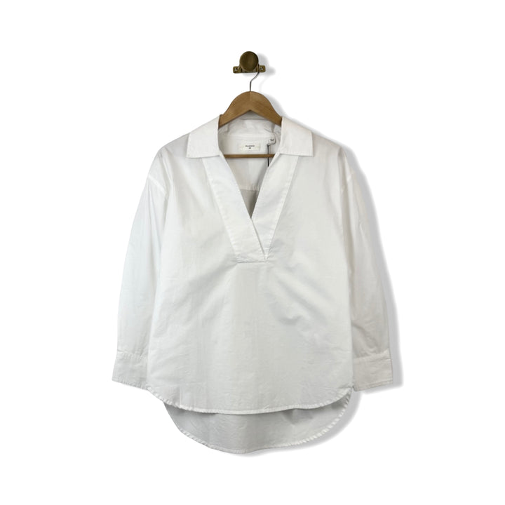 - Elevate your style with this stunning v-neck poplin shirt, featuring a pullover design and a flattering curved hem.