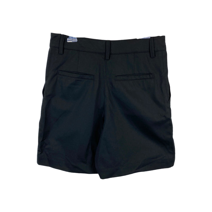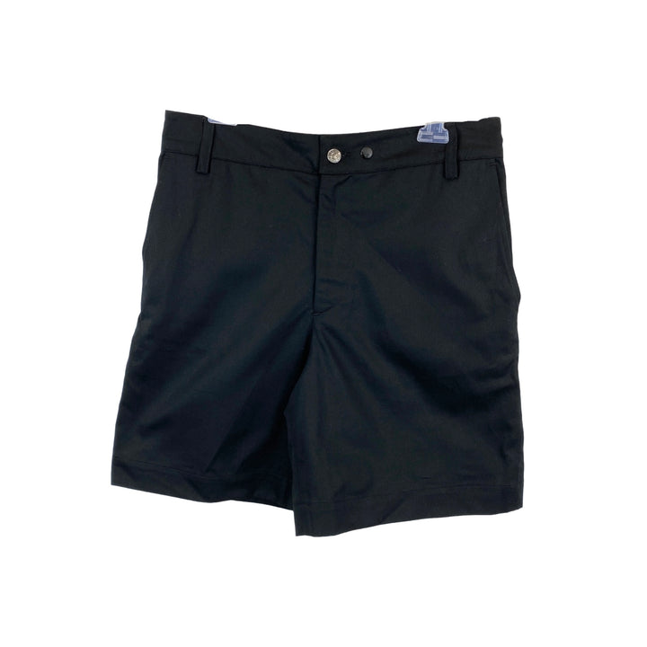 - Shorts with dual front and back pockets. Button zip fly closure. Size label missing, looks like a Medium. Please check measurements for accurate sizing.
