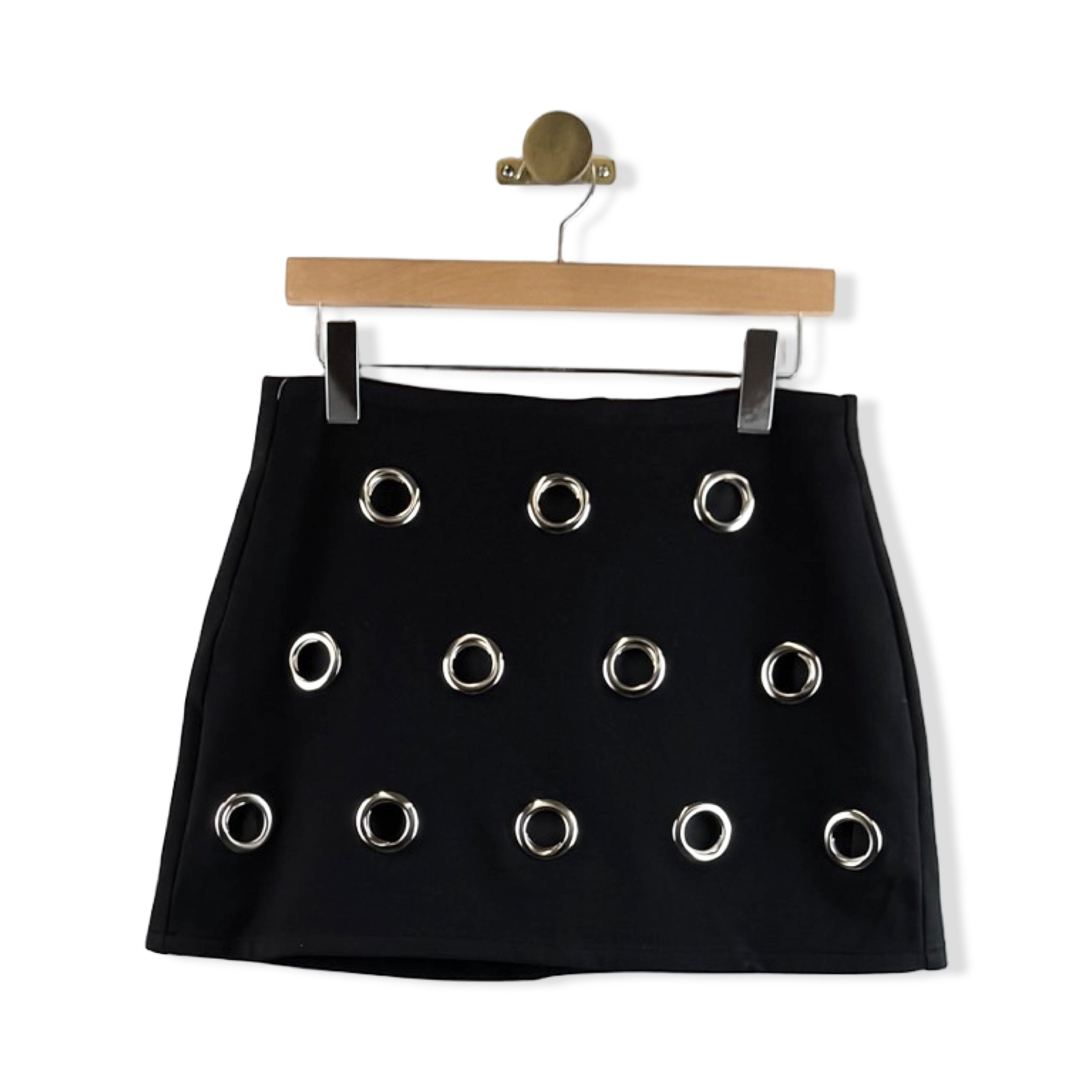 - Mini skirt with grommet details and back zip closure