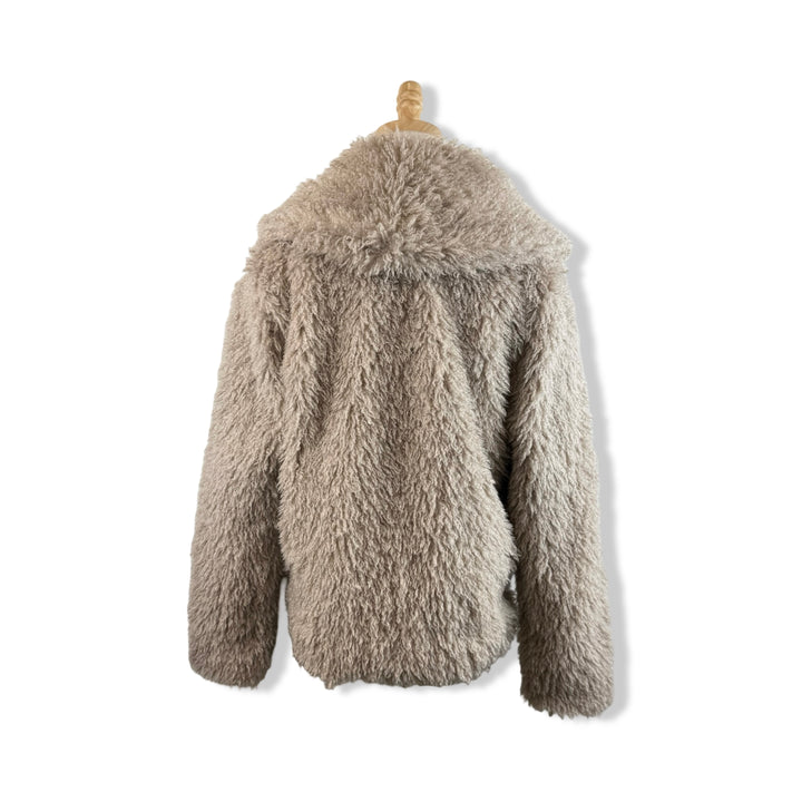 - Faux fur jacket with front hook closure