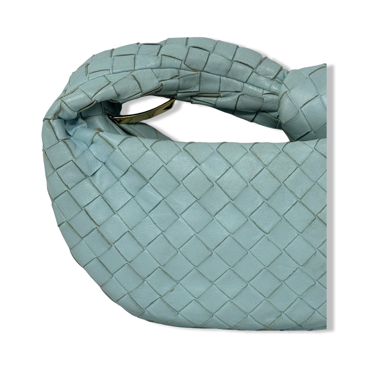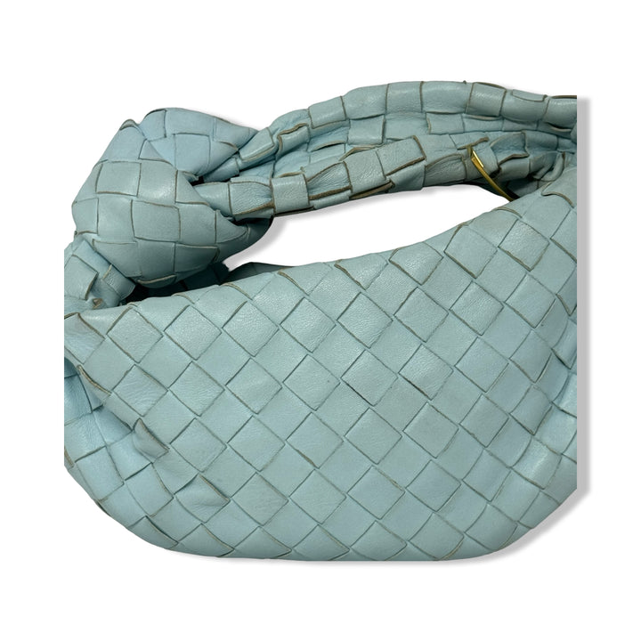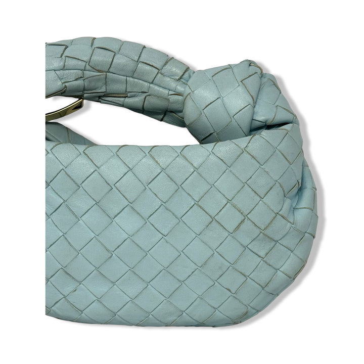 - Woven bag with zip closure, knot accent on strap, one main inner compartment and one smaller inner pocket. Designer dust bag included. Some signs of wear. (pictured)