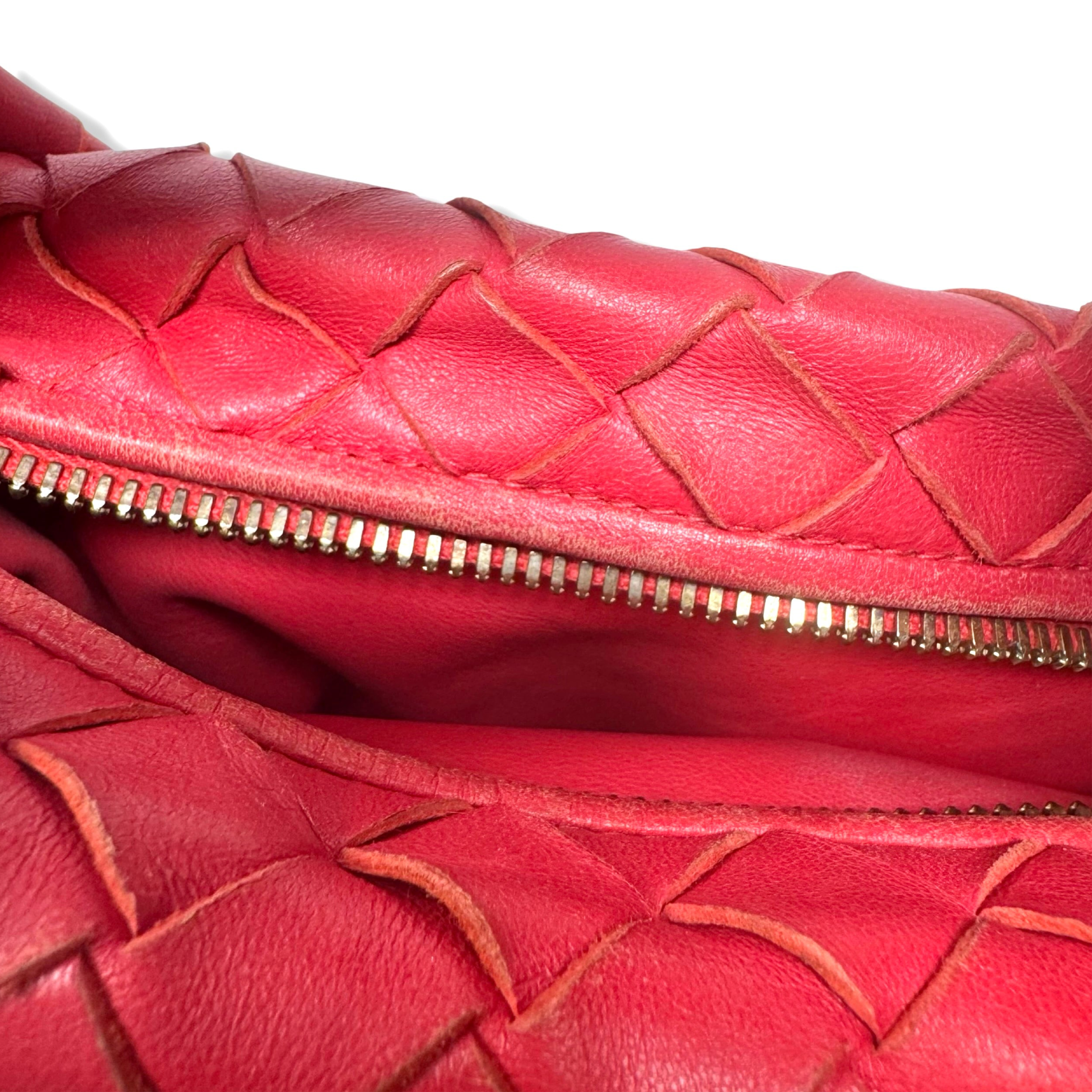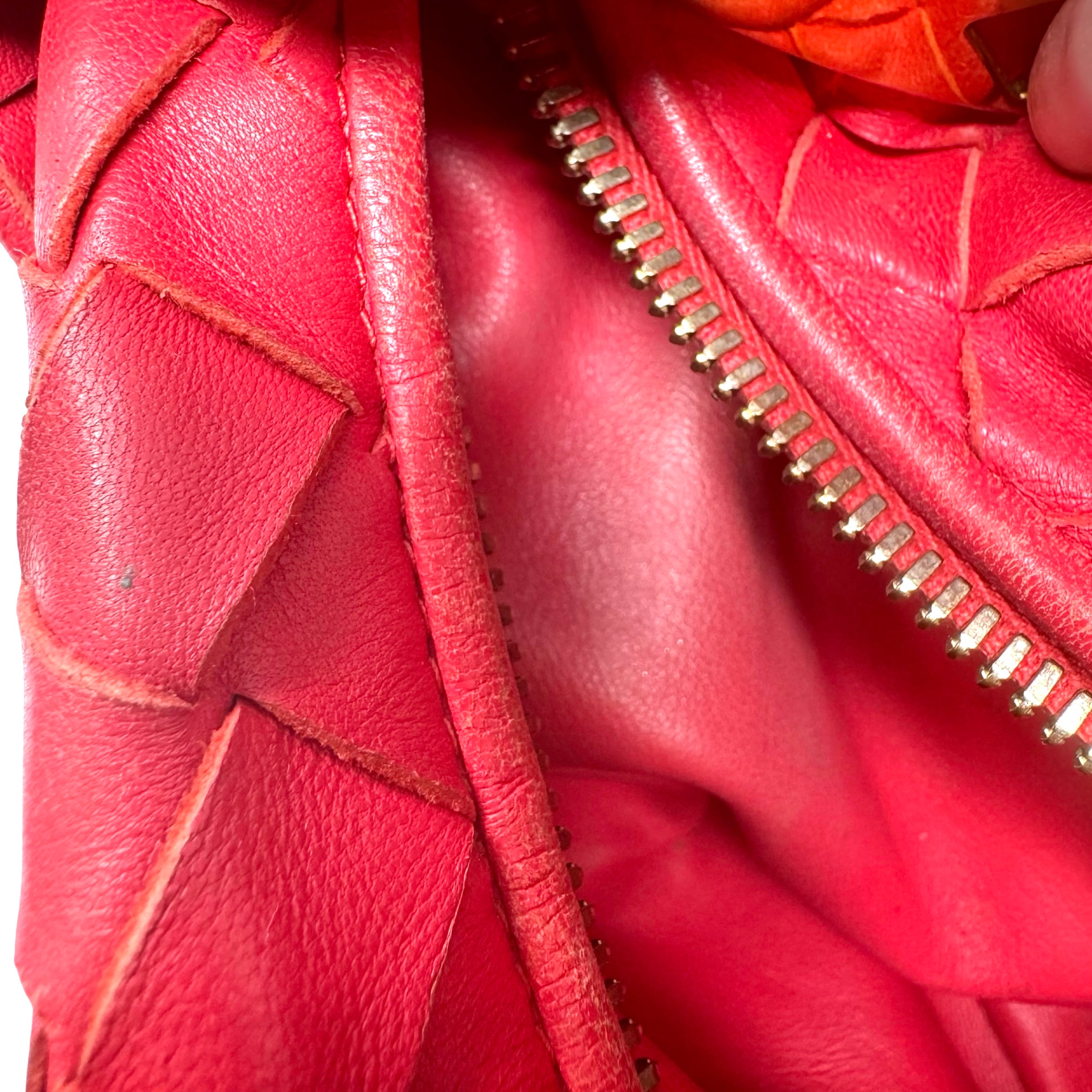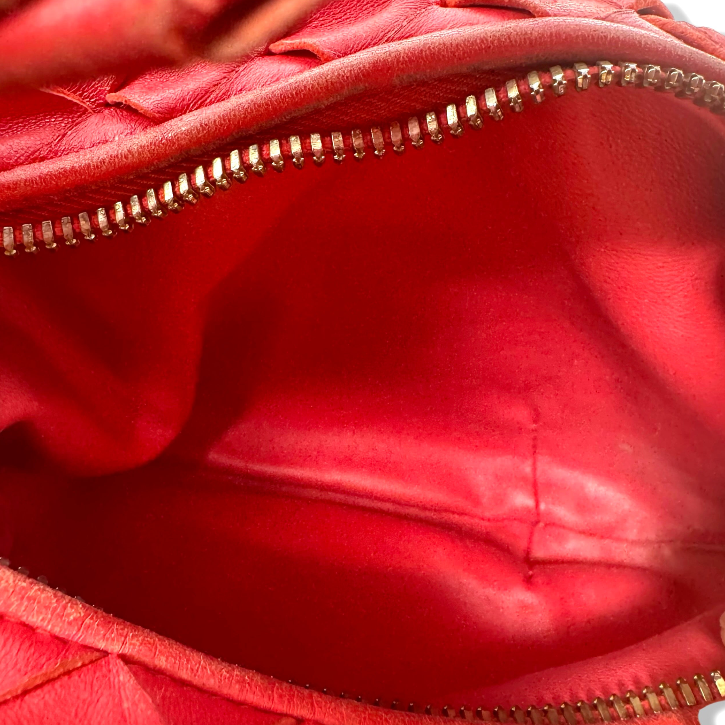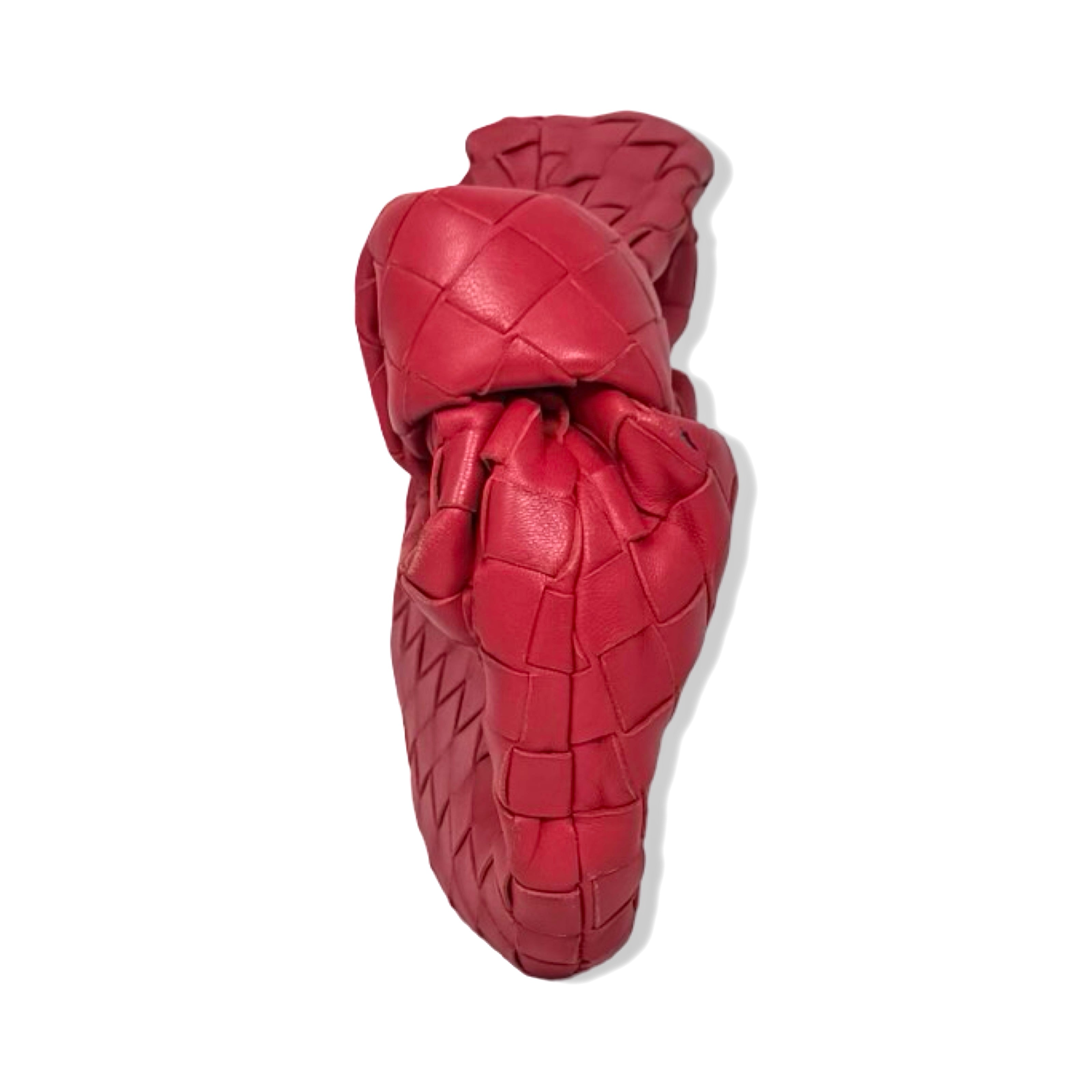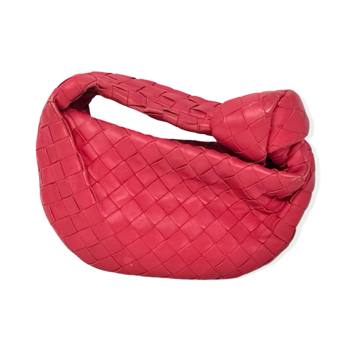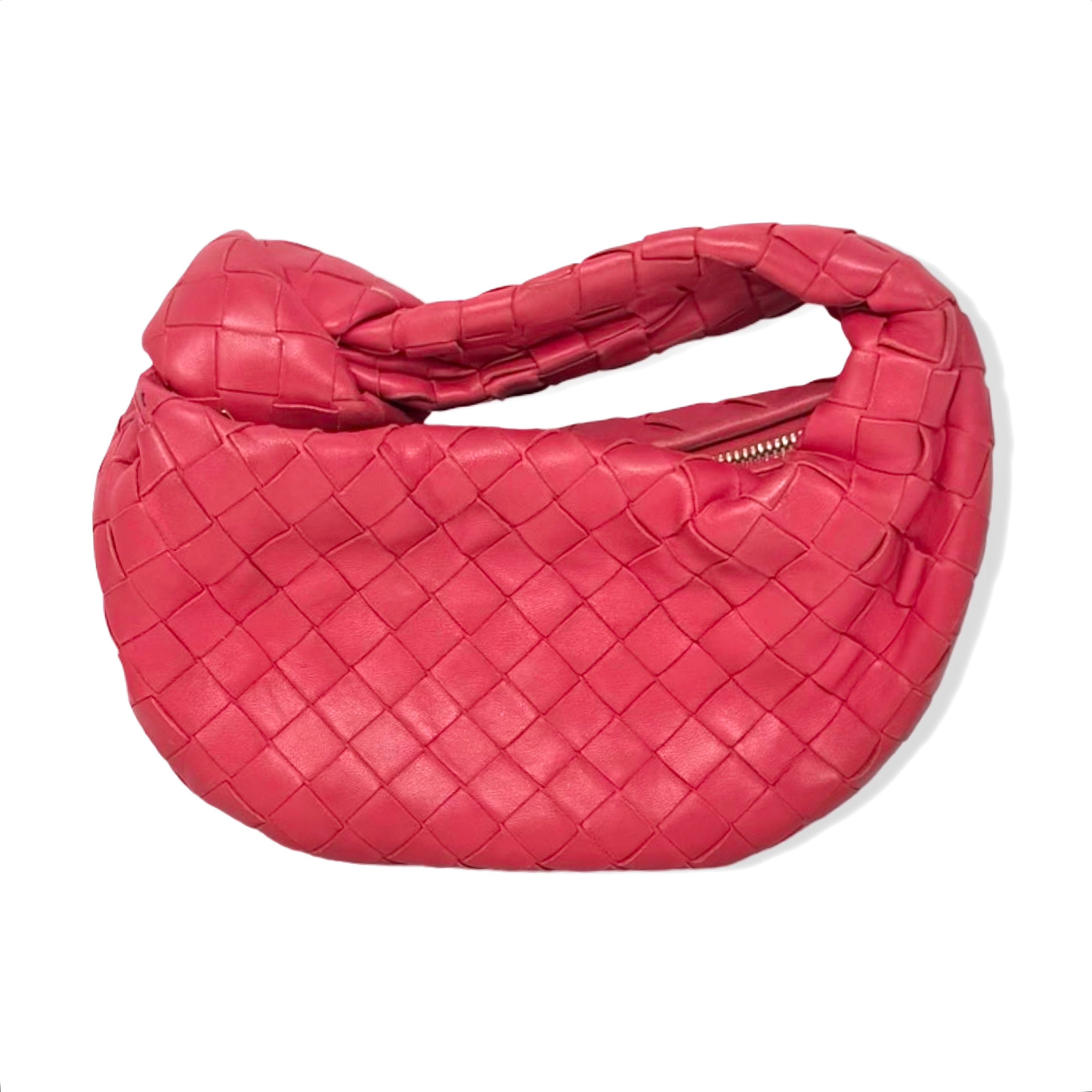 - Woven bag with zip closure, knot accent on strap, one main inner compartment and one smaller inner pocket. Designer dust bag included.