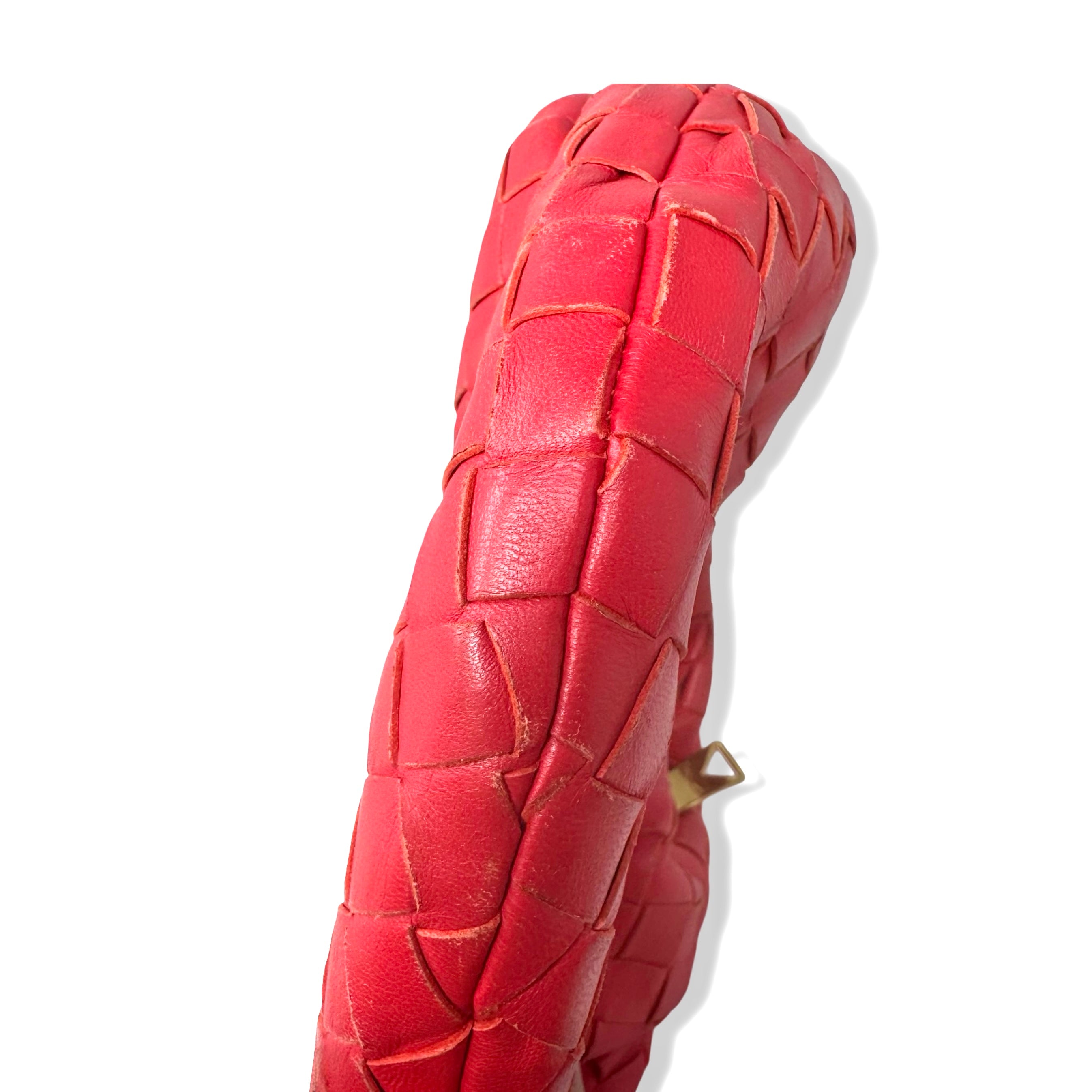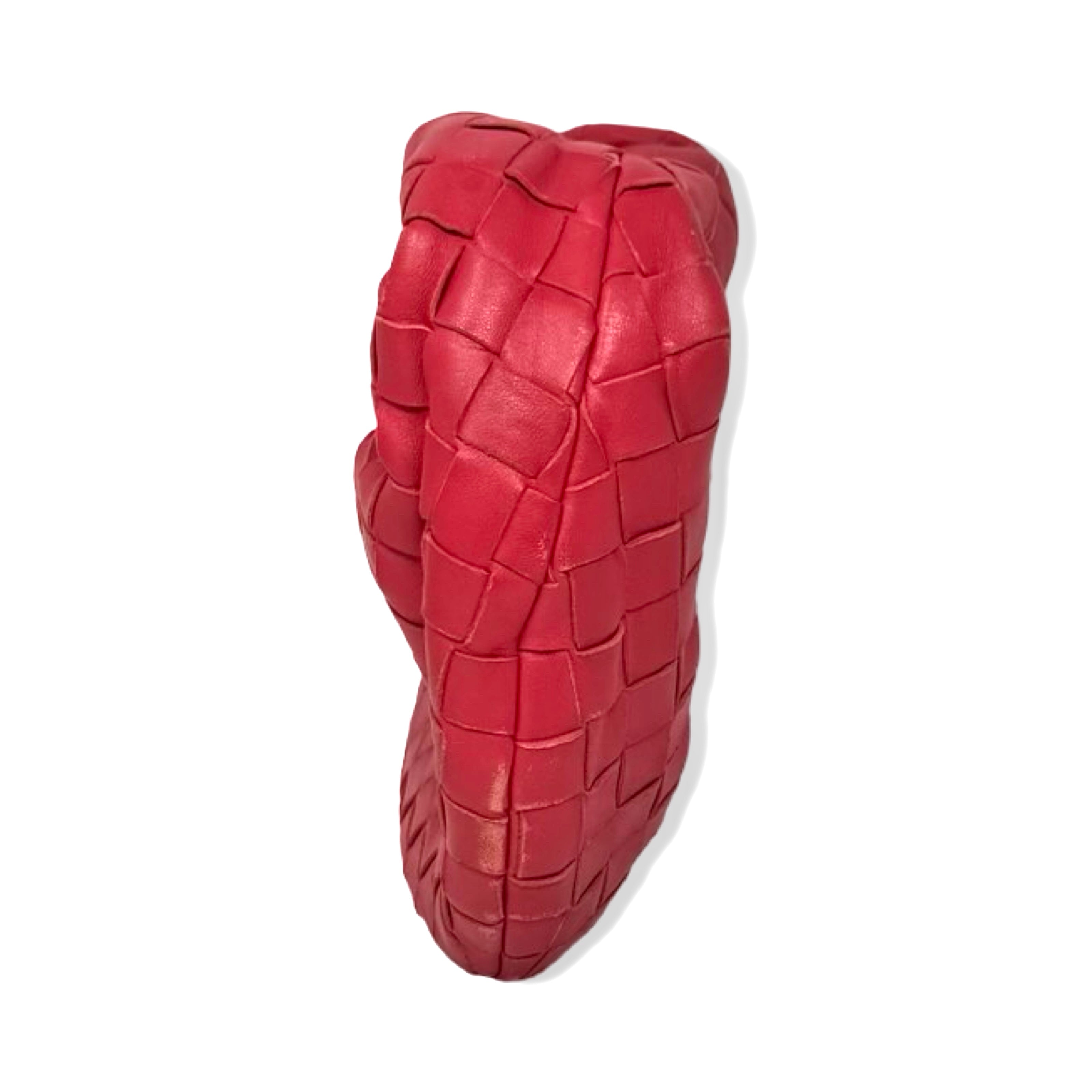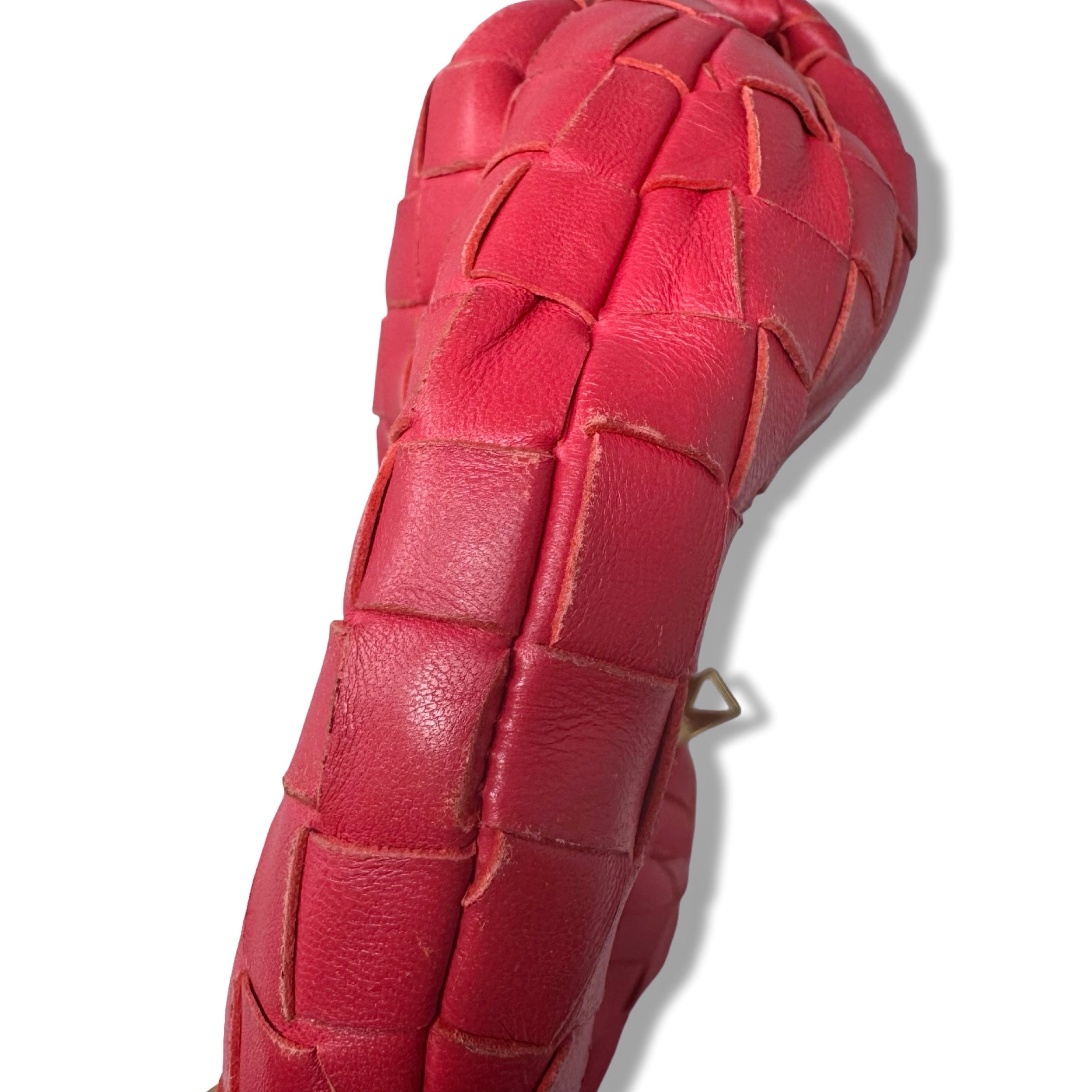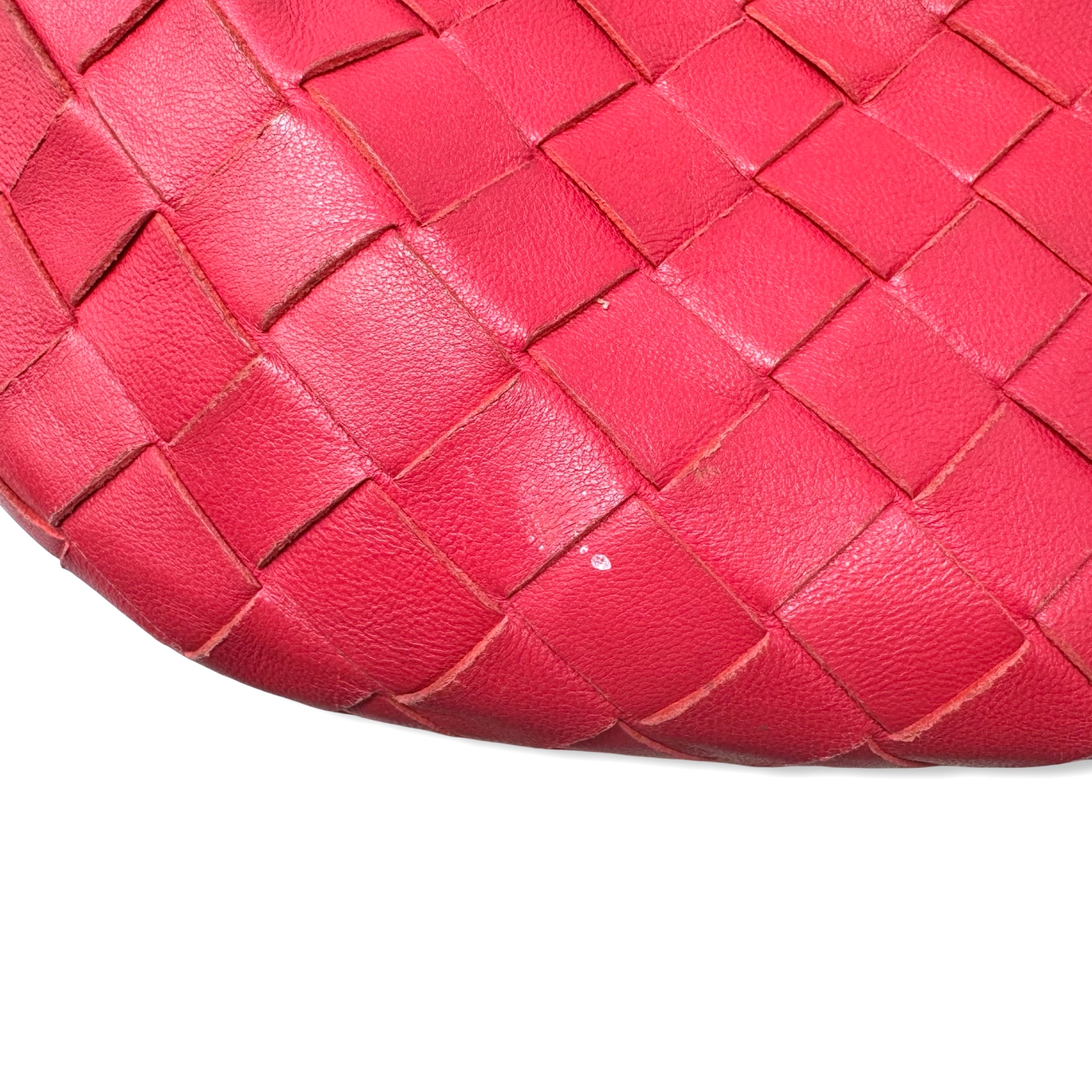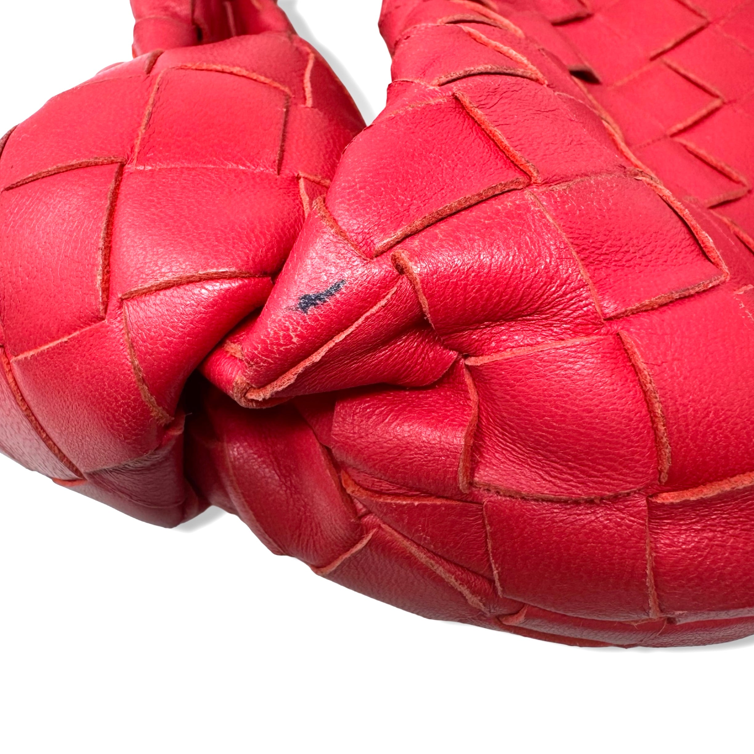 - Woven bag with zip closure, knot accent on strap, one main inner compartment and one smaller inner pocket. Designer dust bag included.