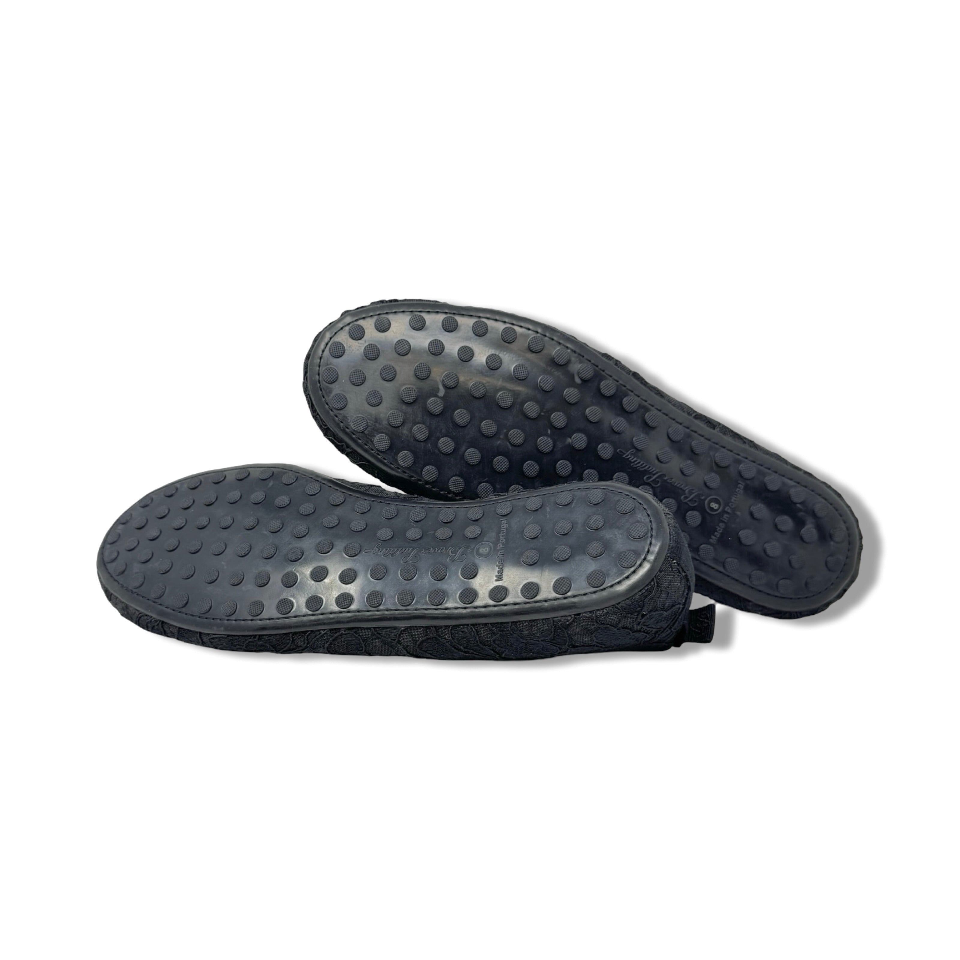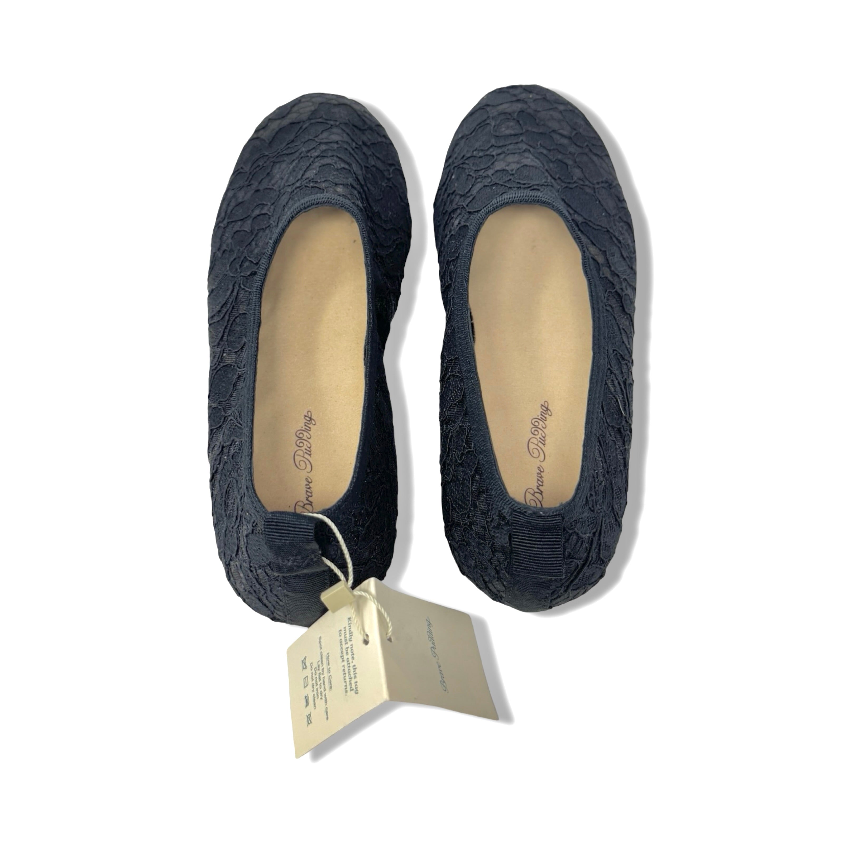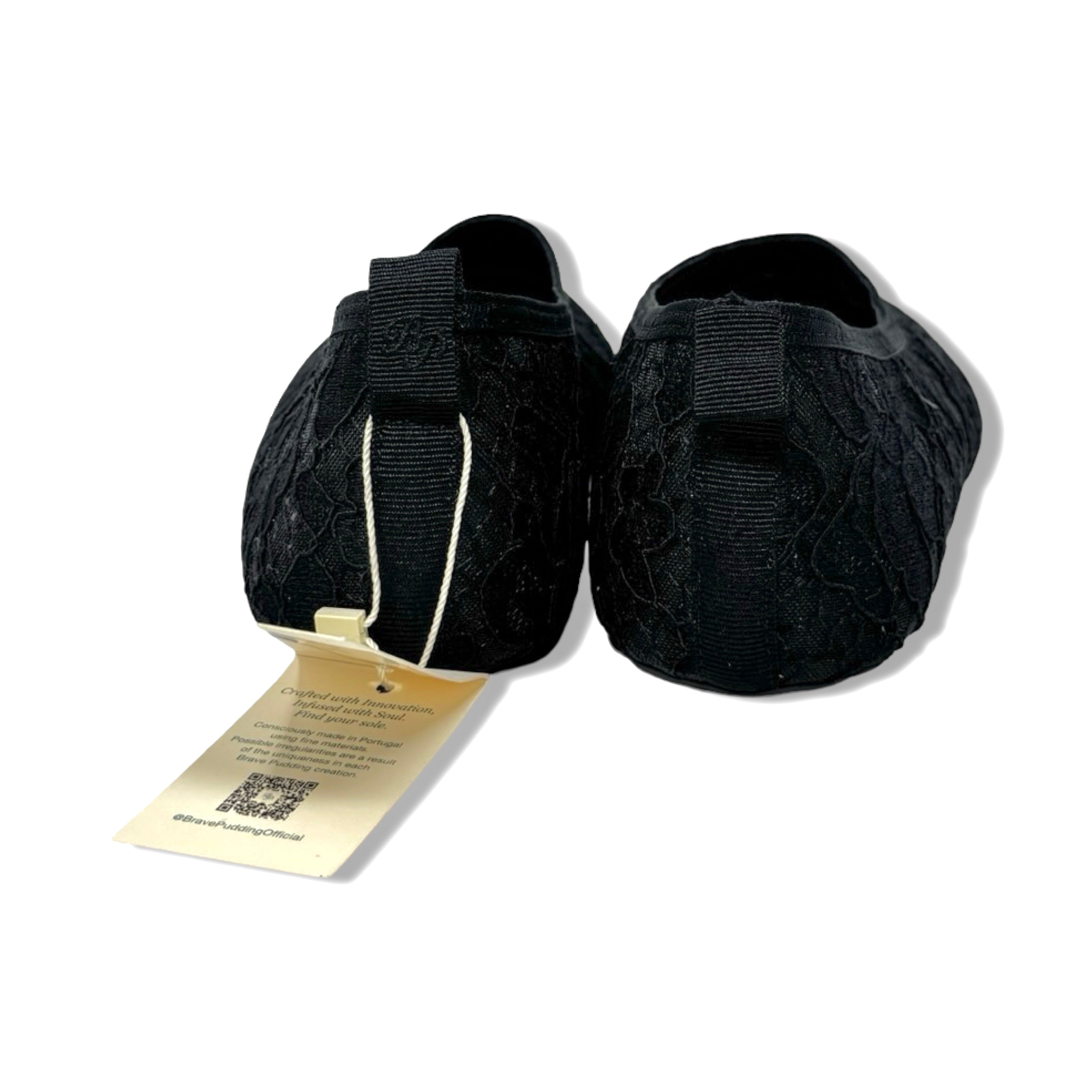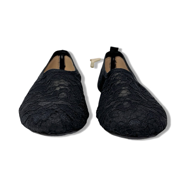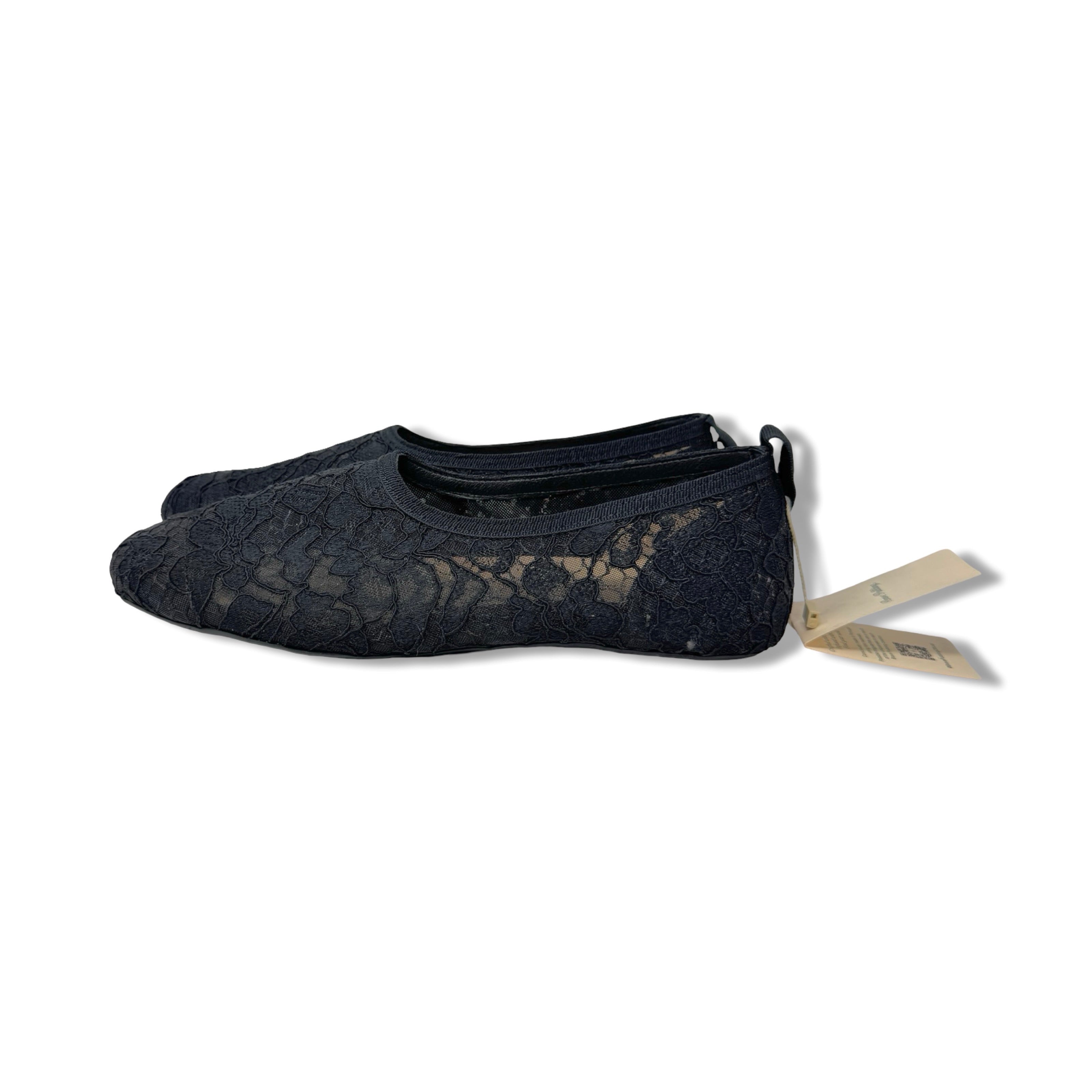 - Slip on flats with sheer structured lace, finished with grosgrain piping and a cushioned insole.