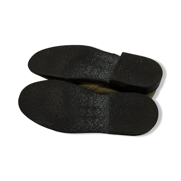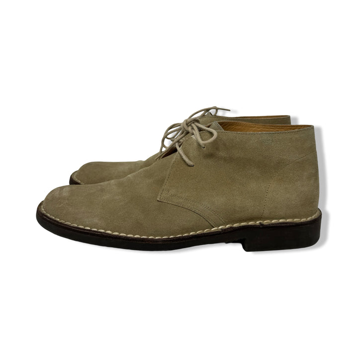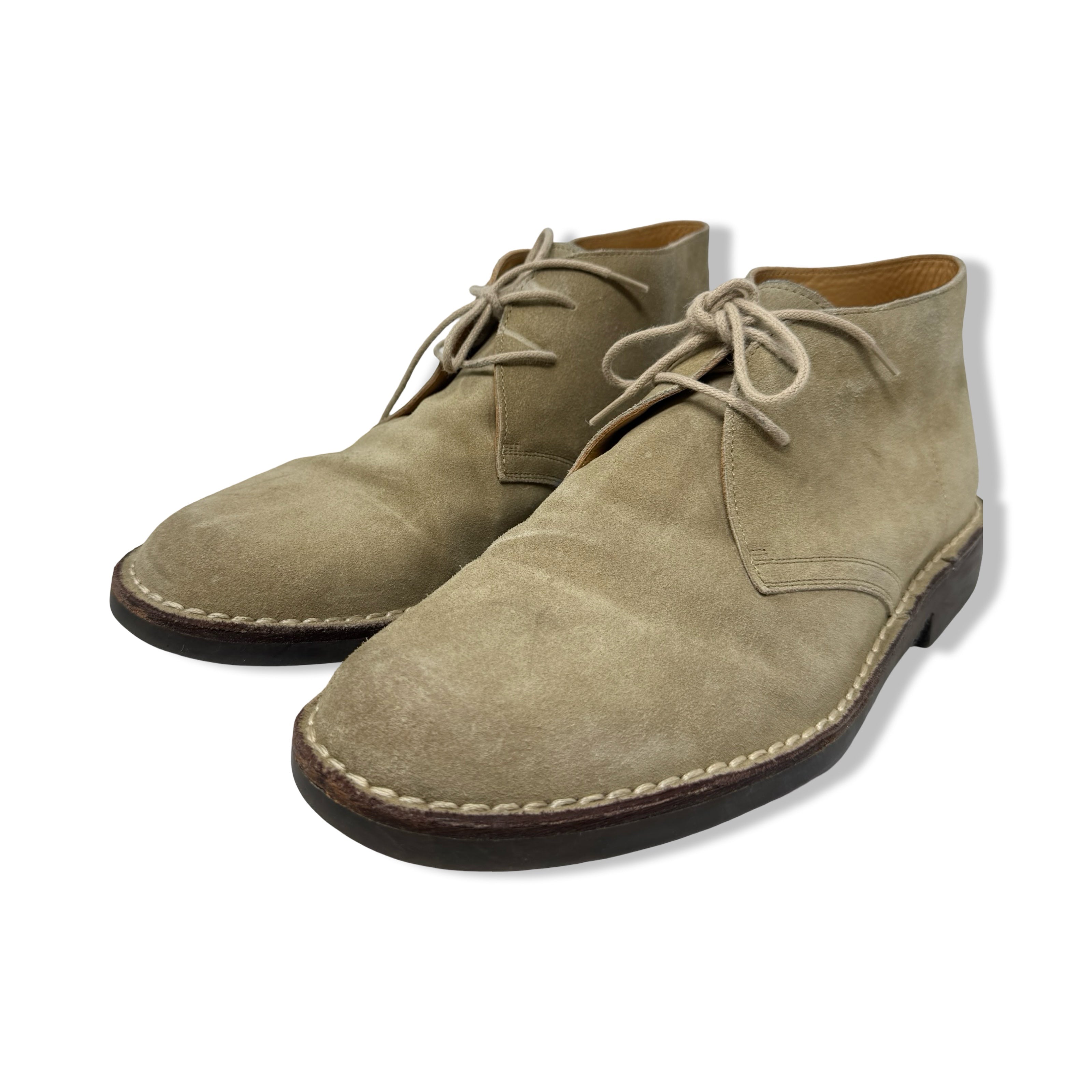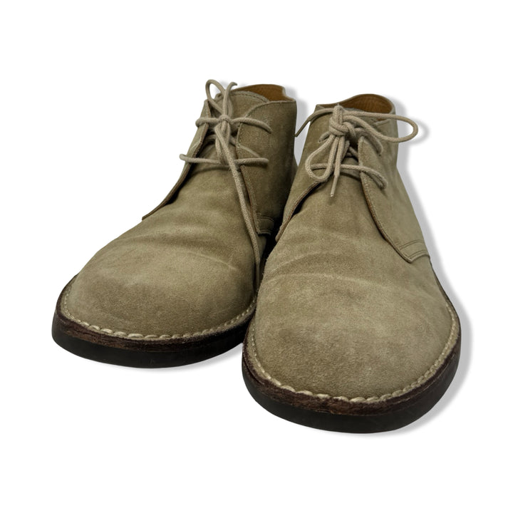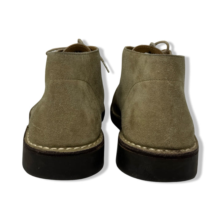 - Lace up suede shoes with contrast stitching. Some signs of wear