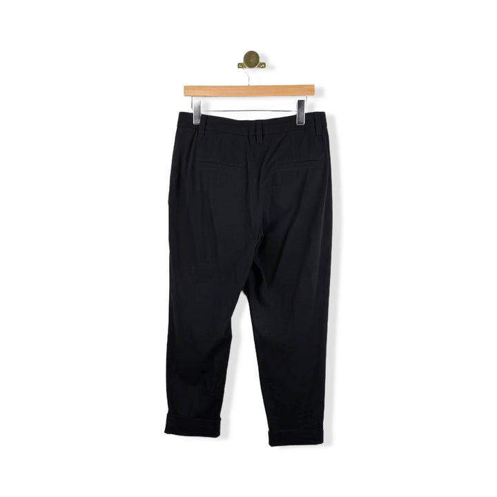 - Cropped cuffed pants with dual front pockets, faux back pockets, and hook and bar zip fly