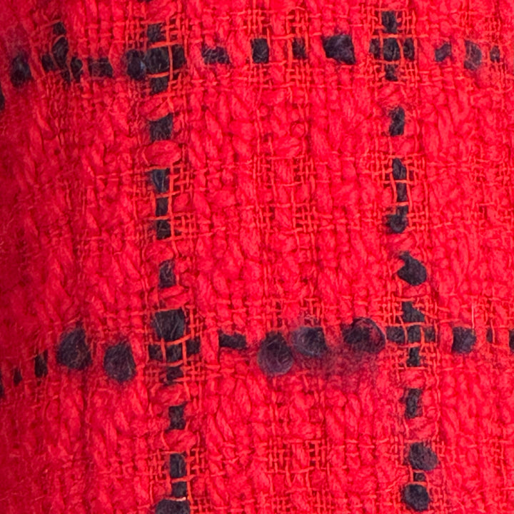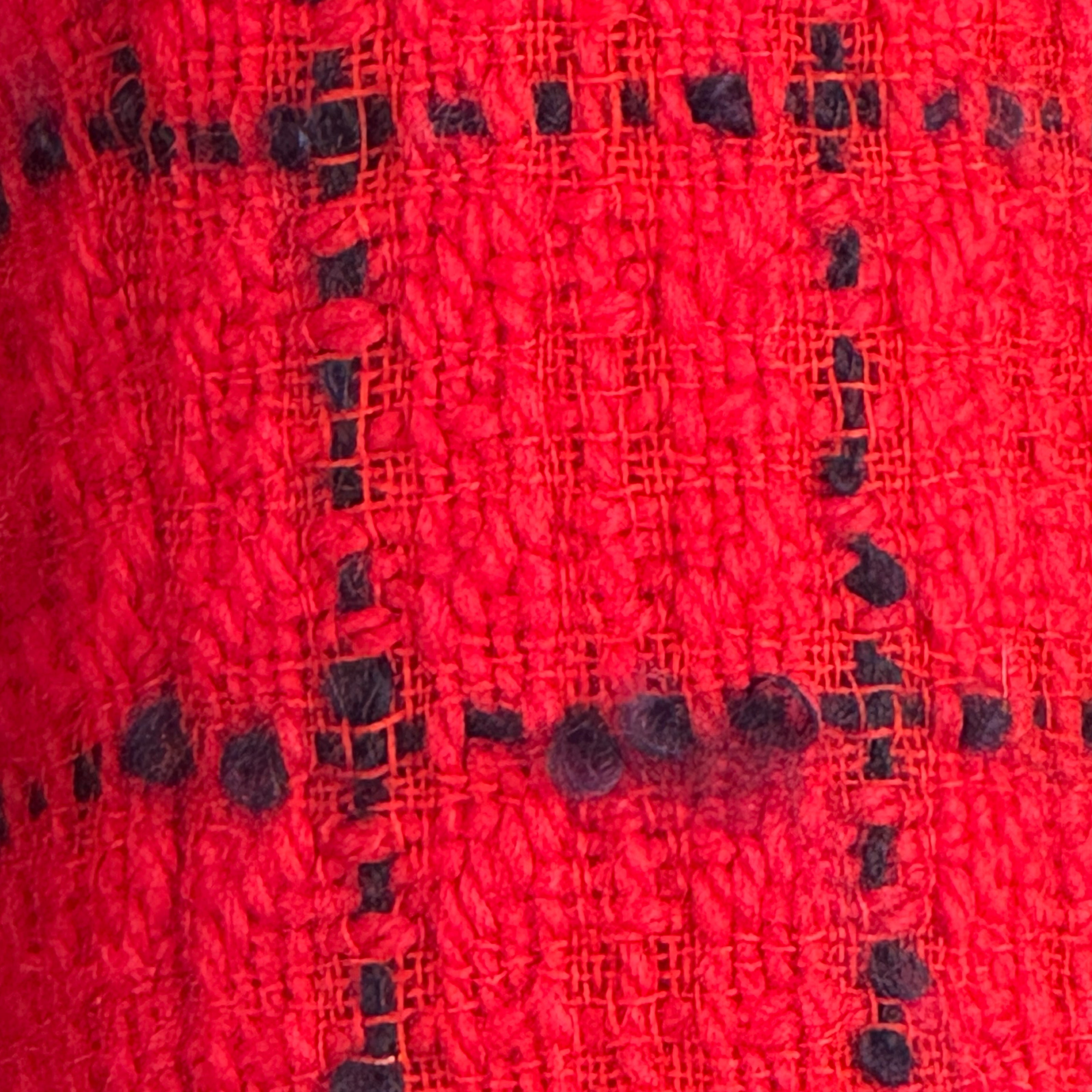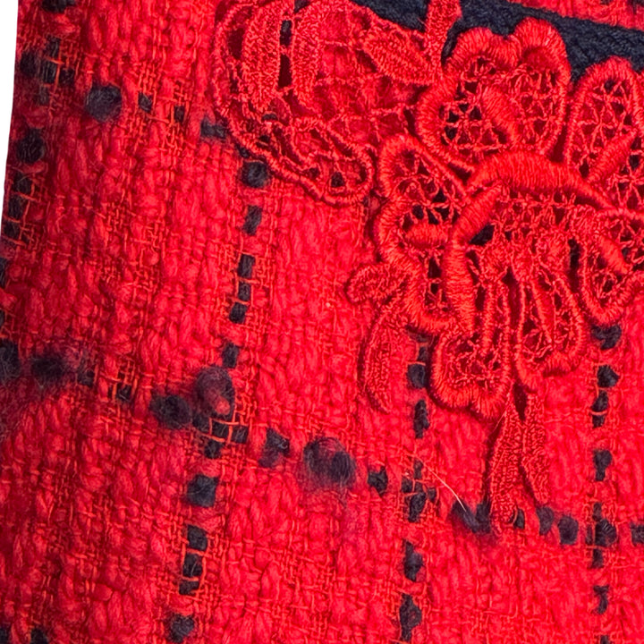 - Plaid blazer with dual front pockets and embroidered floral details on pockets and sleeves. Size label missing, looks like a Medium