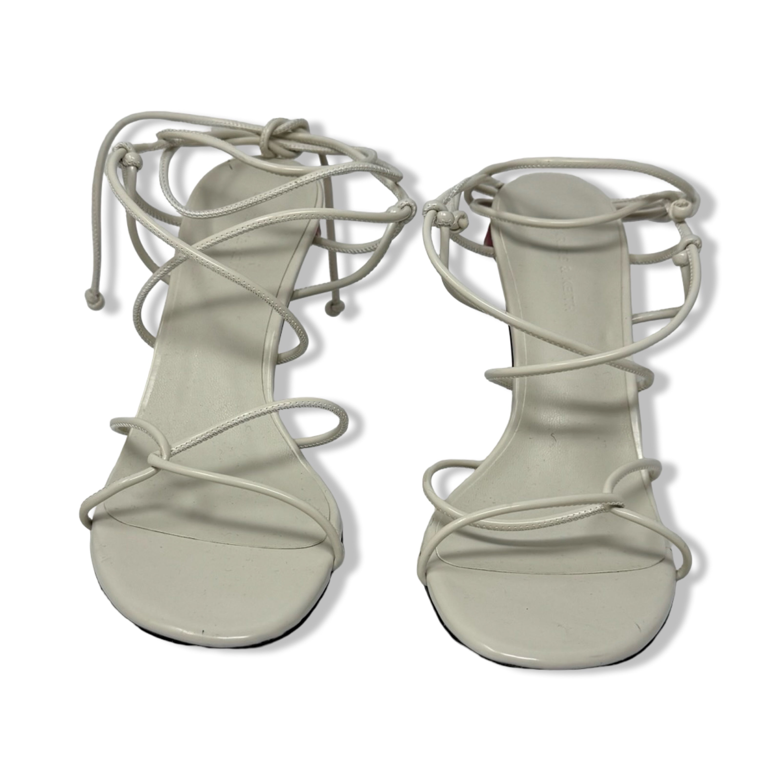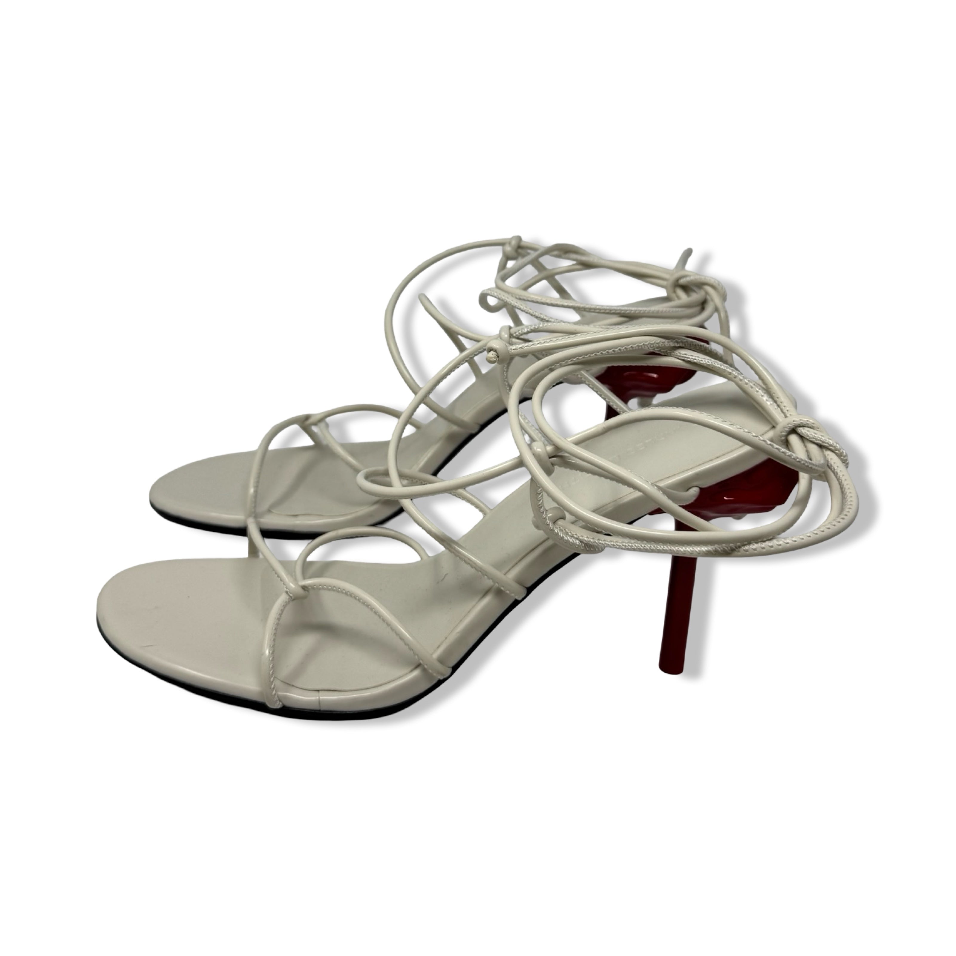 - Strap heels with rose detailed heel. Labeled size EU 39