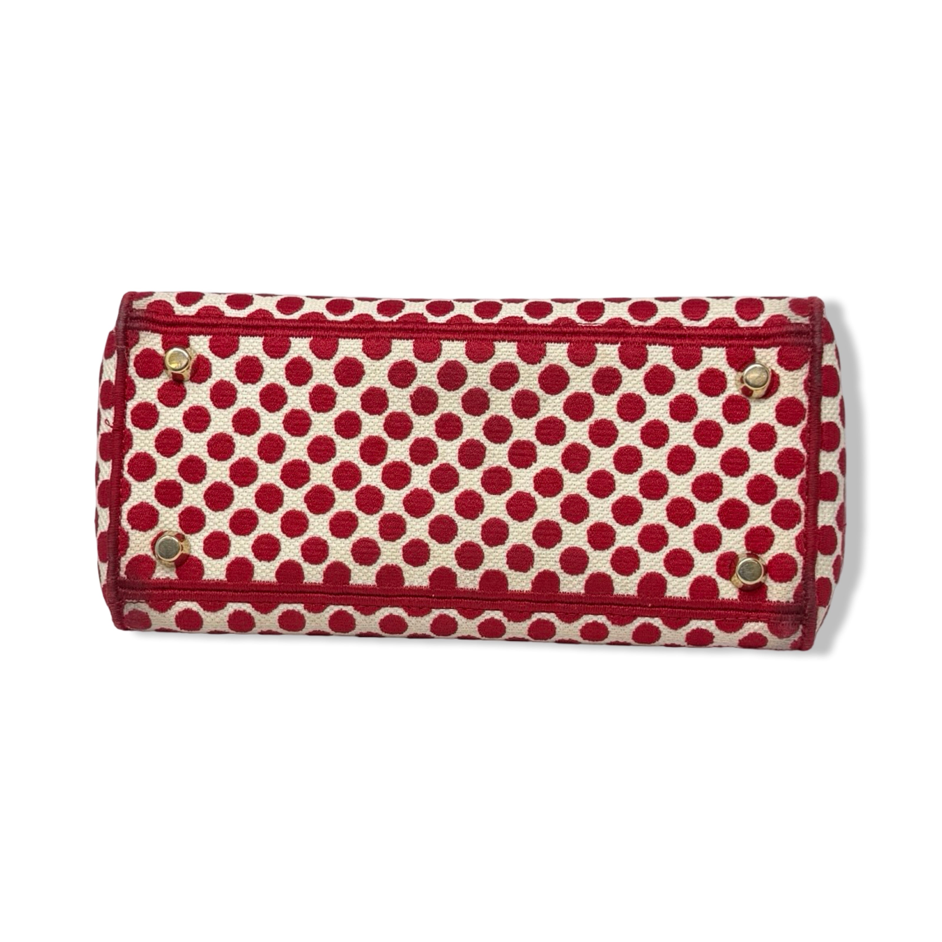 - Handbag with one main inner compartment and two smaller inner pockets, detachable crossbody strap, and charm details on exterior. Designer dust bag included. Signs of wear (pictured)