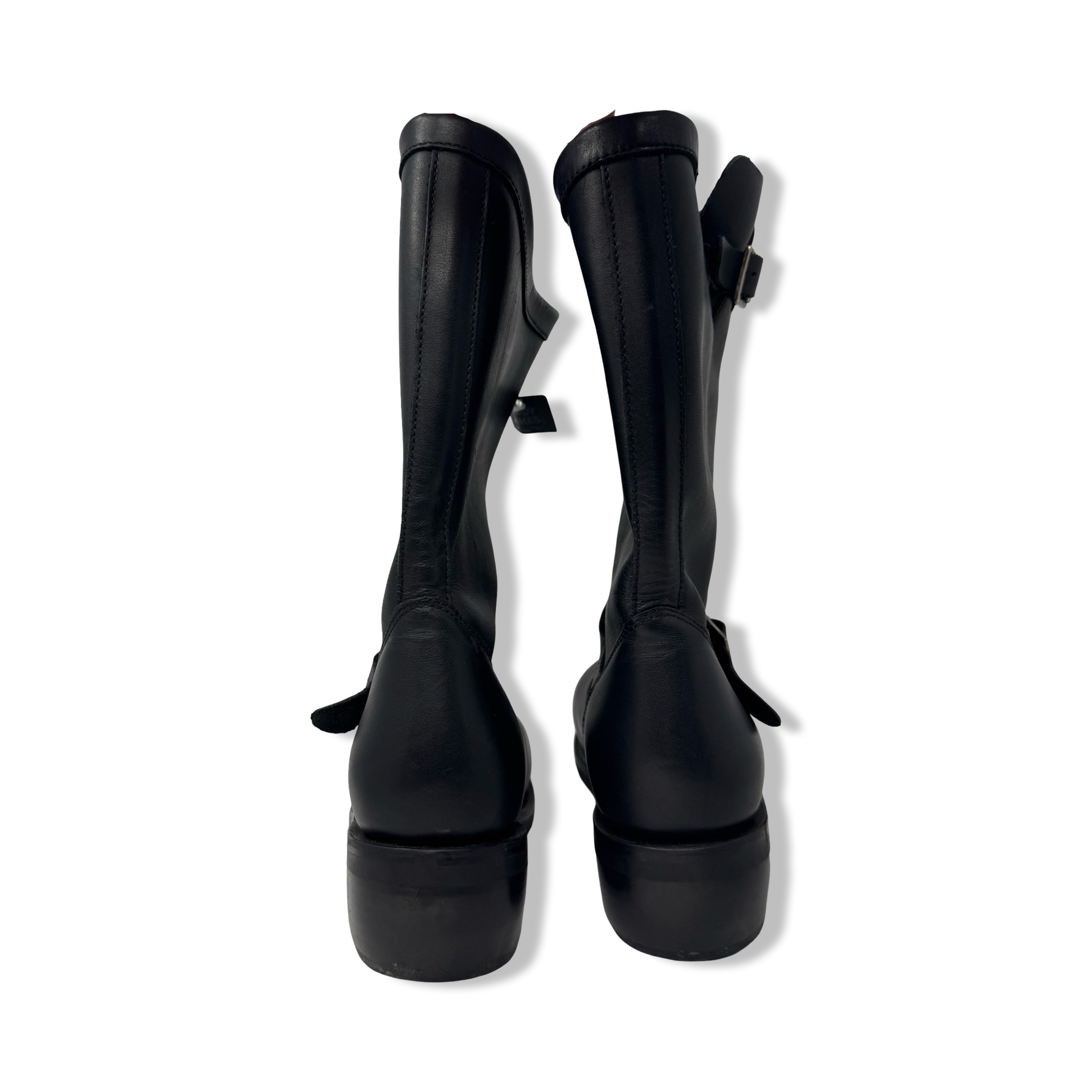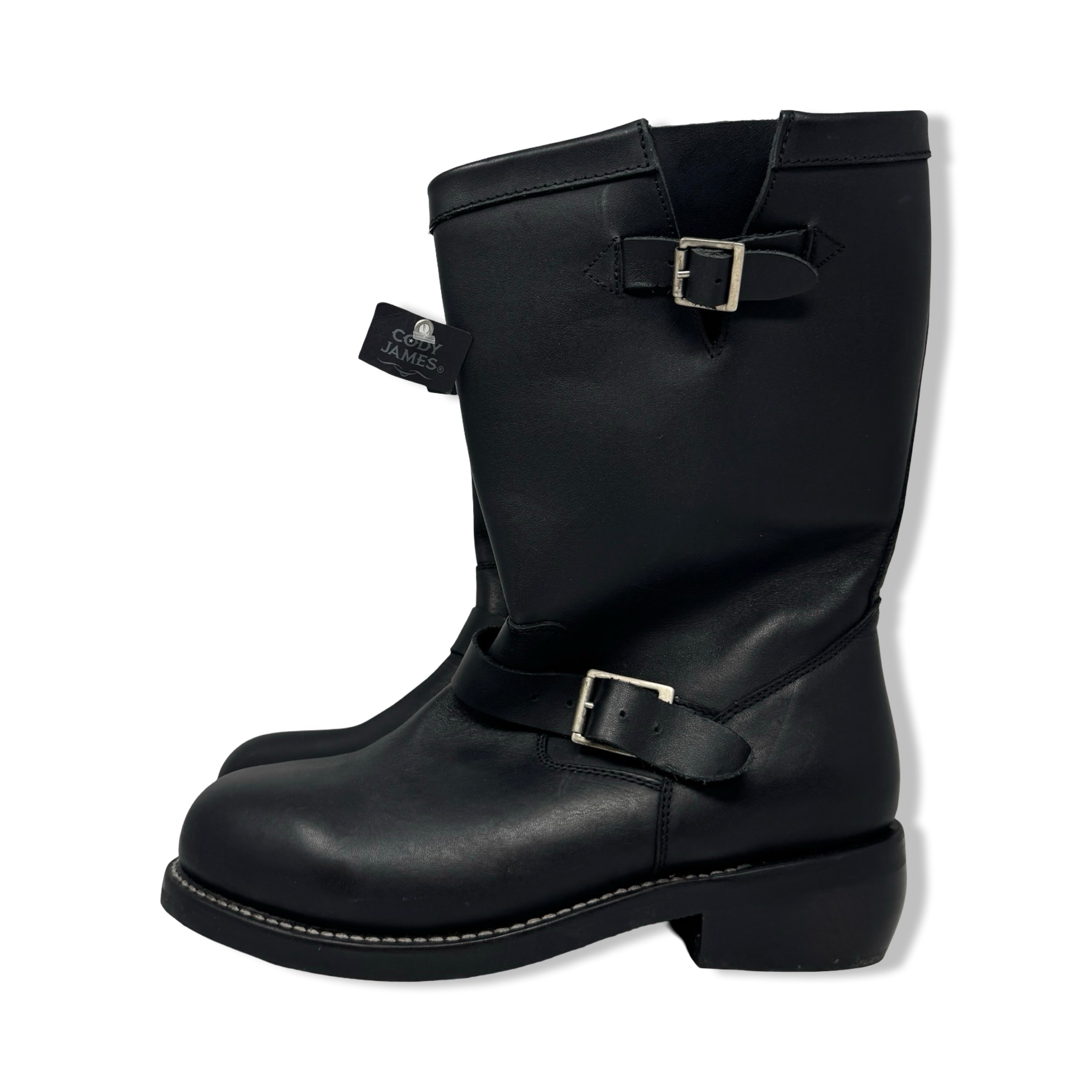 - Slip on leather boots with buckle closure straps and contrast stitching. Made in Mexico. Labeled size 12D