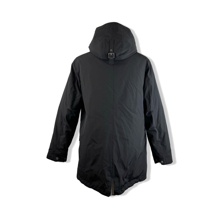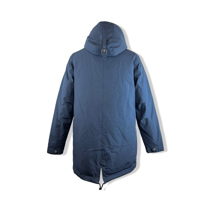 - Zip up jacket with a snap closure, front pockets, hood with adjustable drawcords and back vent.