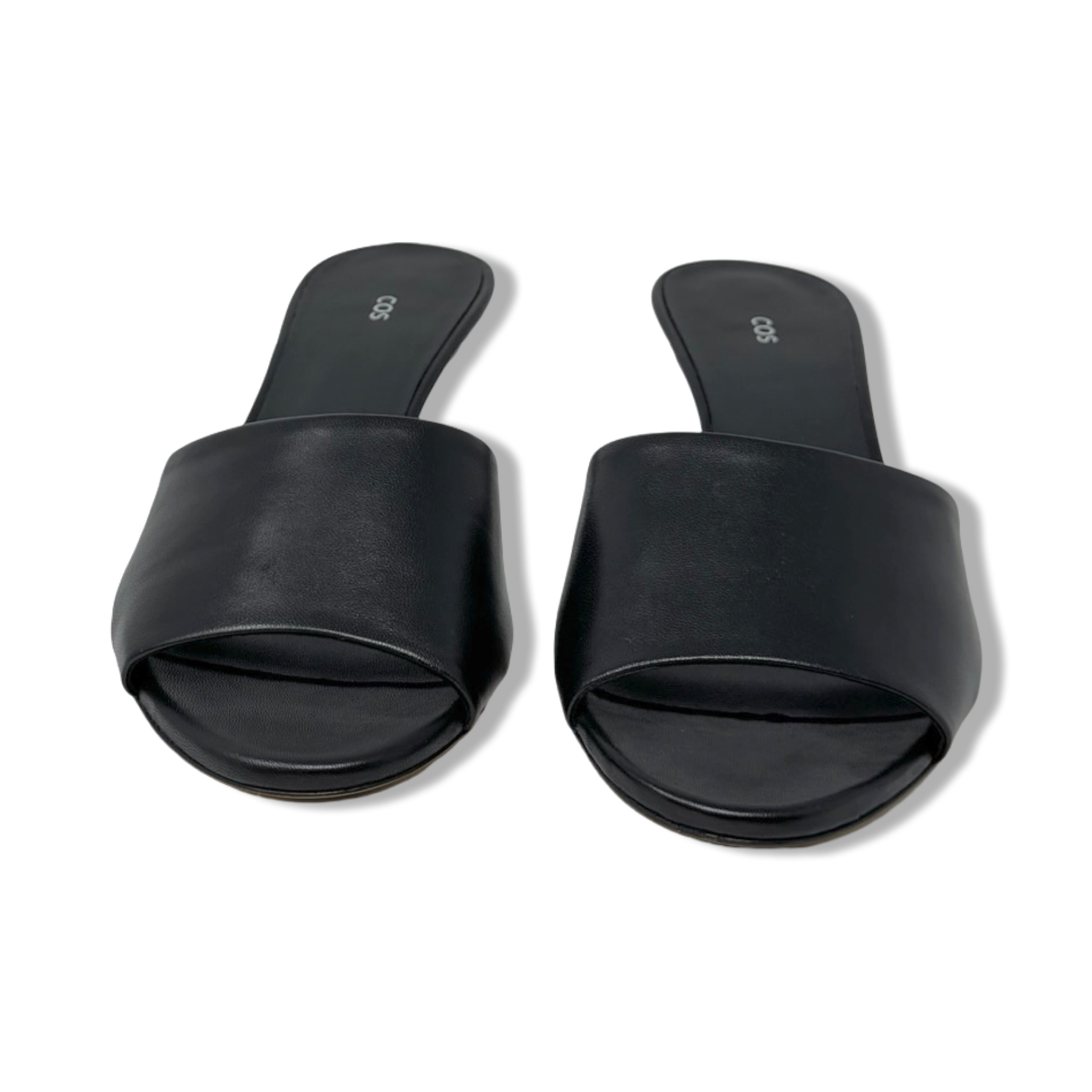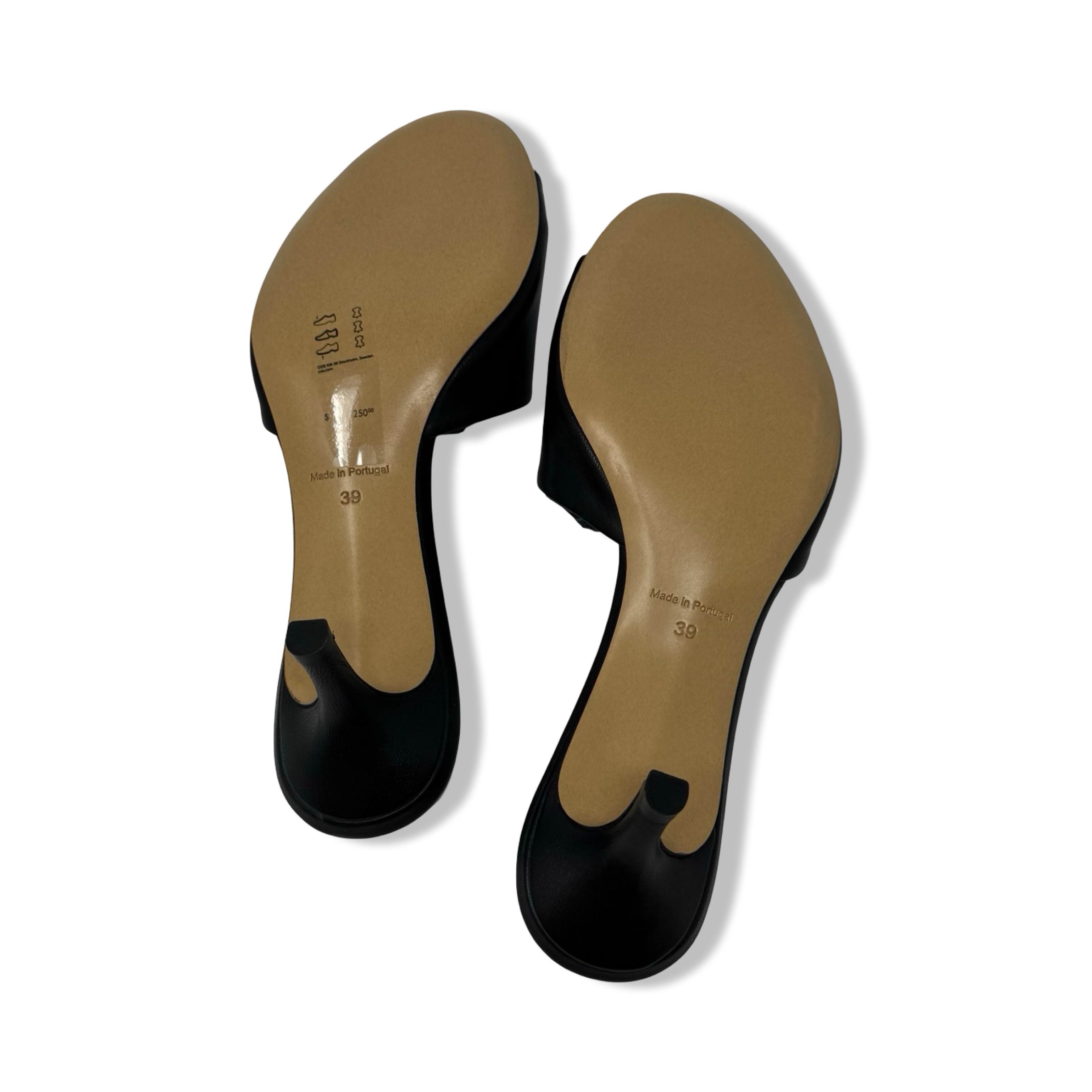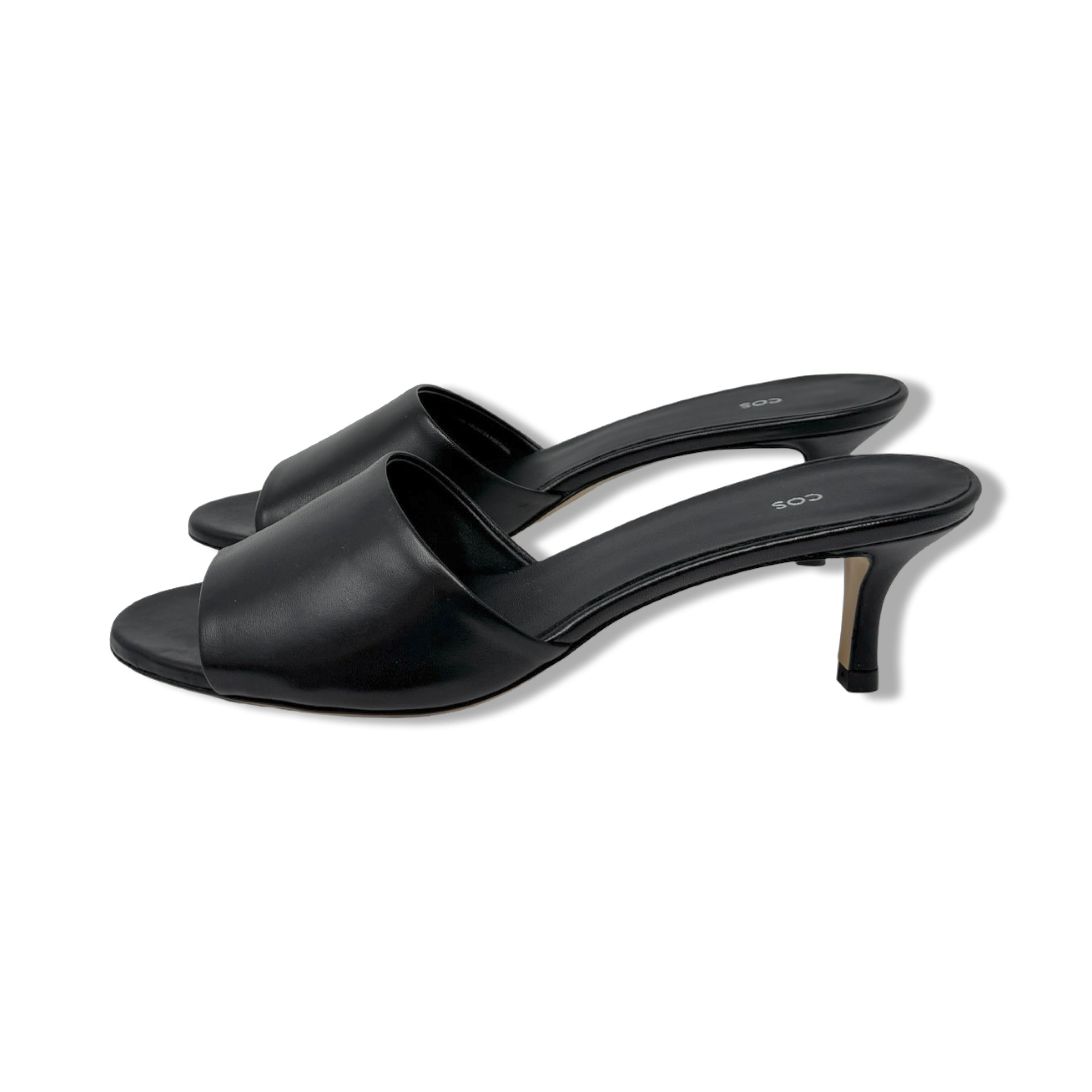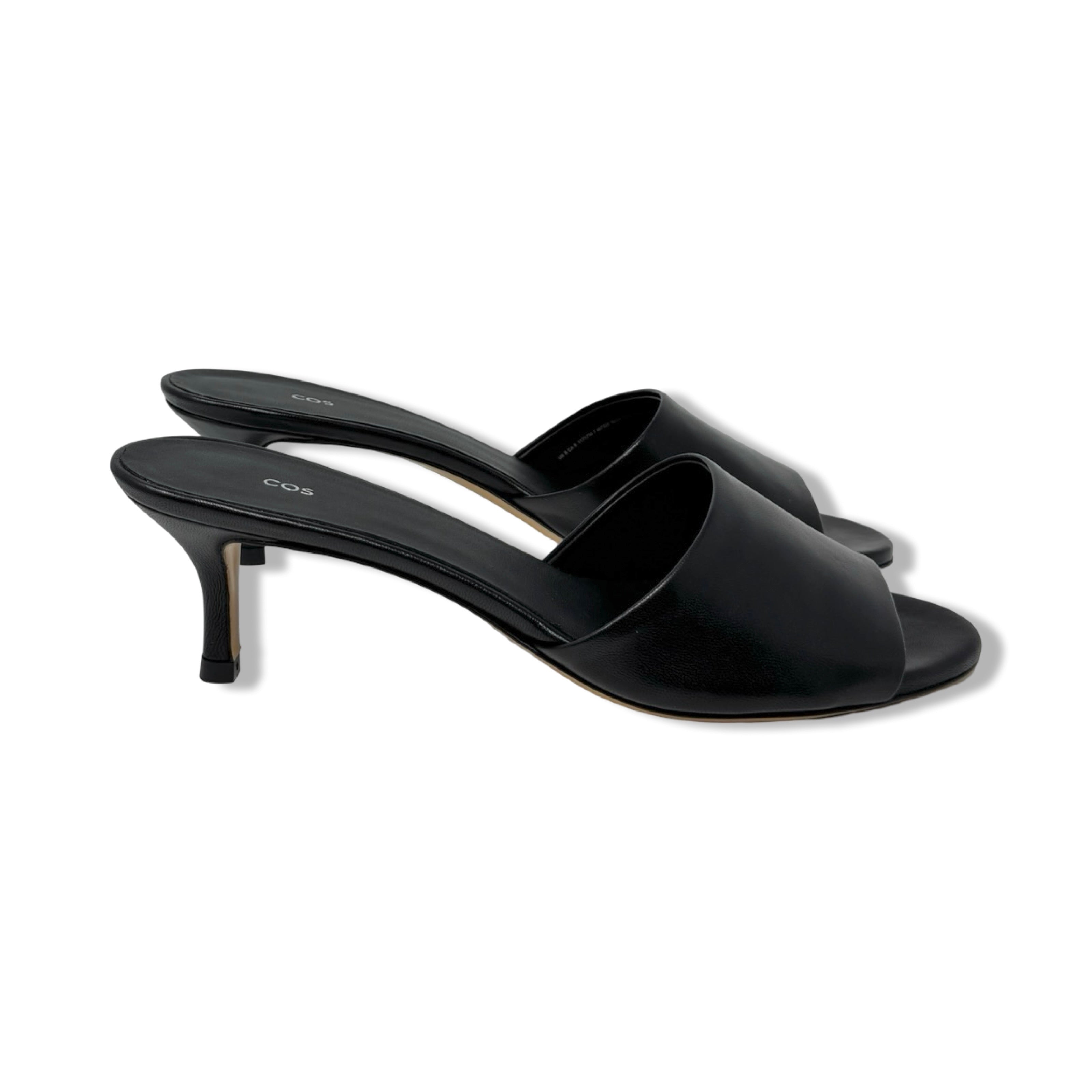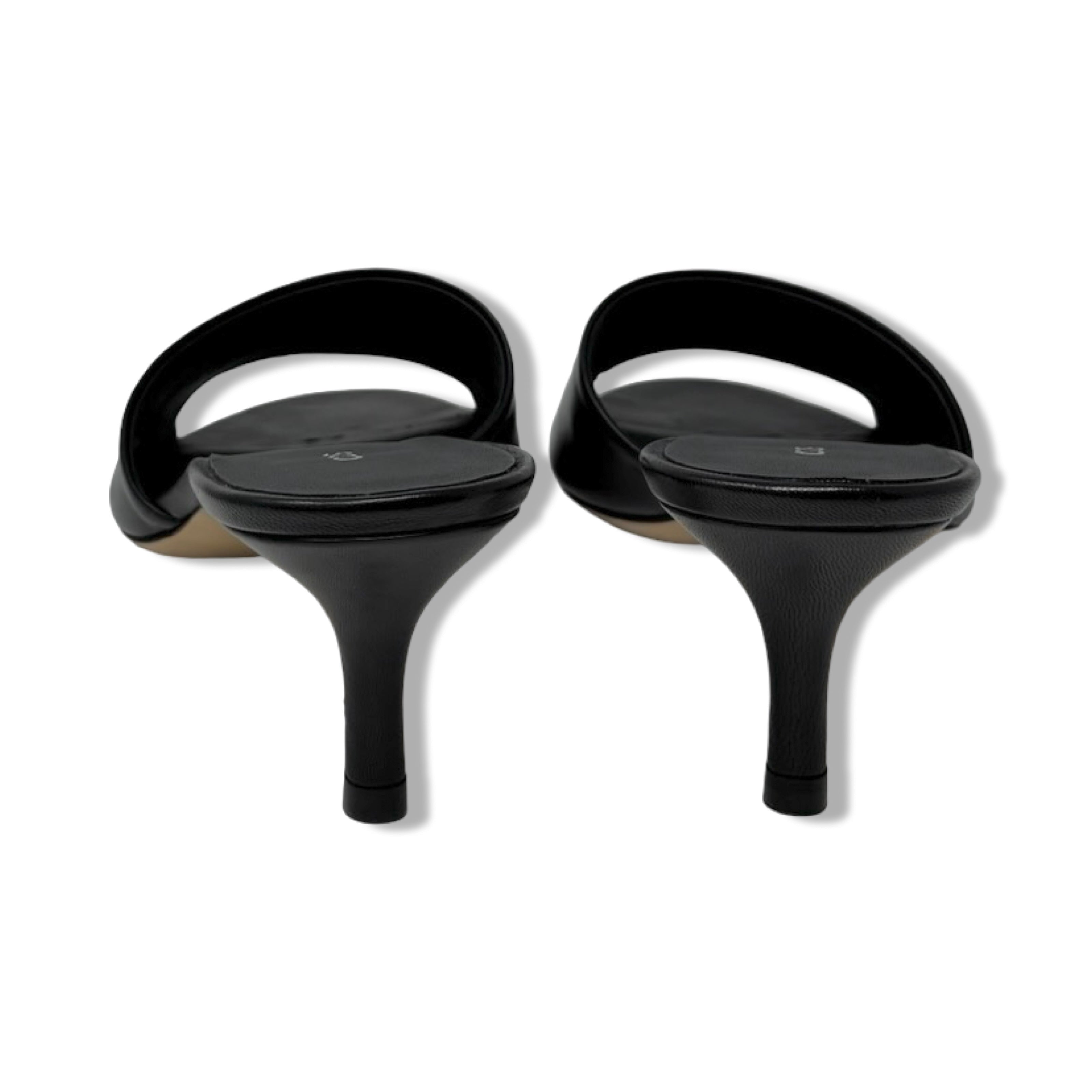 - Slip on mules with round toe, wide vamp, and slim kitten heels