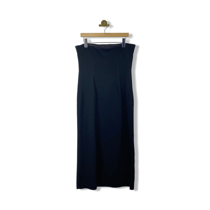 - This midi dress is cut for a close fit to highlight the silhouette. It features a bandeau inspired neckline, minimal detachable adjustable straps and raised darting to the front and back. A modern take on occasion wear.
