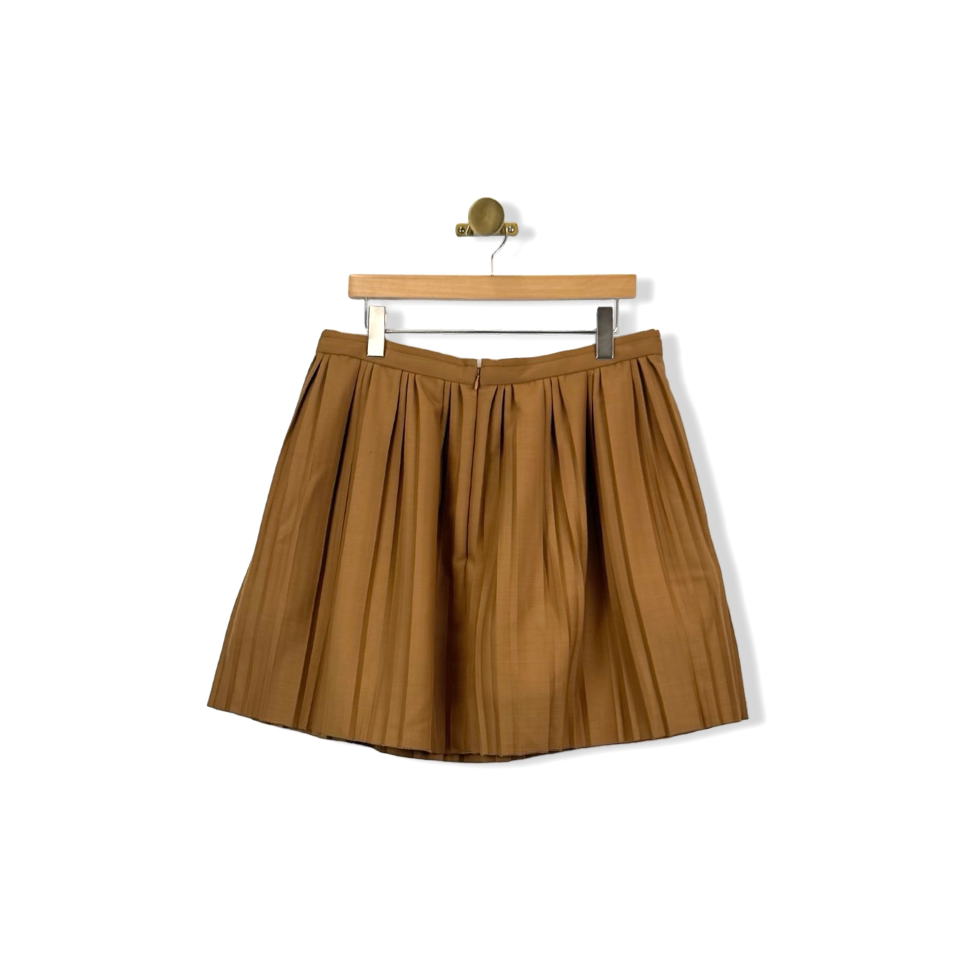 - Made from a traceable wool blend, this light-brown skirt is cut with precise pleats and has an A-line silhouette and concealed side-seam pockets. Complement the mini length with knee-high boots.
