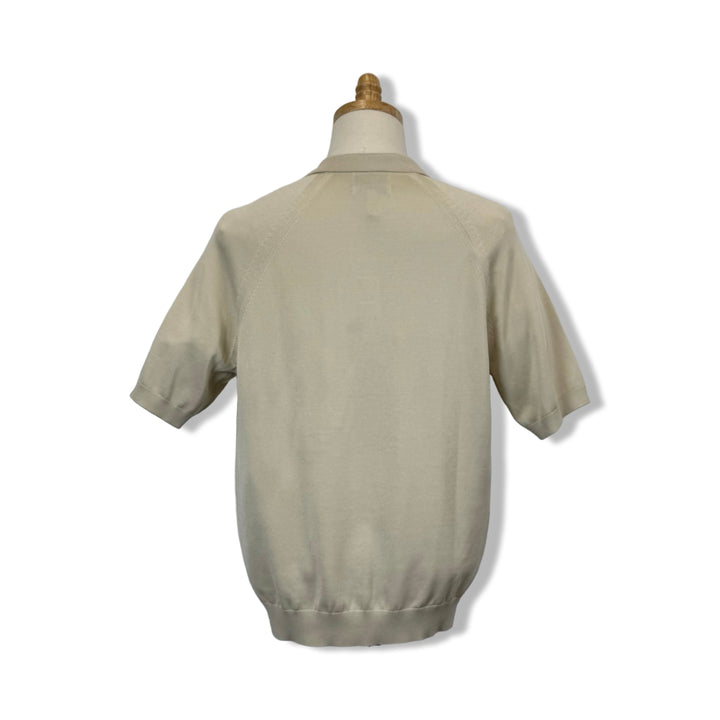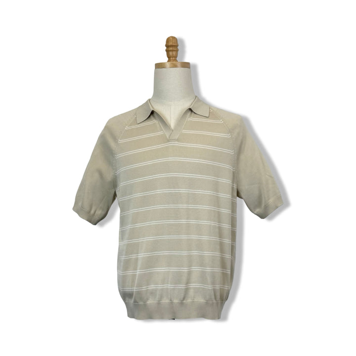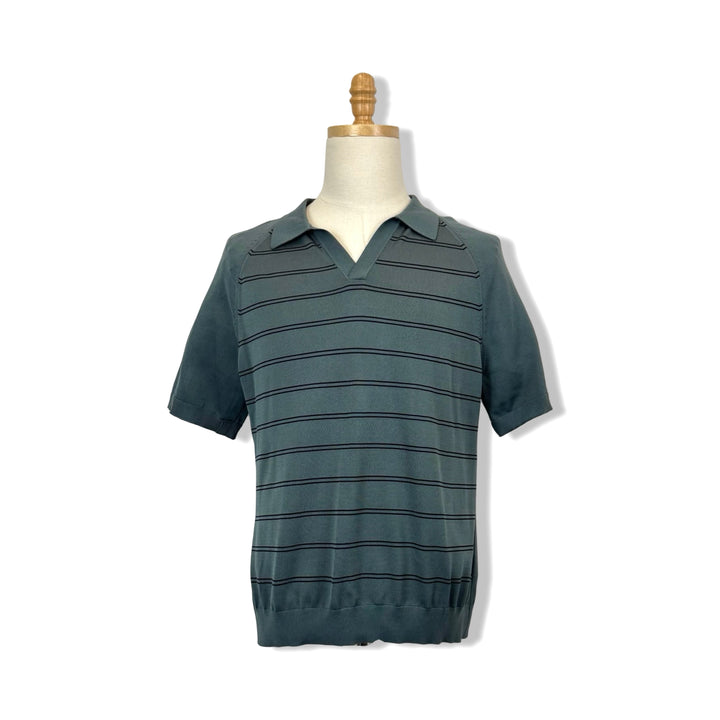 - The COS Relaxed Fit Striped Polo Shirt features a stylish v-neck design, complete with ribbed trim for added texture and appeal.