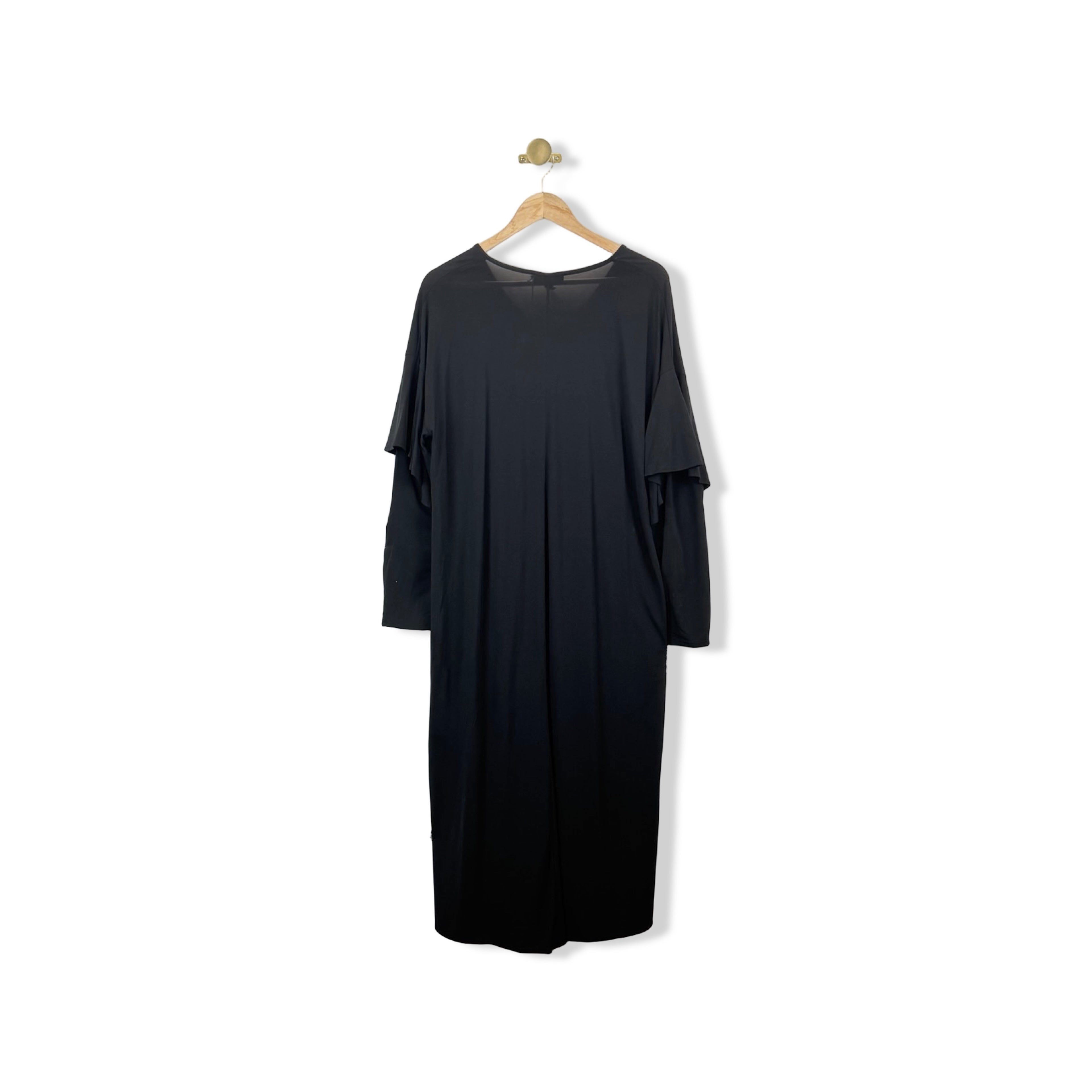 - Designed in jersey fabric for a relaxed fit, this midi dress features an oversized collar with a drawstring detail and ruffles on the long sleeves. It's finished with an elasticated waist for comfort. - Side seam pockets- Loosely pleated