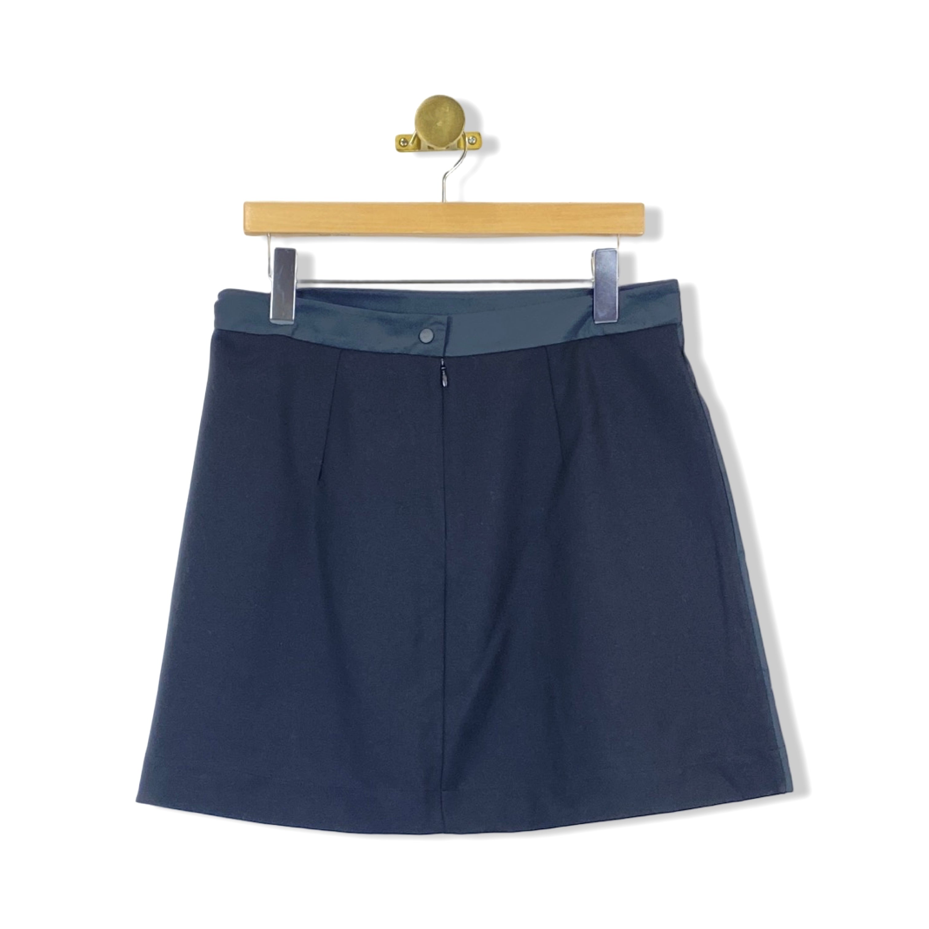 - Crafted from contrasting panels of jersey and technical recycled shell, it's shaped to be fitted at the waist before flaring out to an A-line hem. Snap stud and concealed zip closure.