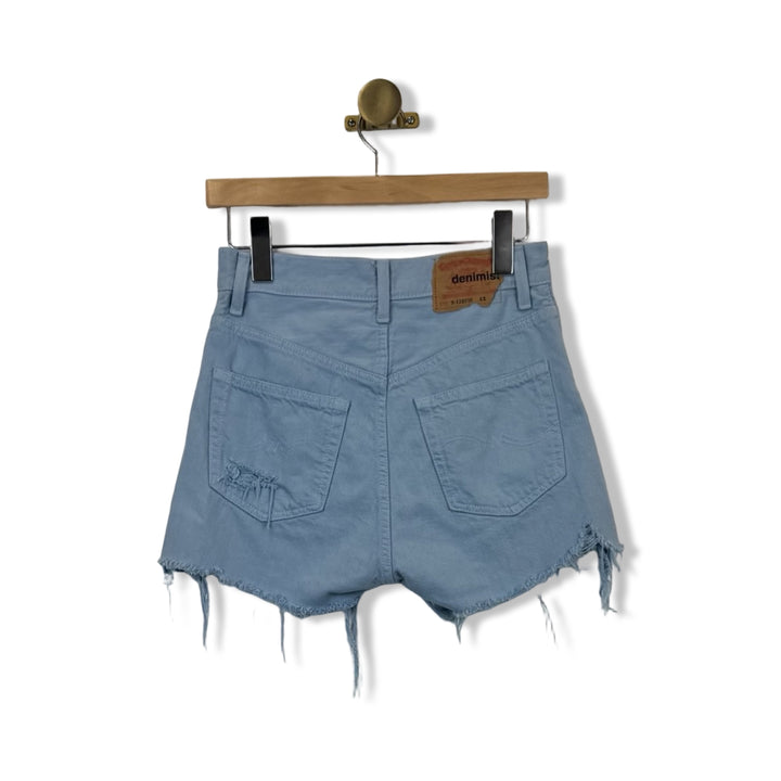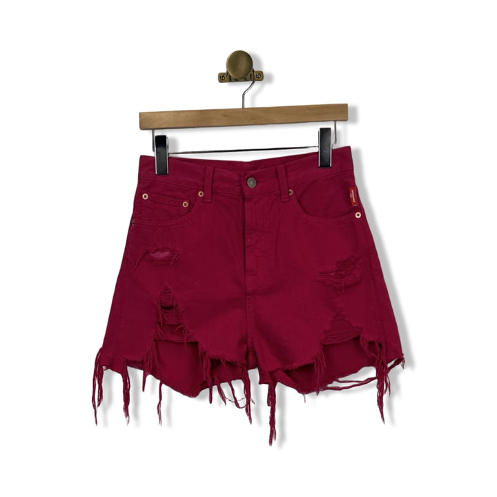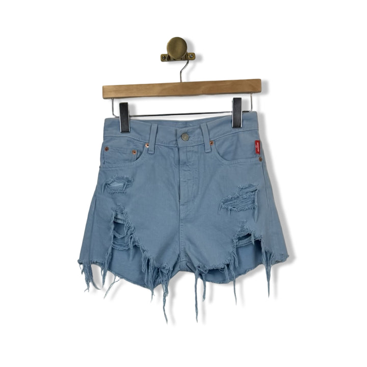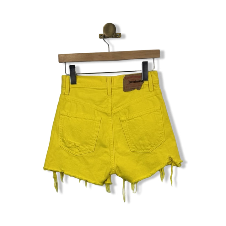 - Get ready to rock some serious style with these high-waisted, frayed denim cutoffs! They're the perfect combination of chic and edgy, and will have you strutting your stuff in no time.