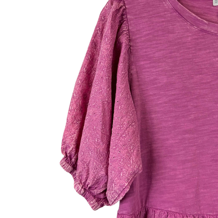 - Short sleeve dress with elastic cuffs and side seam pockets.