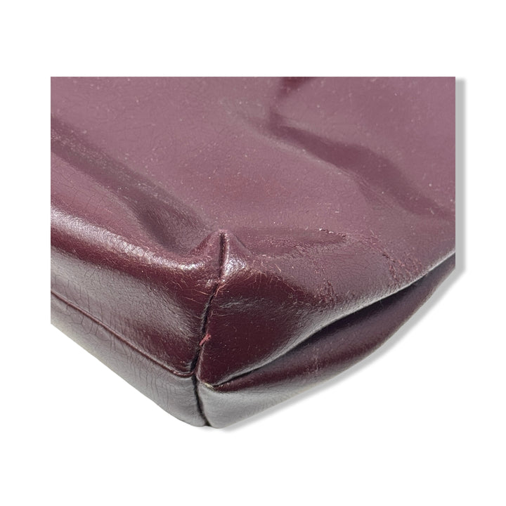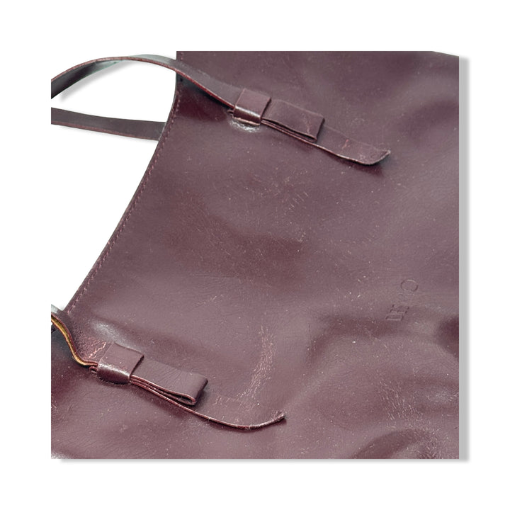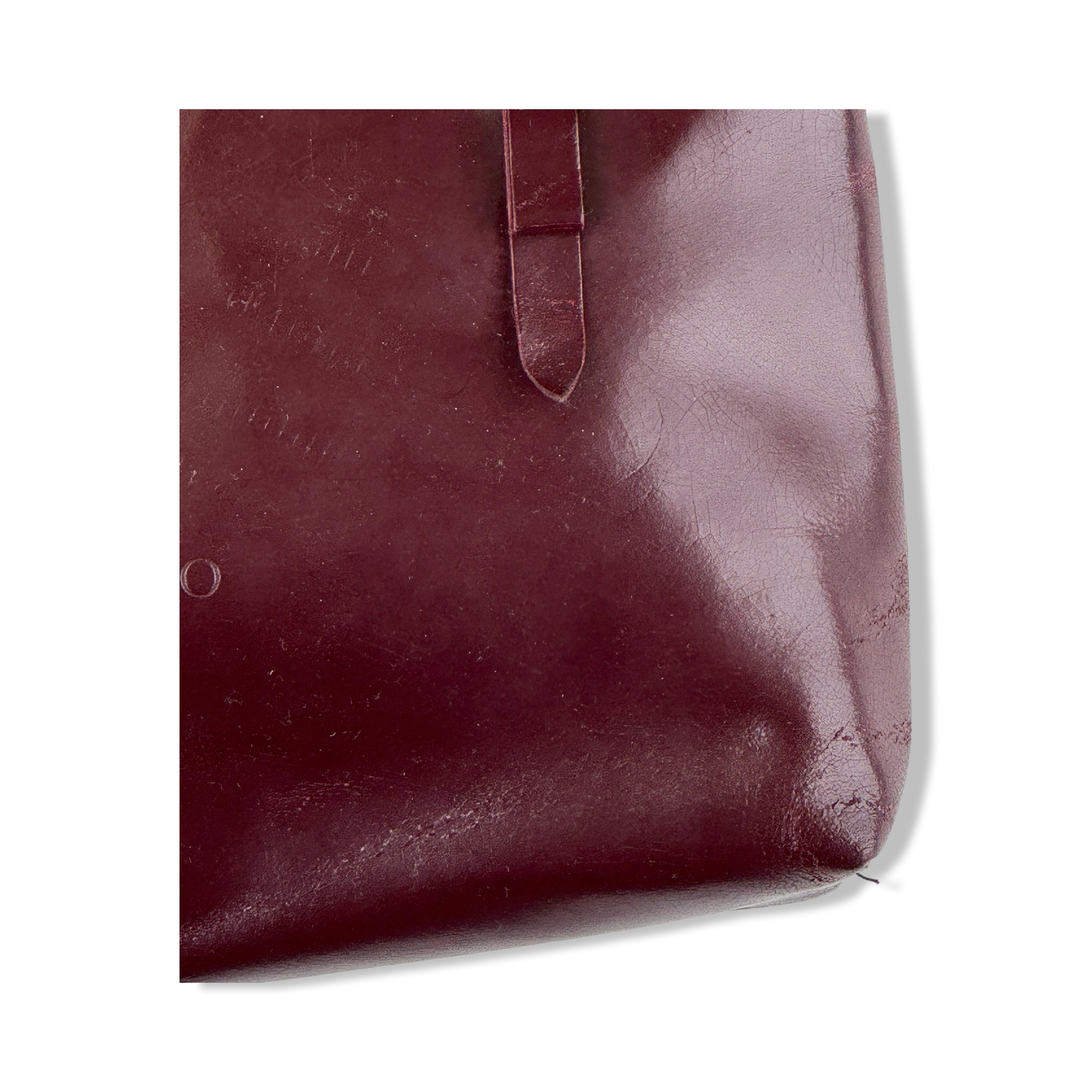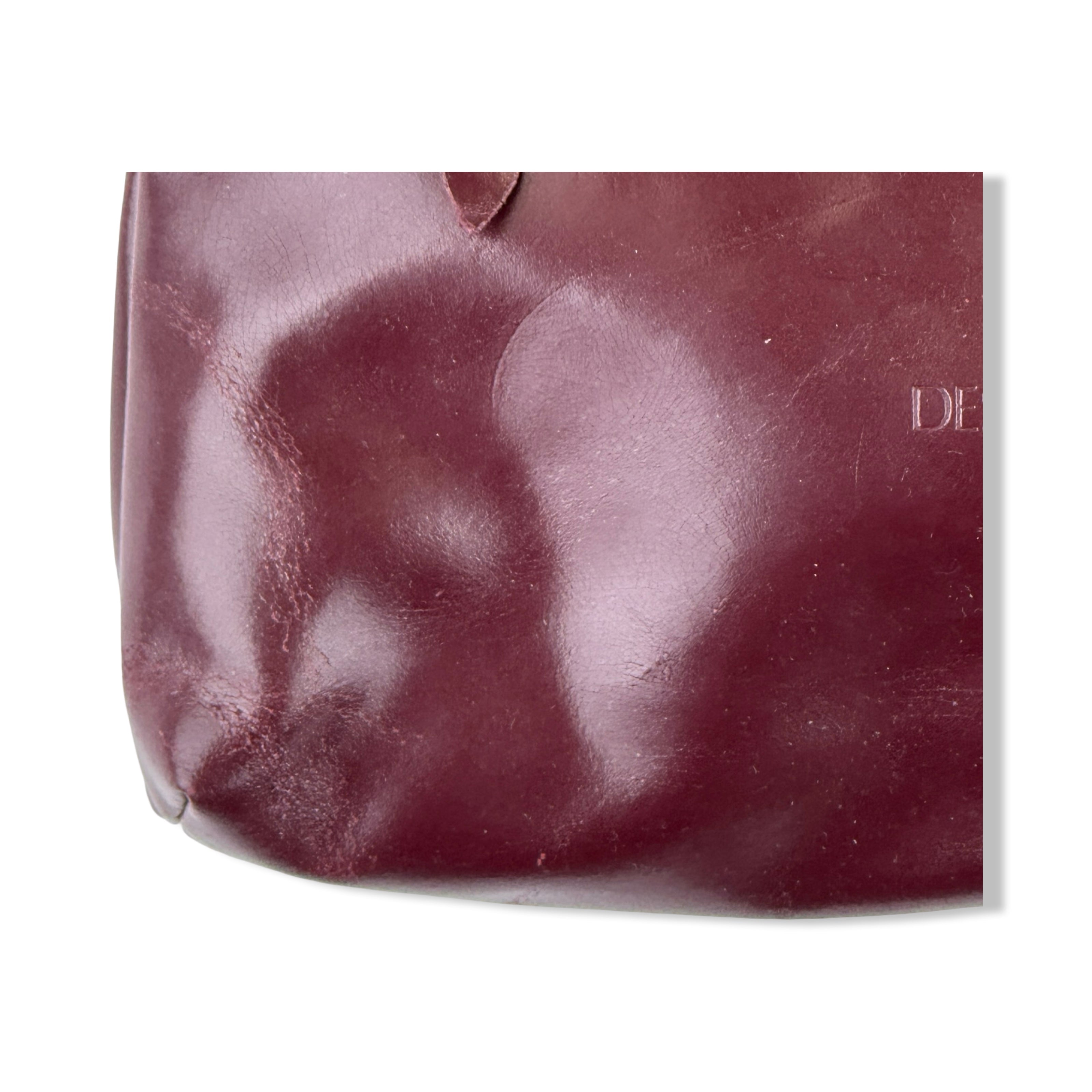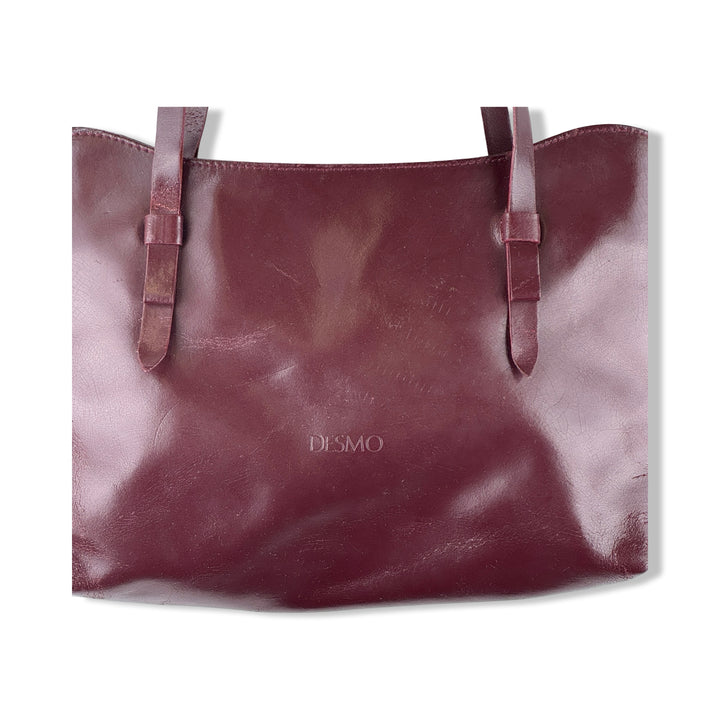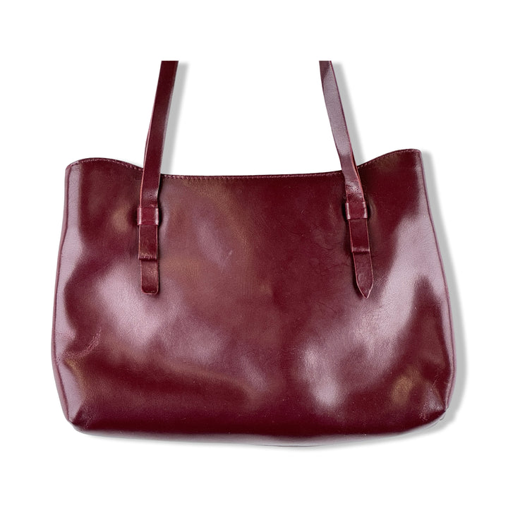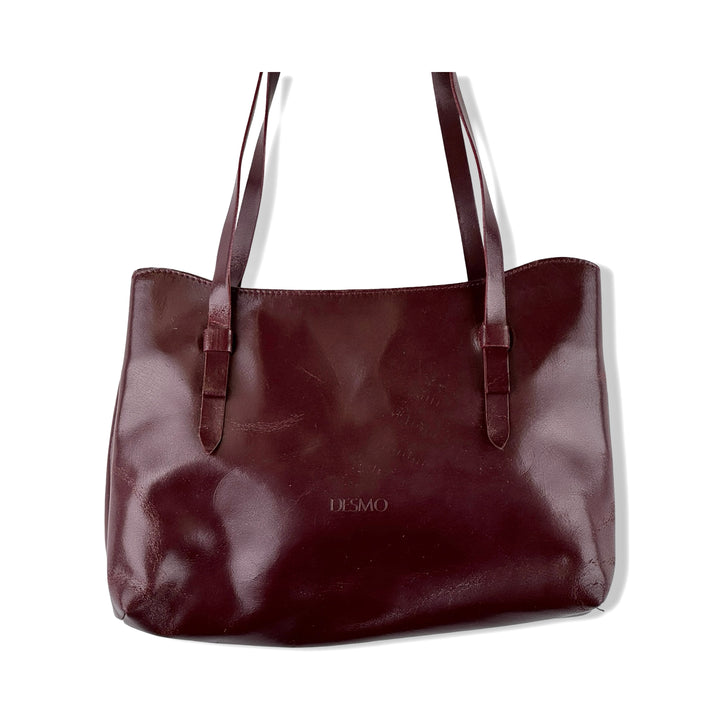 - Handbag with thin straps and interior slip pockets and zip closure. Signs of heavy wear on material.