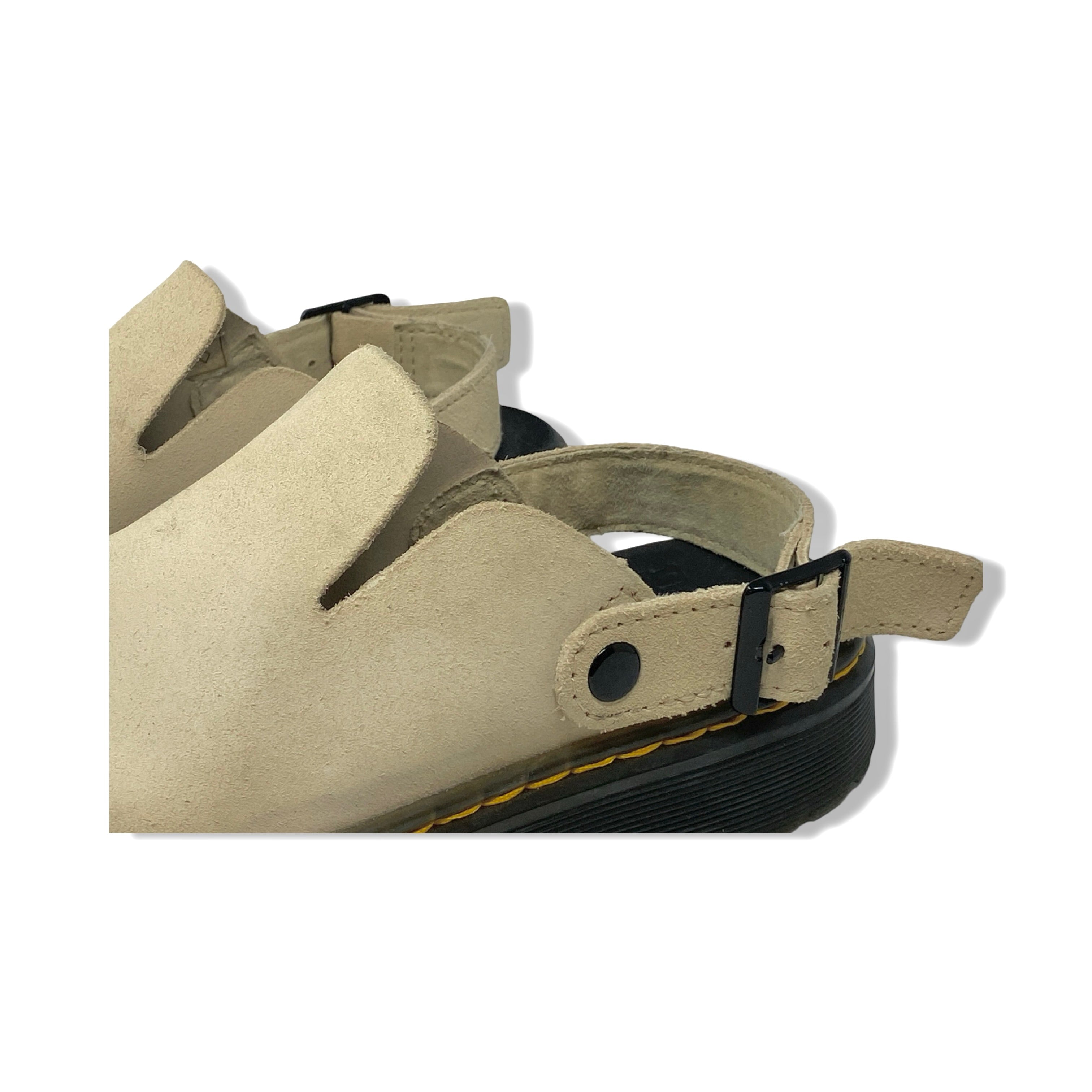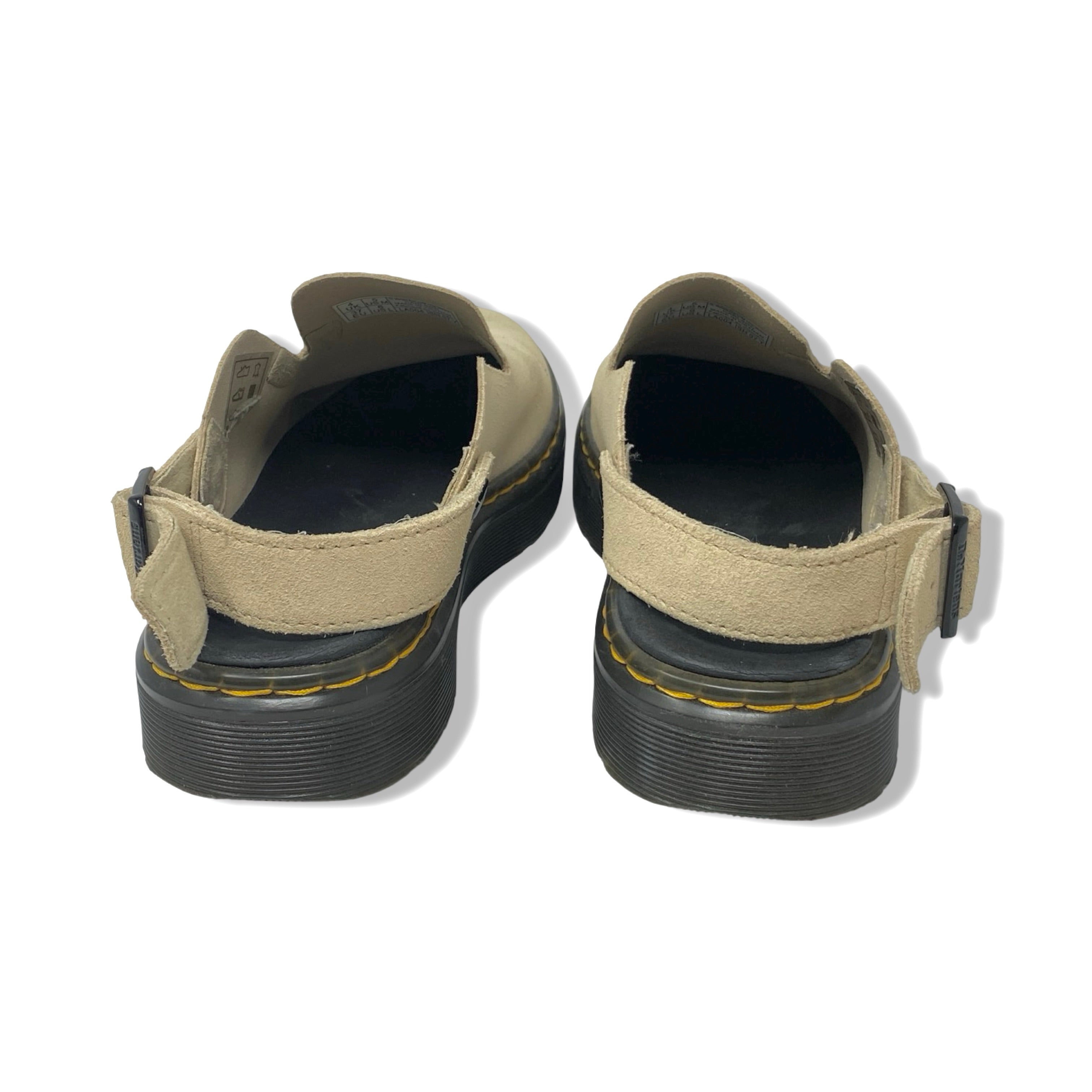 - Slip on mules with moveable straps and contrast stitching