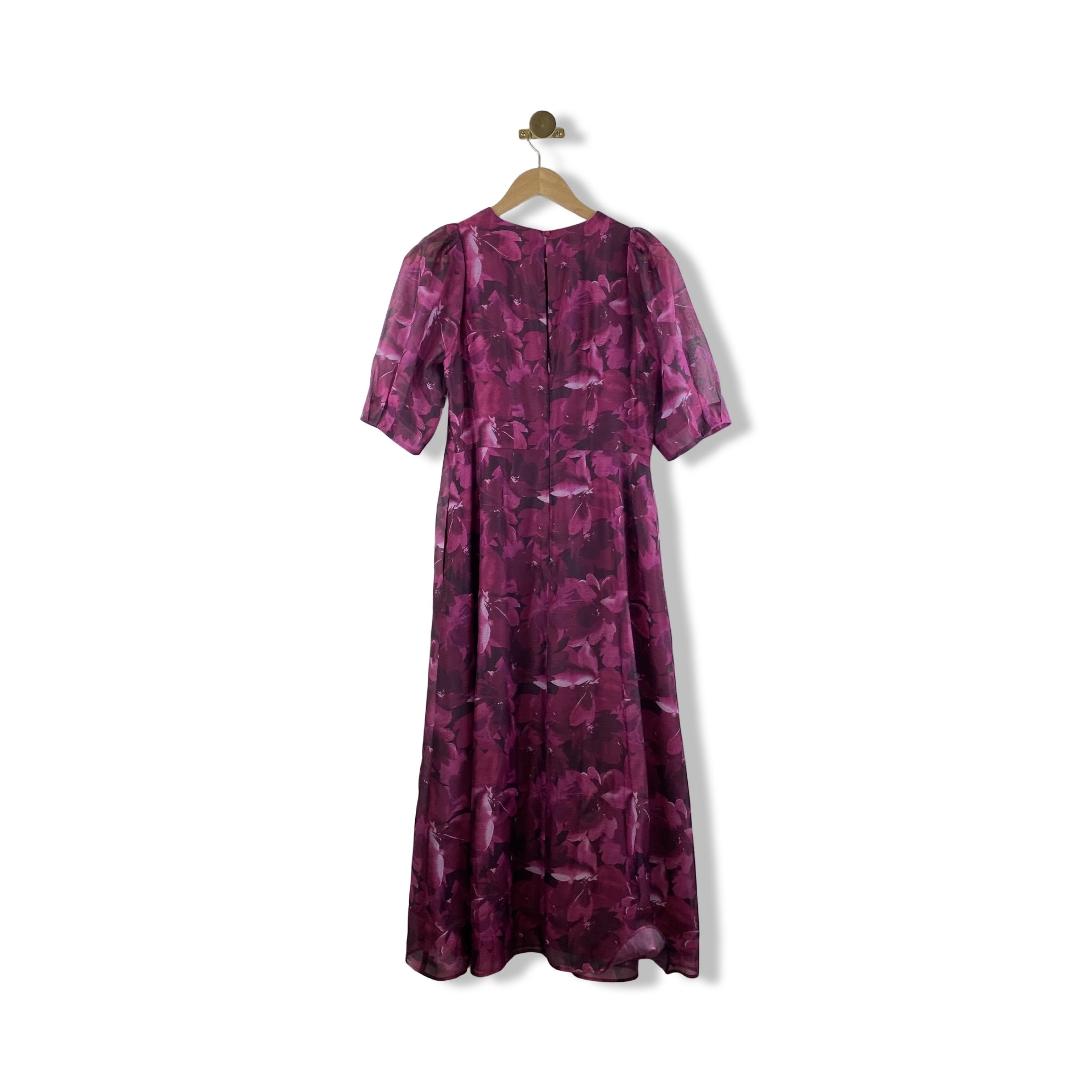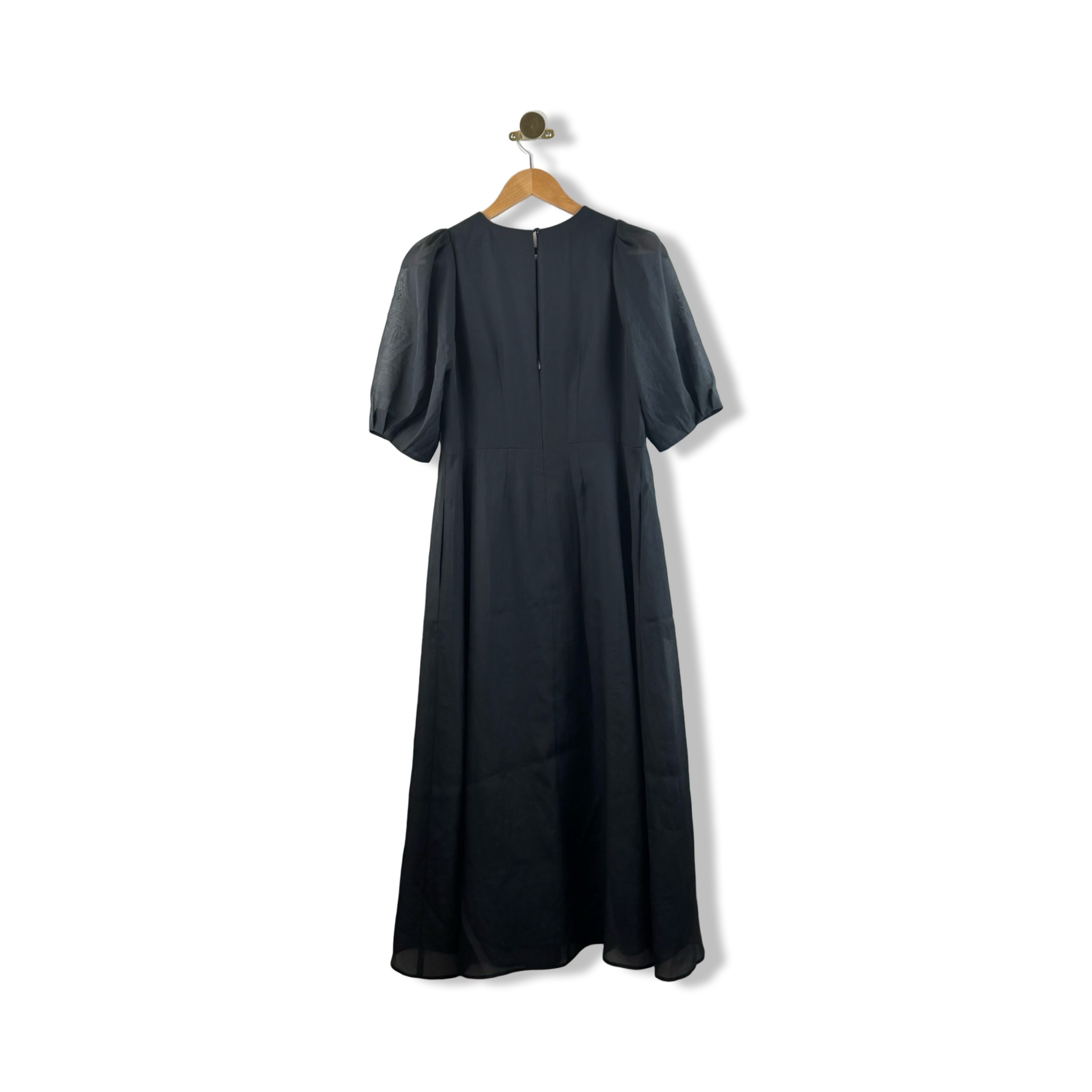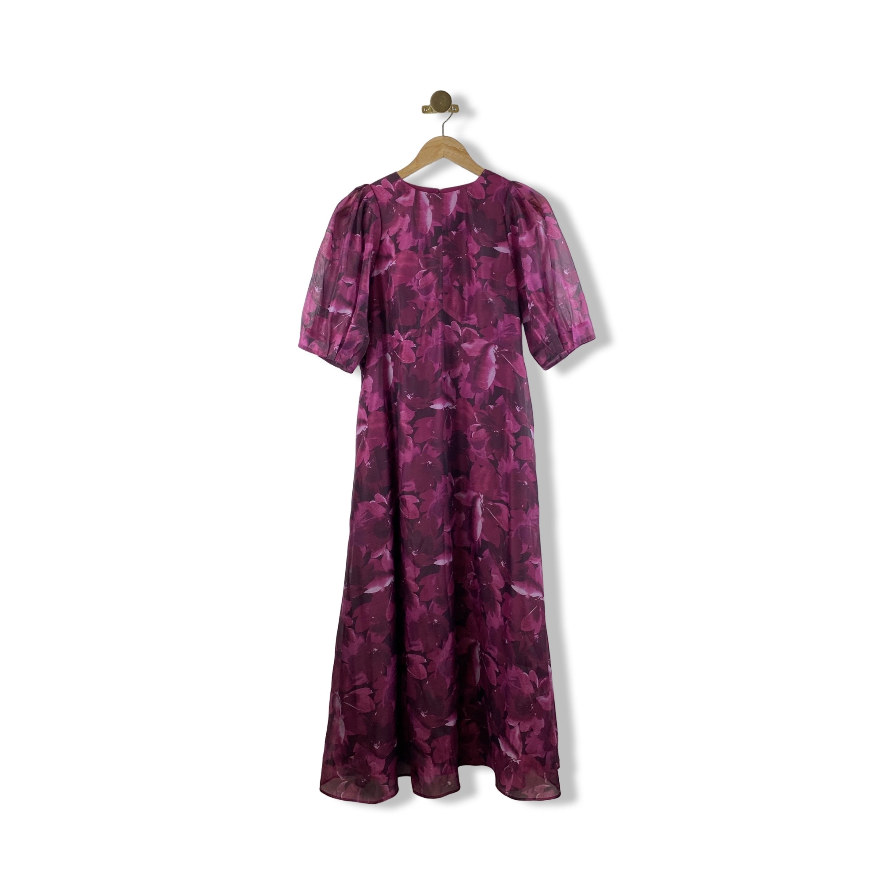 - Puff Sleeve Maxi dress with pockets and back zip. Size label missing; Looks like size 6. Please check measurements.