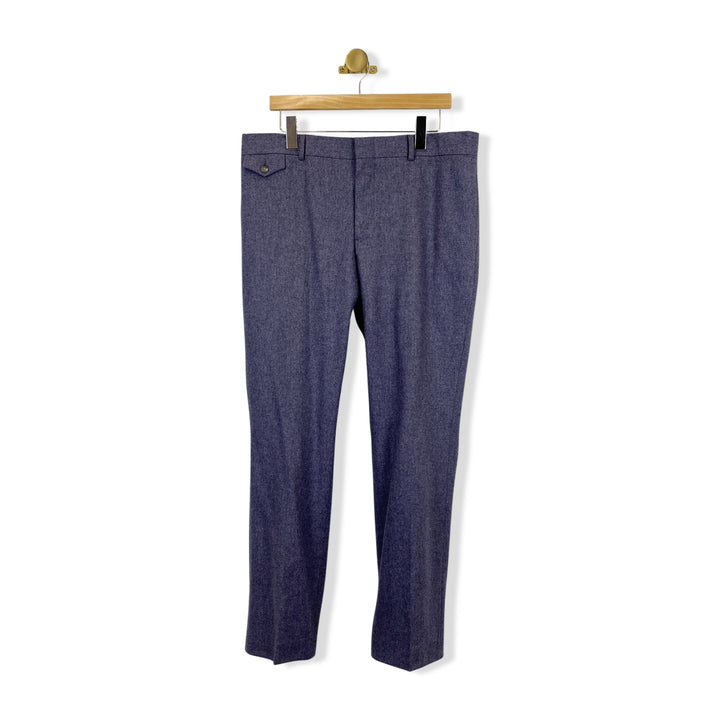 - Pleated pants with hook and bar zip fly. Size label missing, looks like an X-Large.