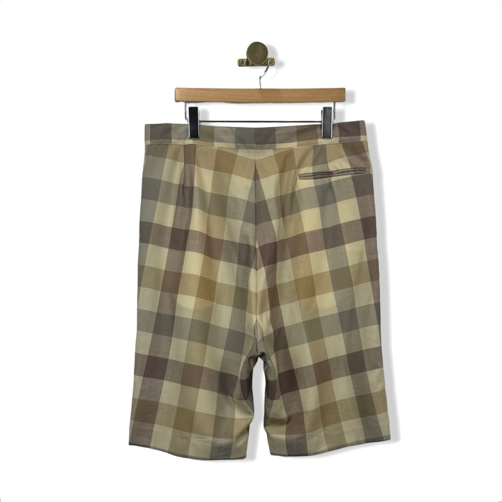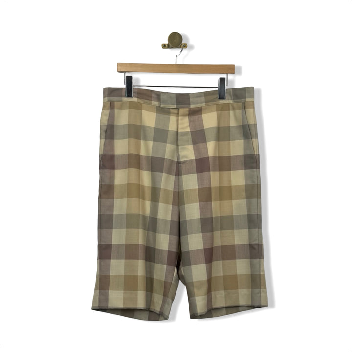 - Featuring side seam pockets and a zip fly with hook-and-bar closure, these shorts will have you looking sharp and staying comfortable. Add some playful plaid to your summer look. Missing size label, looks like a size 36. Please check measurements for reference