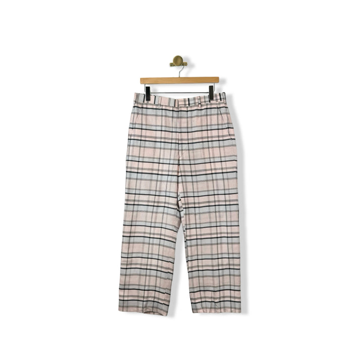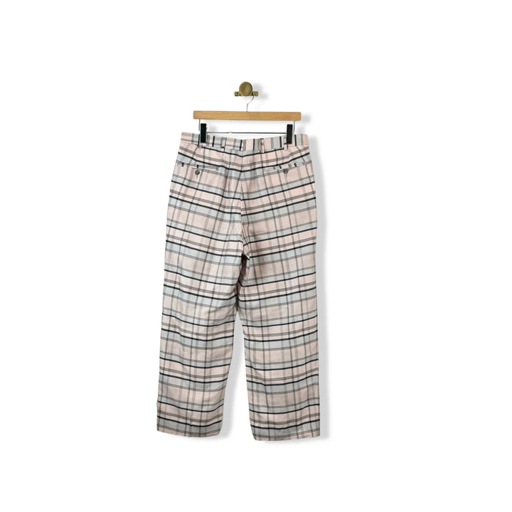 - Plaid pants with dual front and back pockets. Hook bar zip fly closure. Size label missing, looks like a Medium
