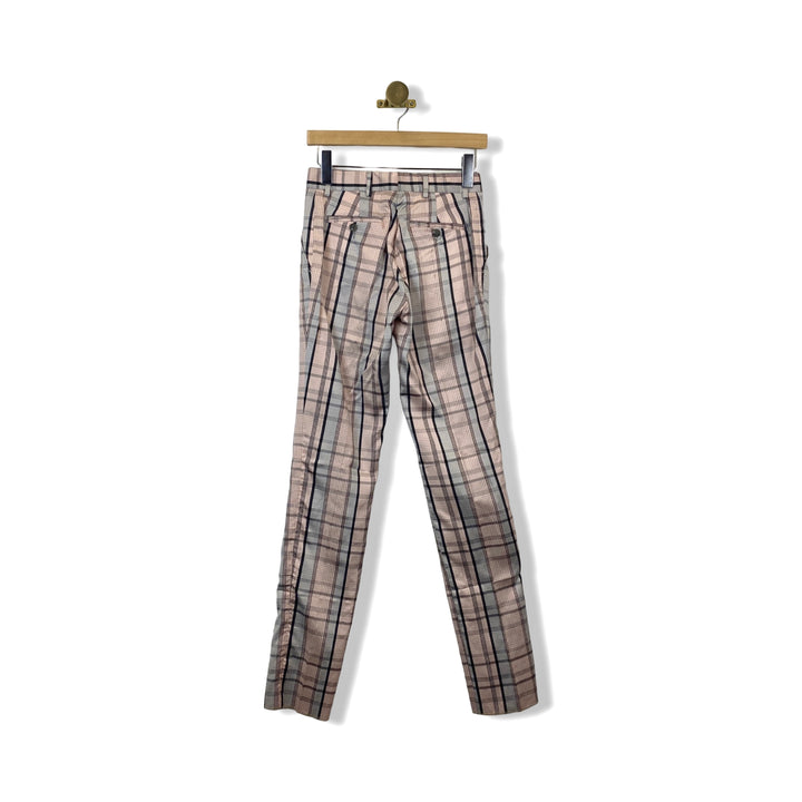- Plaid pants with front/back pockets and zip fly with hook-and-bar closure. Missing size label, looks like a size