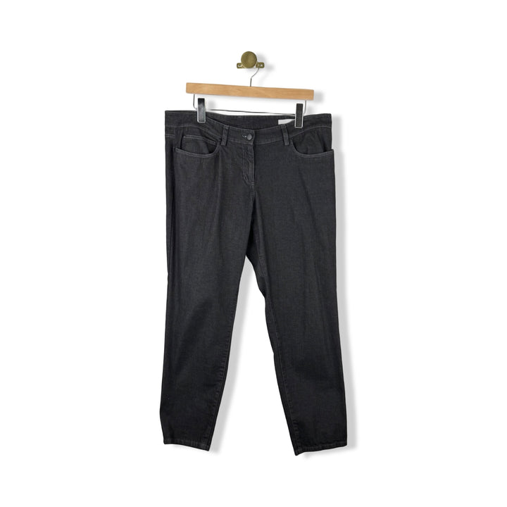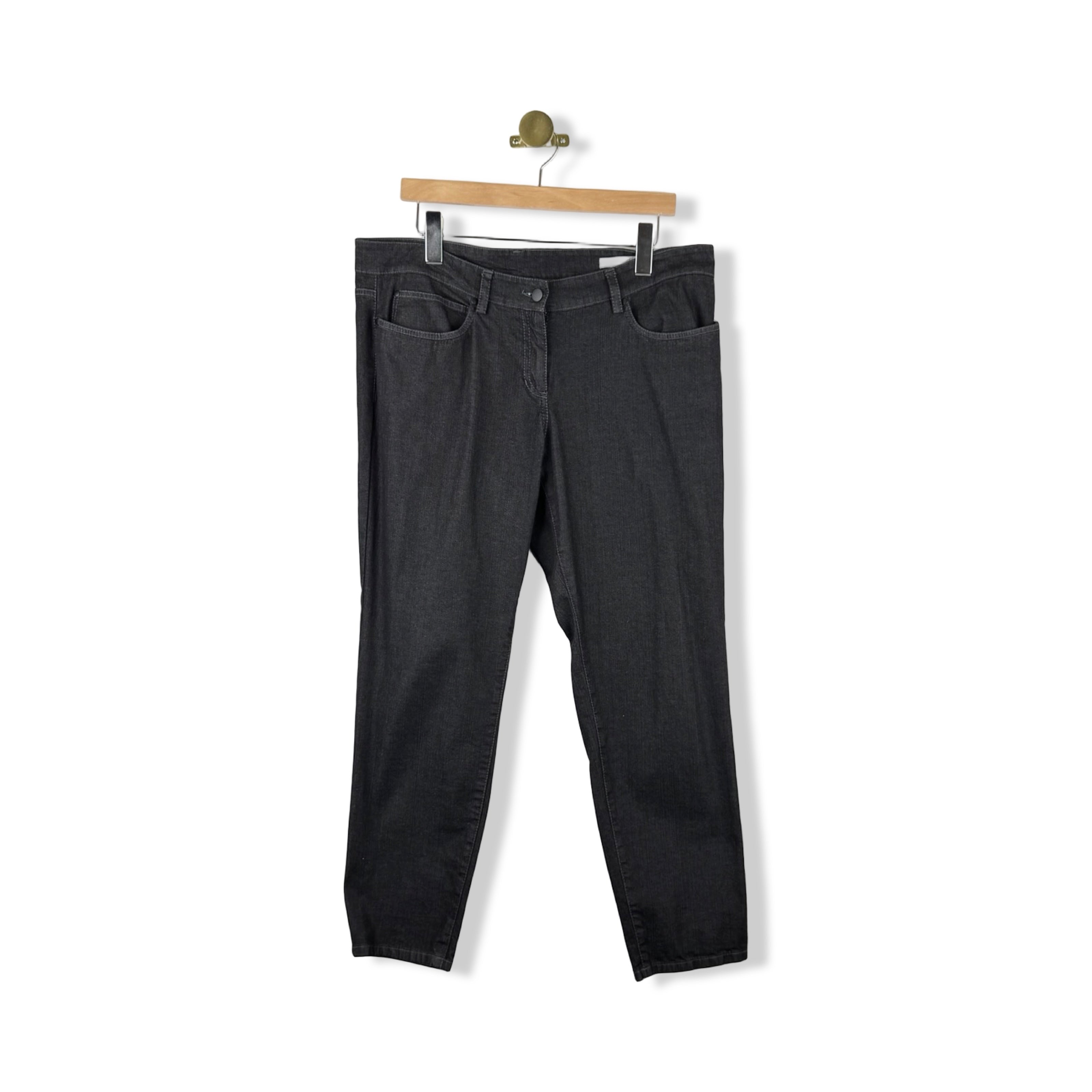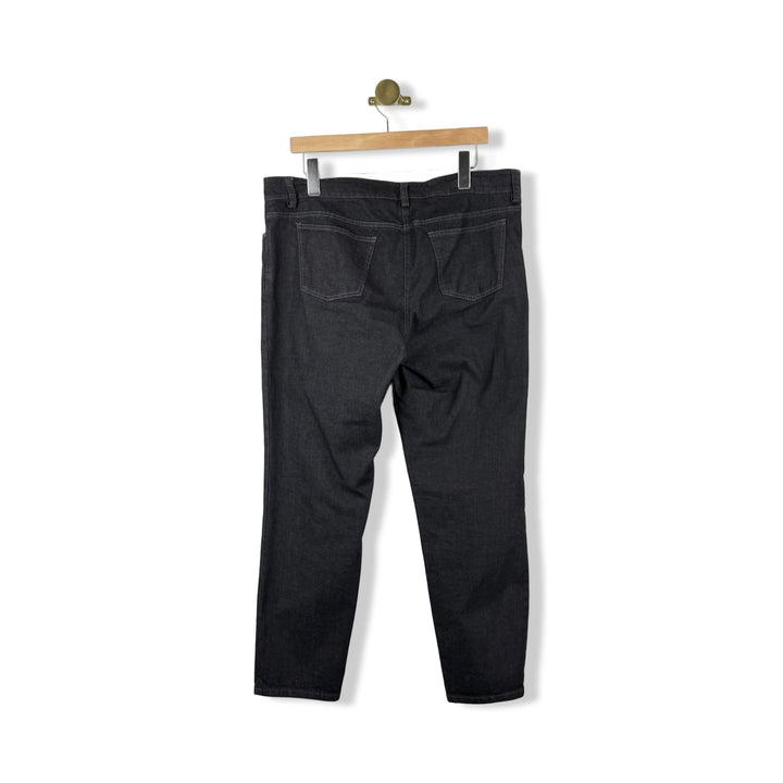 - Five pocket style tapered jeans with button zip fly. Size label missing, looks like an X-Large