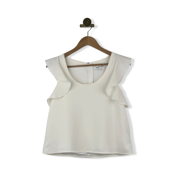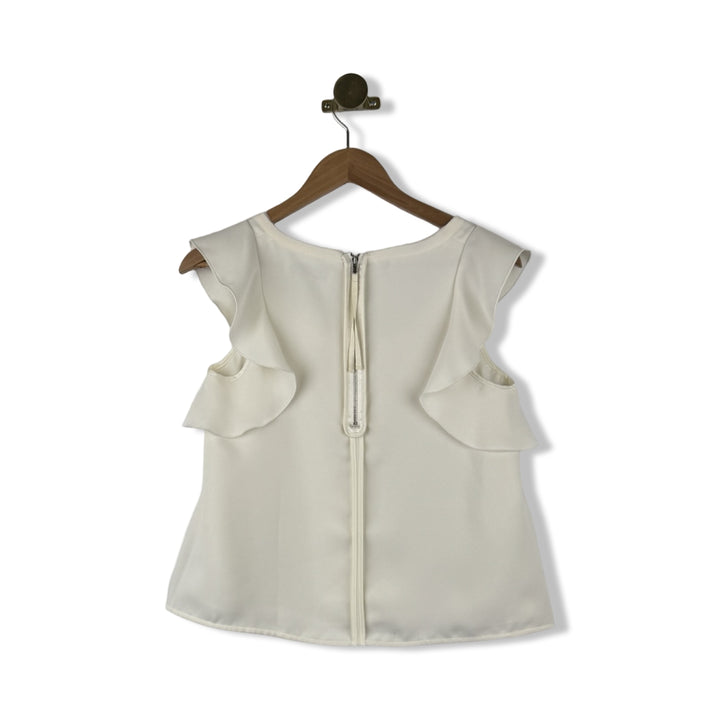 - Blouse with ruffle sleeves and back zip closure. Signs of wear (pictured)