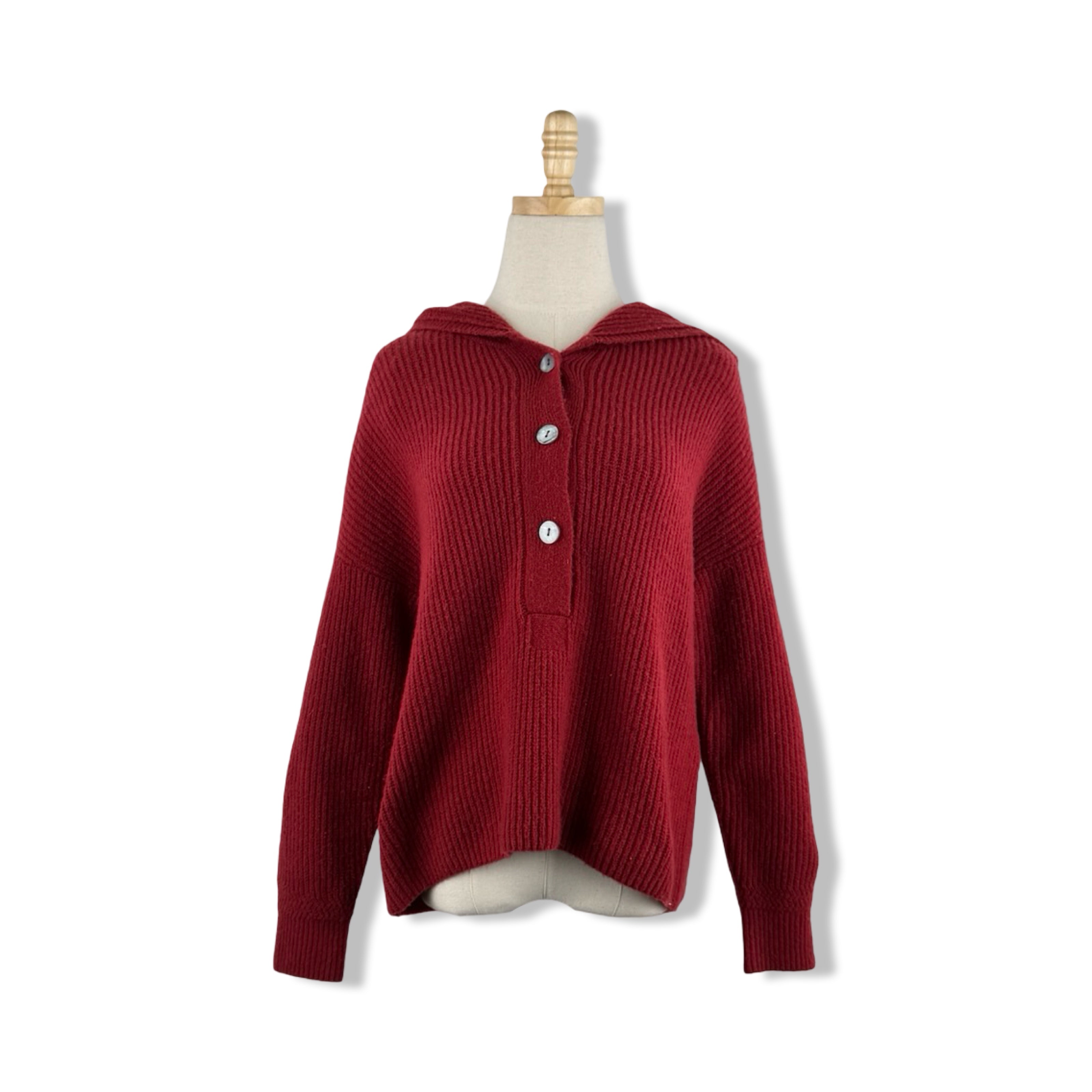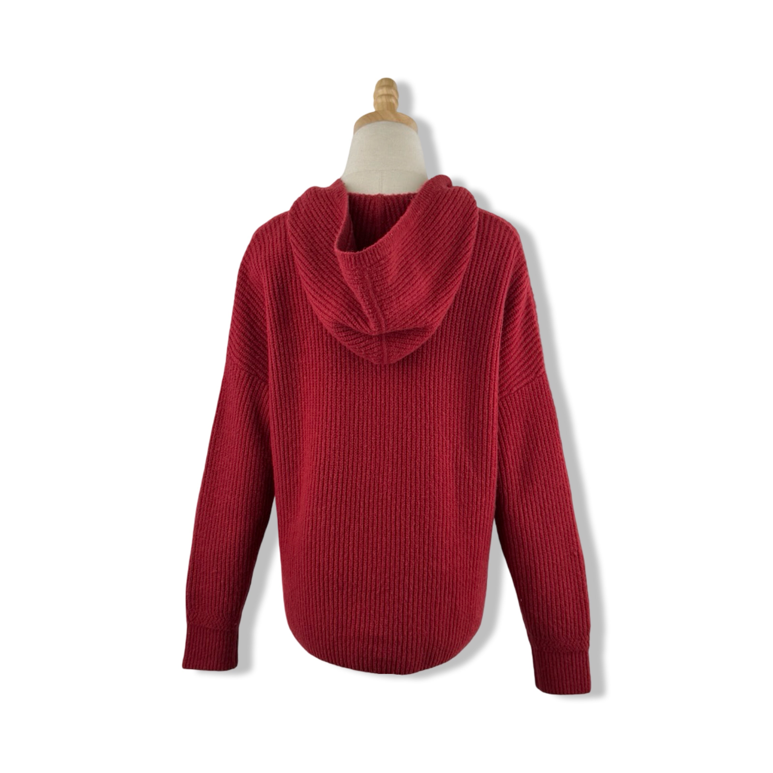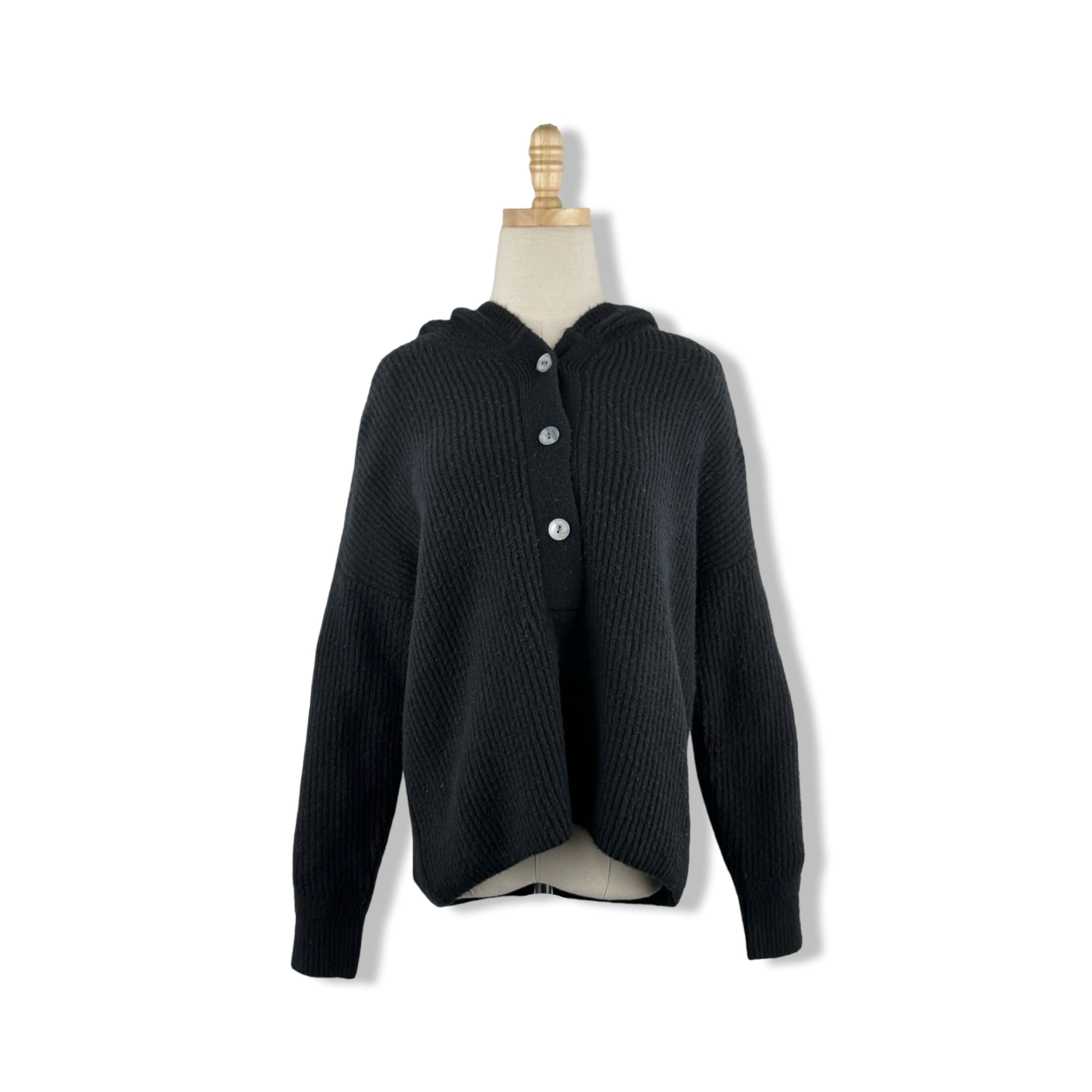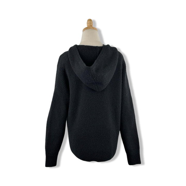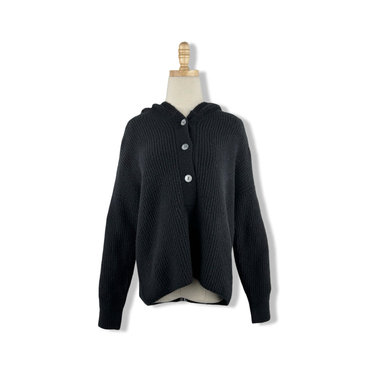 - Hooded knit 3/4 button cardigan. Size not listed, Looks like a size medium. Please check measurements.