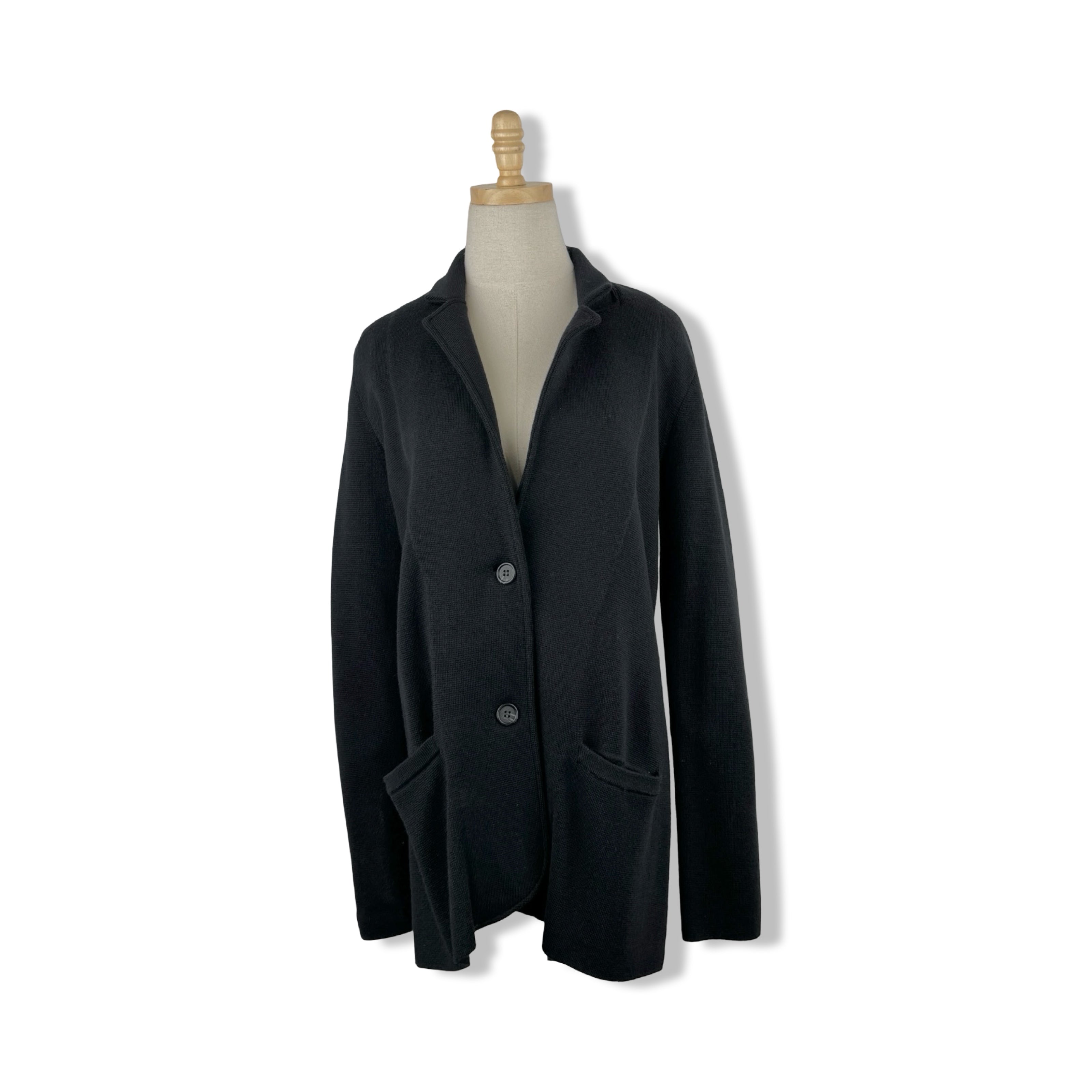 - Knit long line collared cardigan