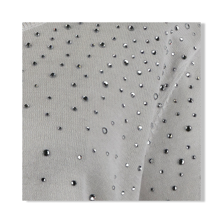 - Short sleeve knit top with rhinestones